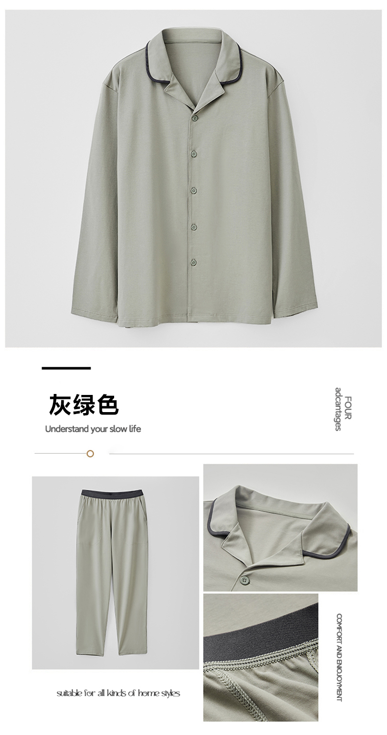 商品名称:EH 2024新款全棉男女情侣款家居服-男女款翻领 男款灰绿色