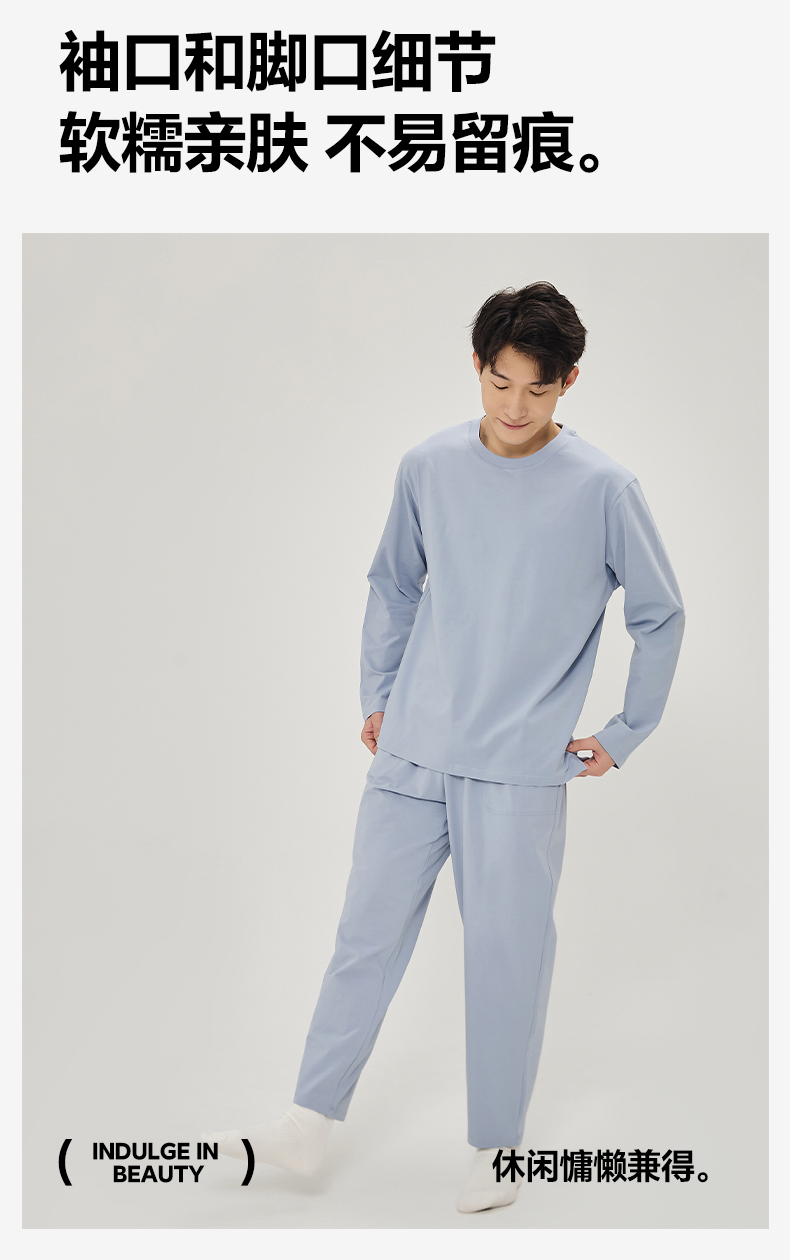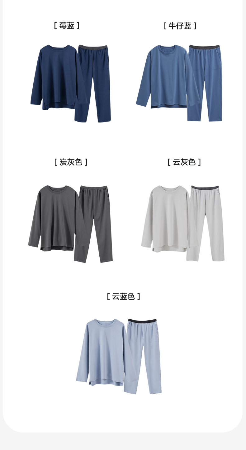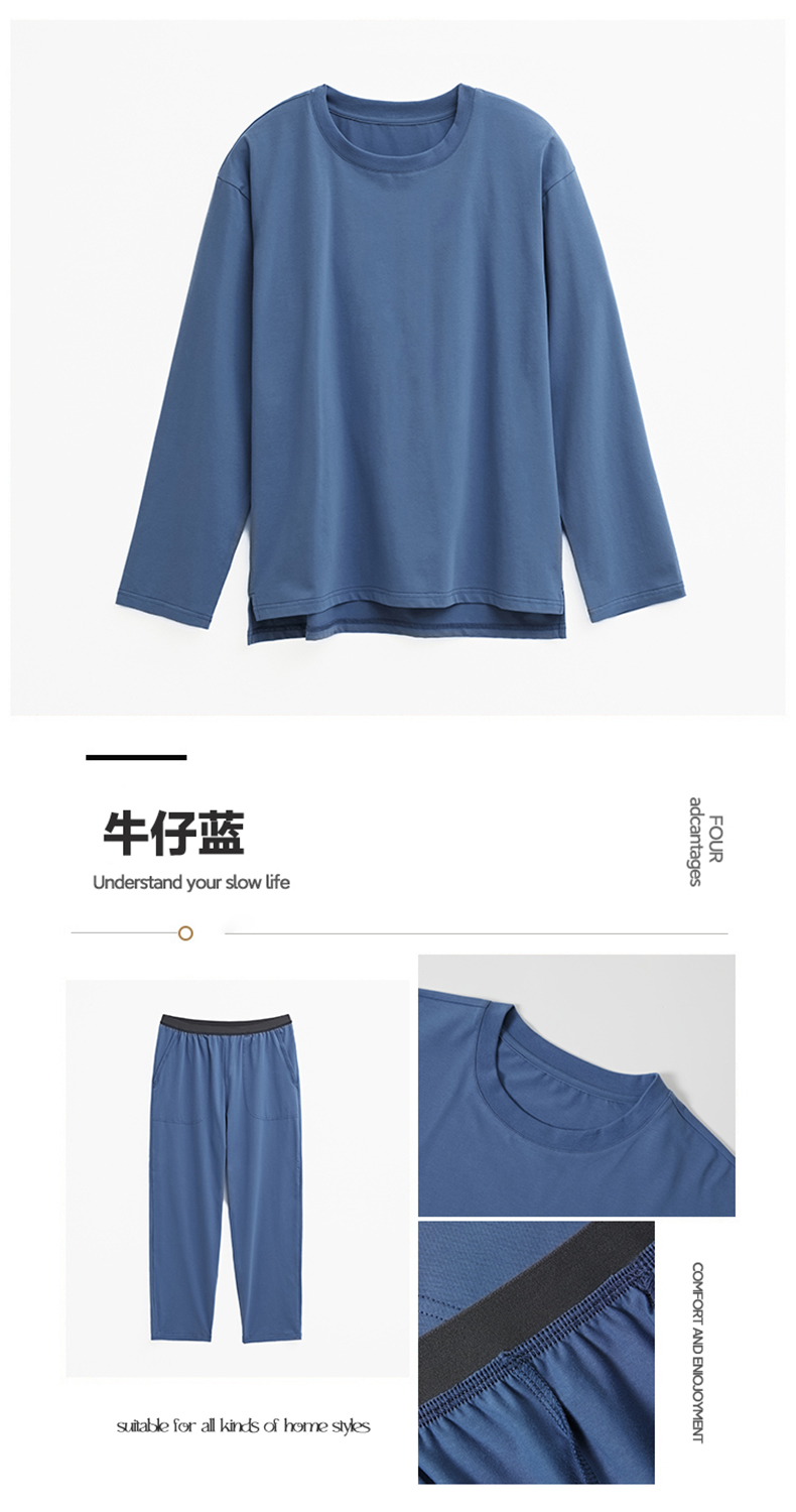 商品名称:EH 2024新款全棉男女情侣款家居服-男款圆领 牛仔蓝
