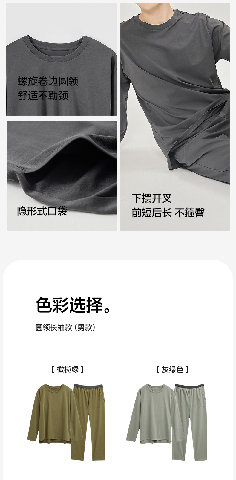 EH 2024新款全棉男女情侣款家居服-男款圆领 牛仔蓝