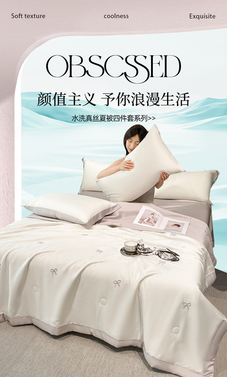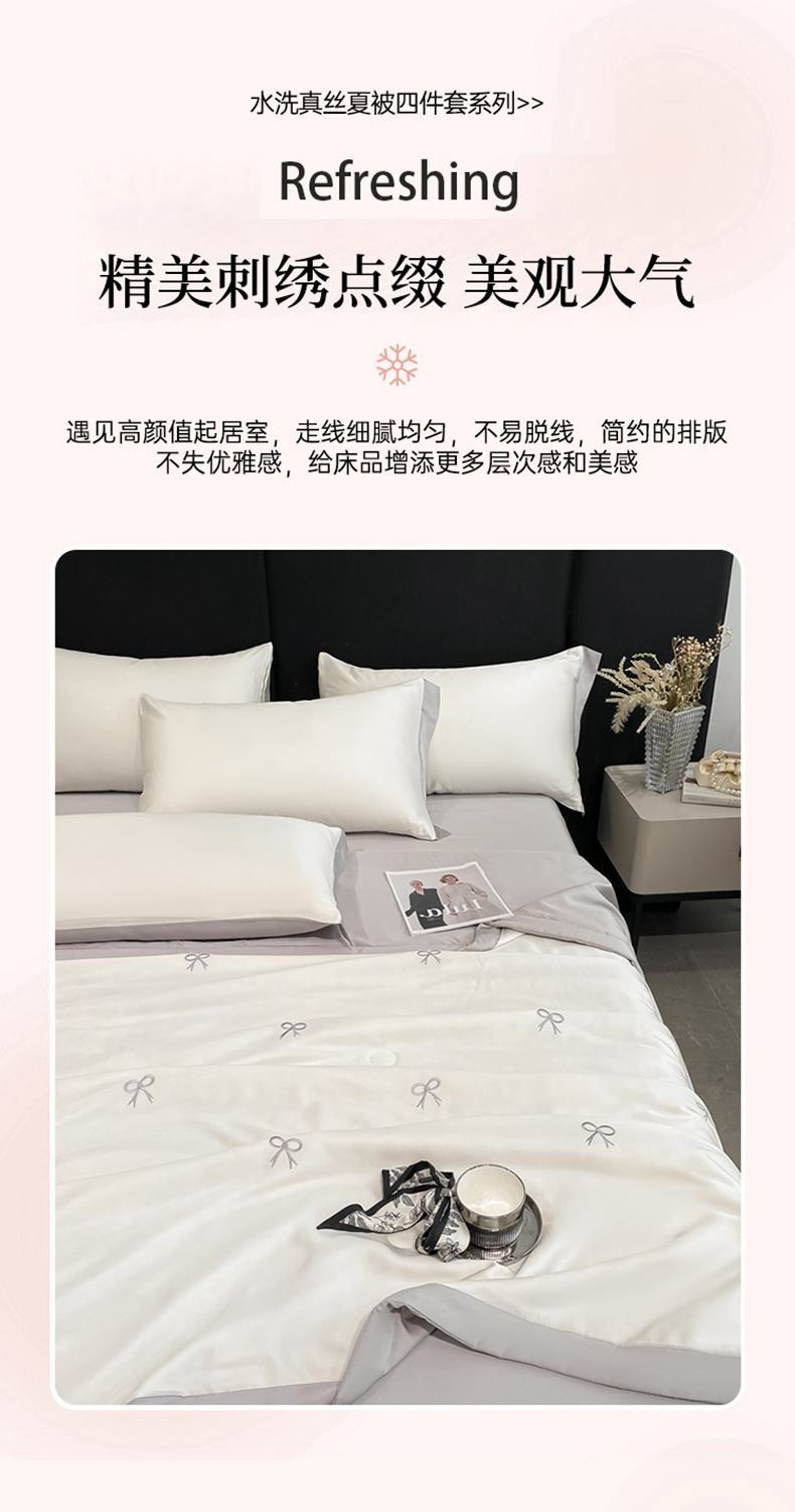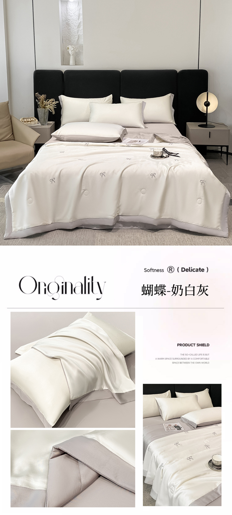 当前位置: 91家纺网 > 商品网购 > 床品套件 > 四件套 > 夏被四件套 > 利欧 2025新款刺绣水洗真丝夏被四件套 蝴蝶-奶白灰