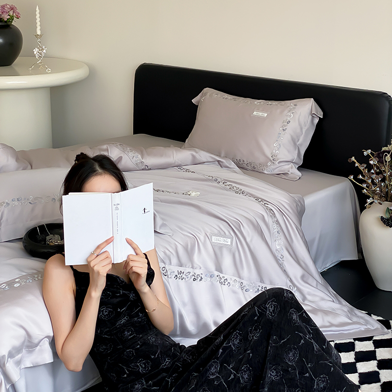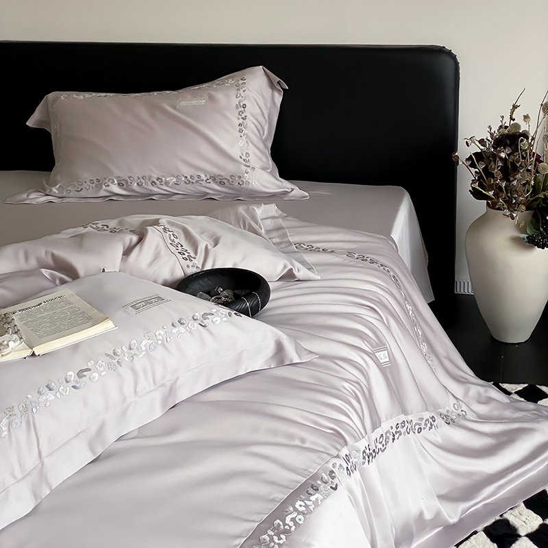 MIU缪家居 2024新款80支兰精天丝轻奢四件套系列-小豹纹(有同款夏被四件套) 灰