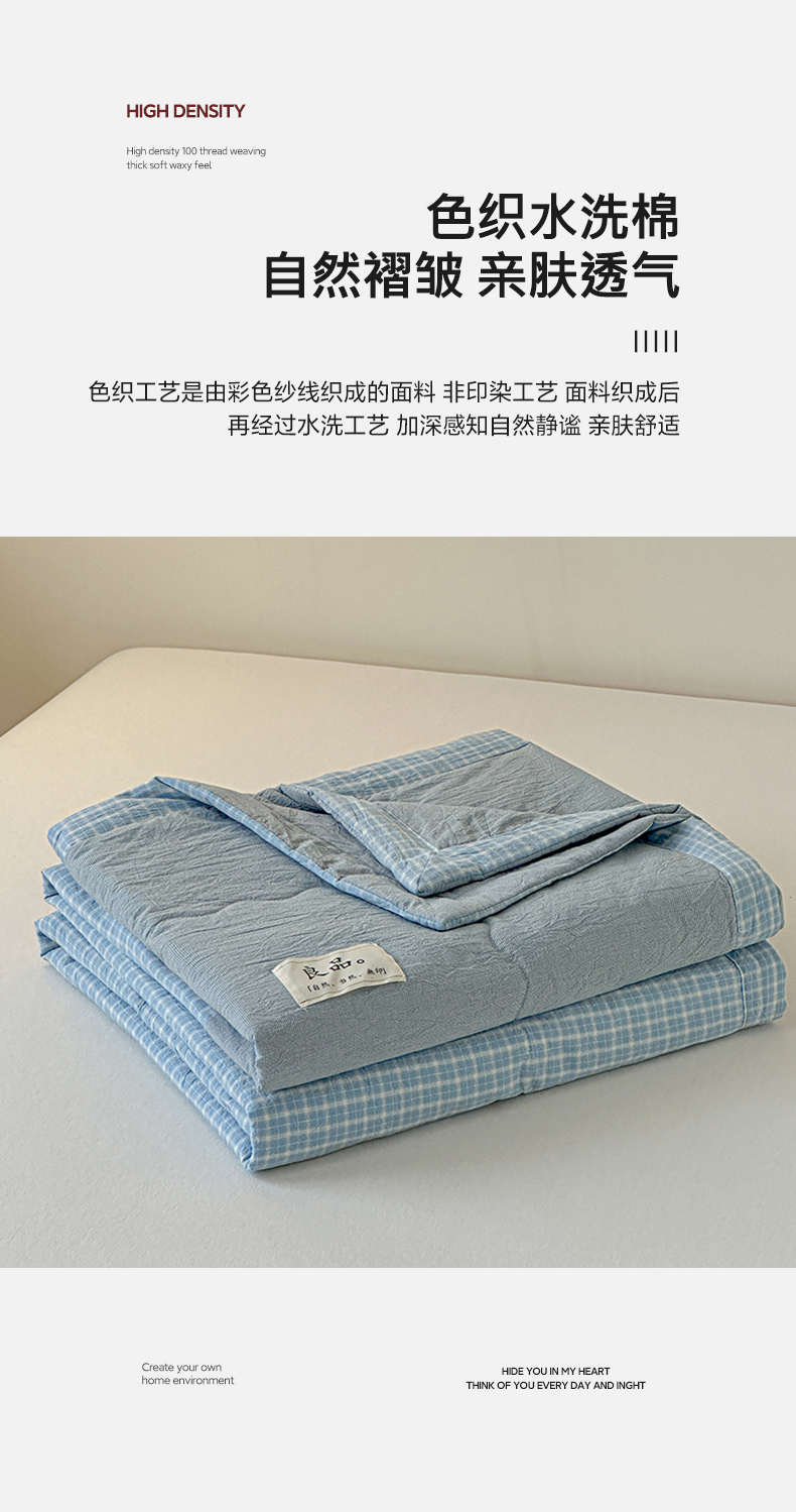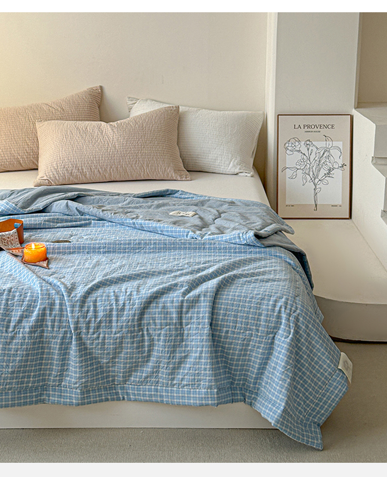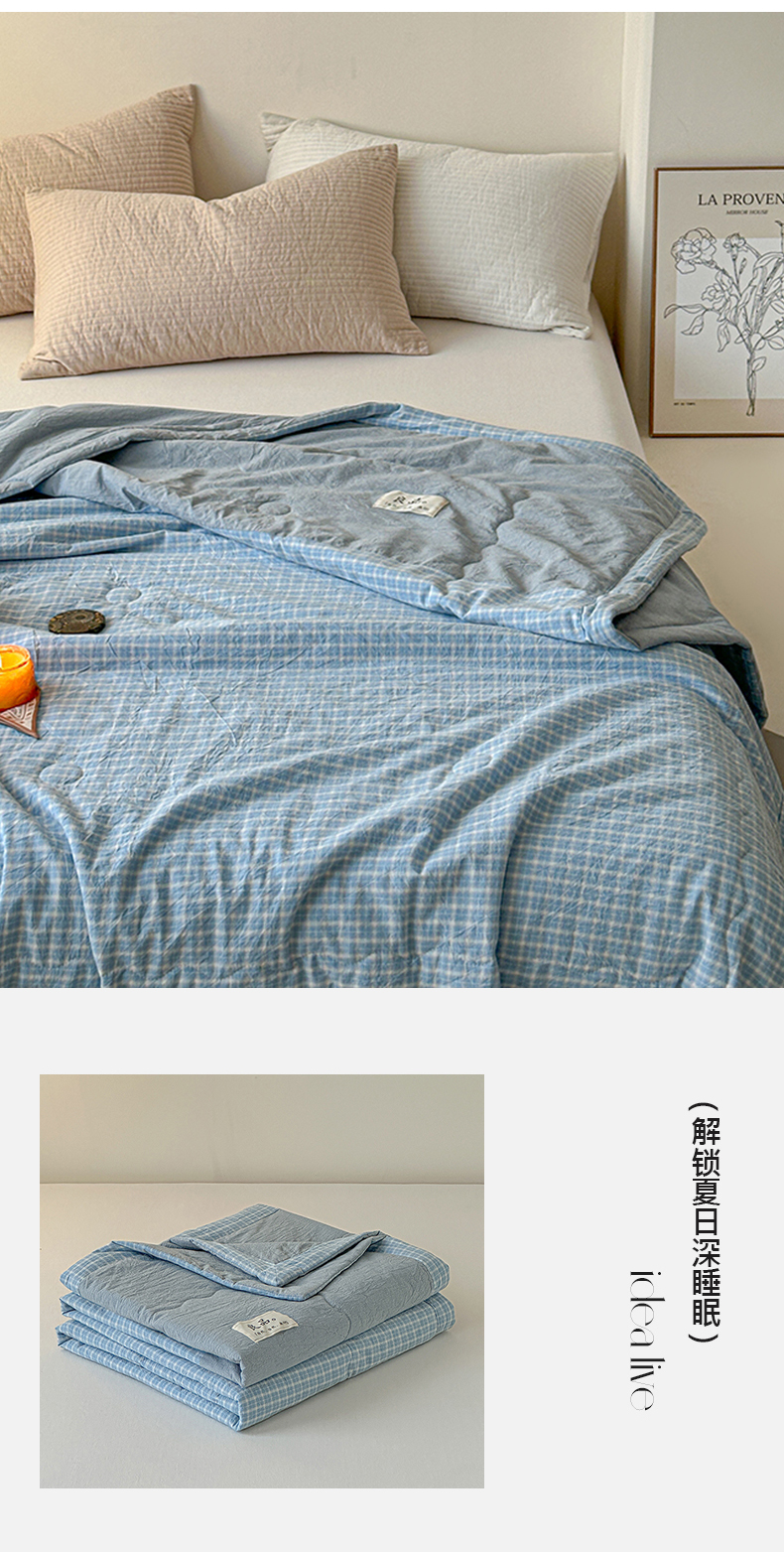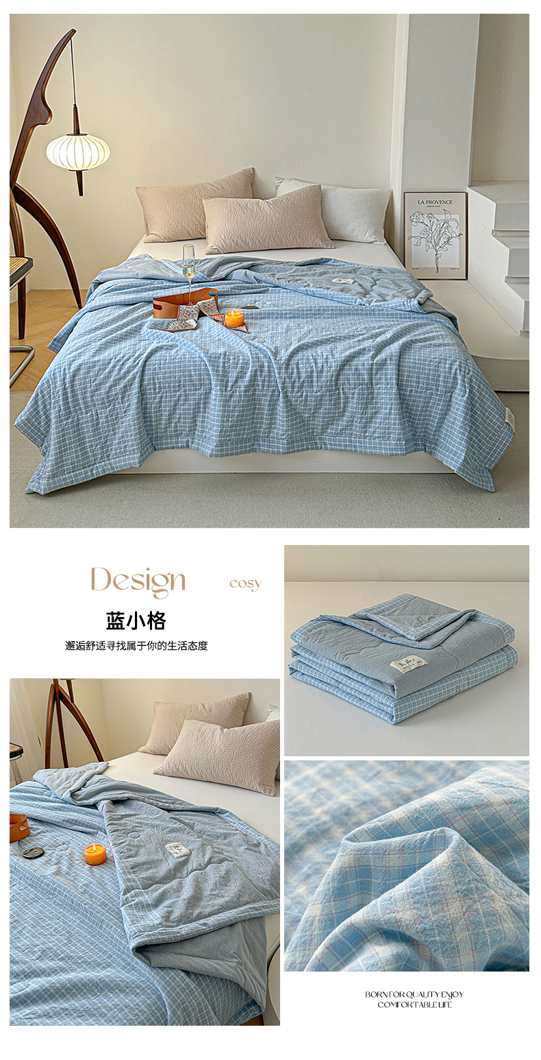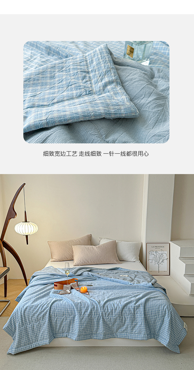 源舜家纺 2025新款全棉水洗棉夏被 蓝小格