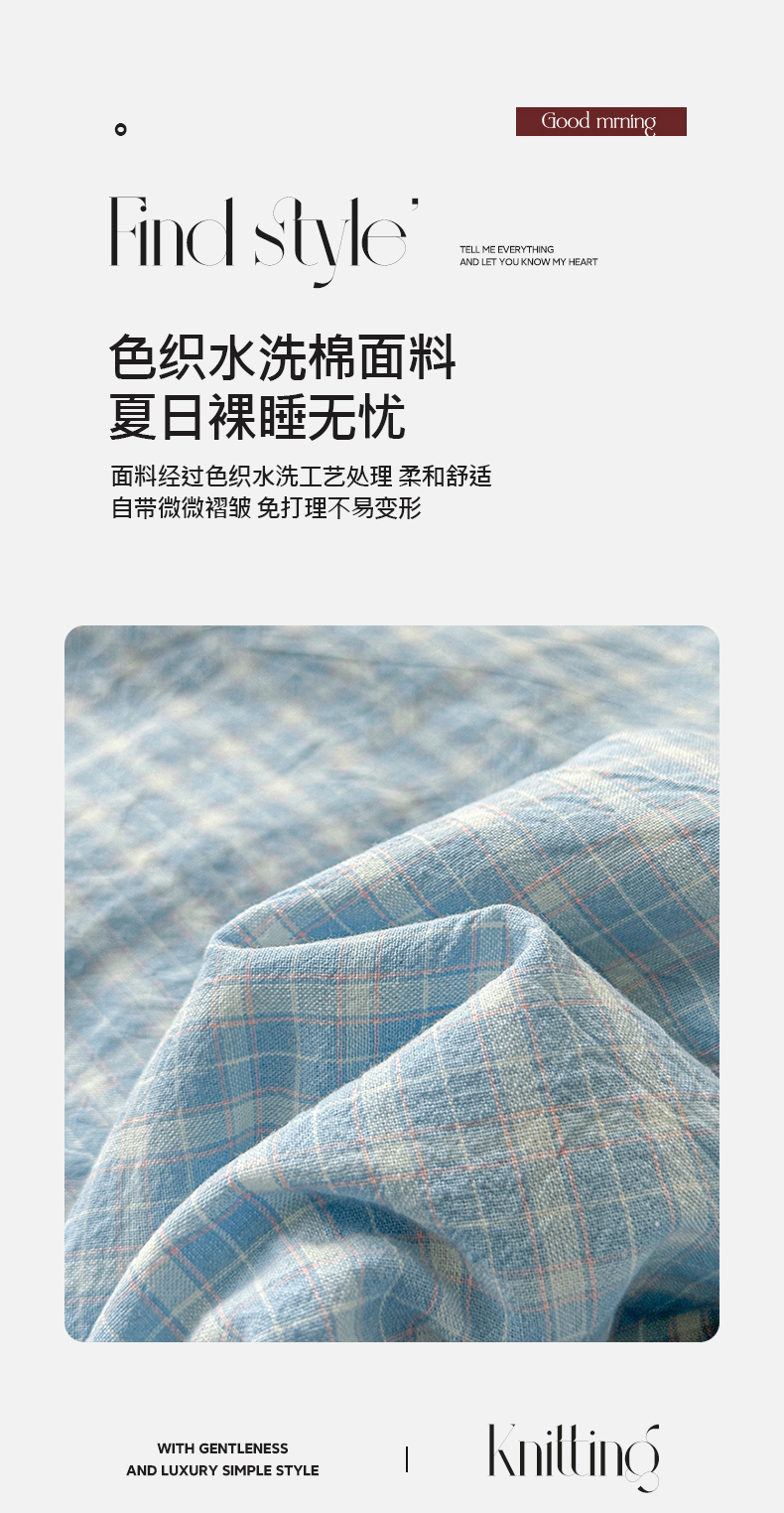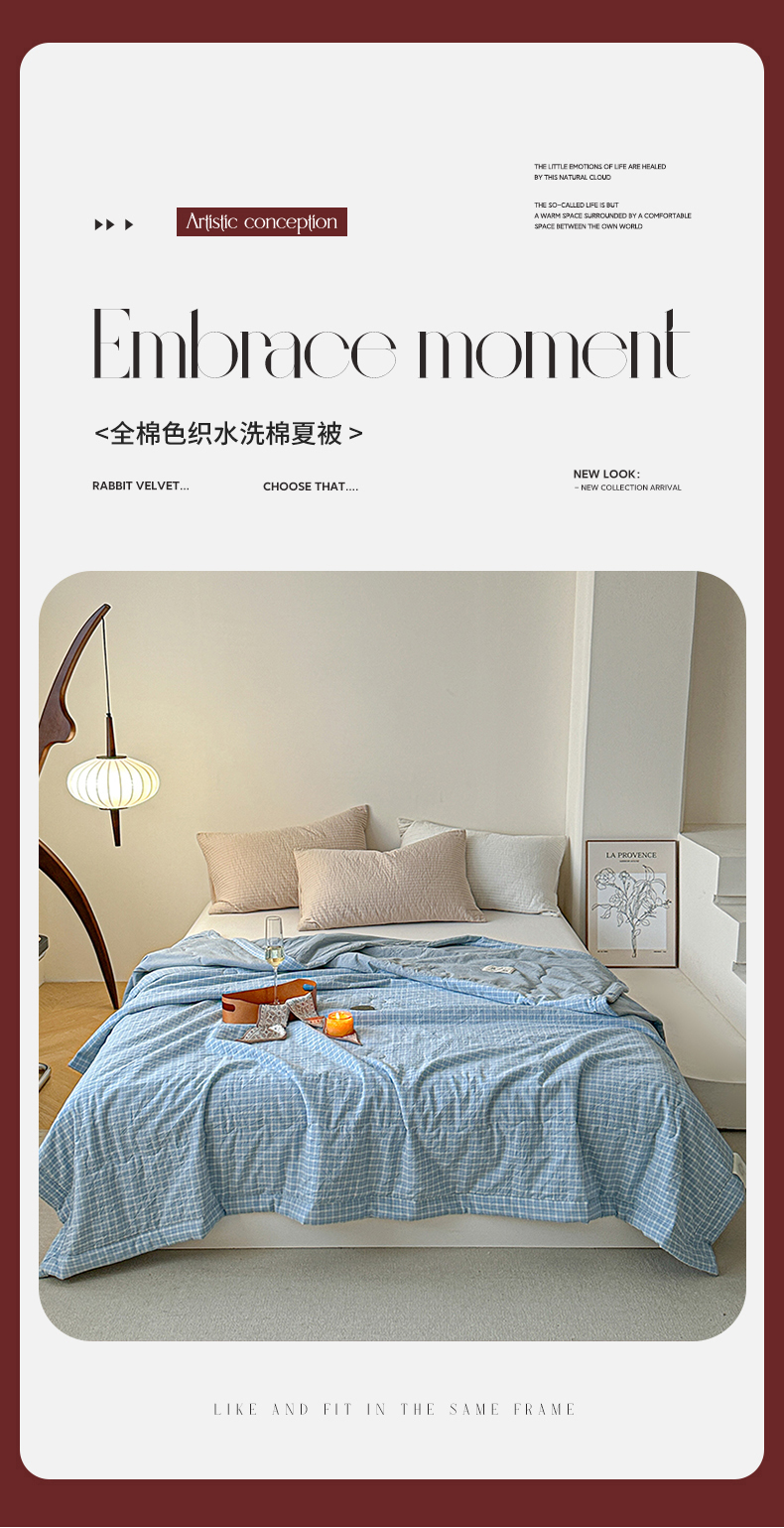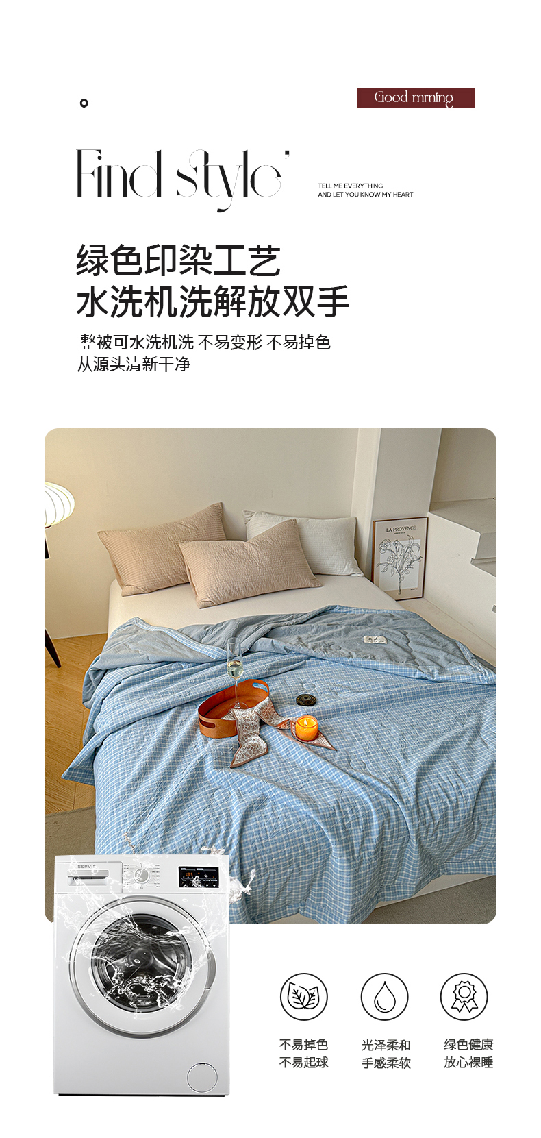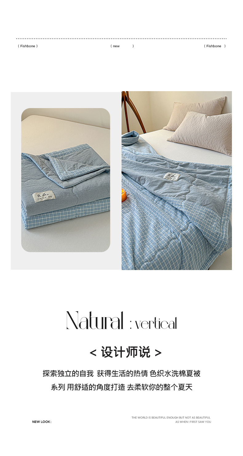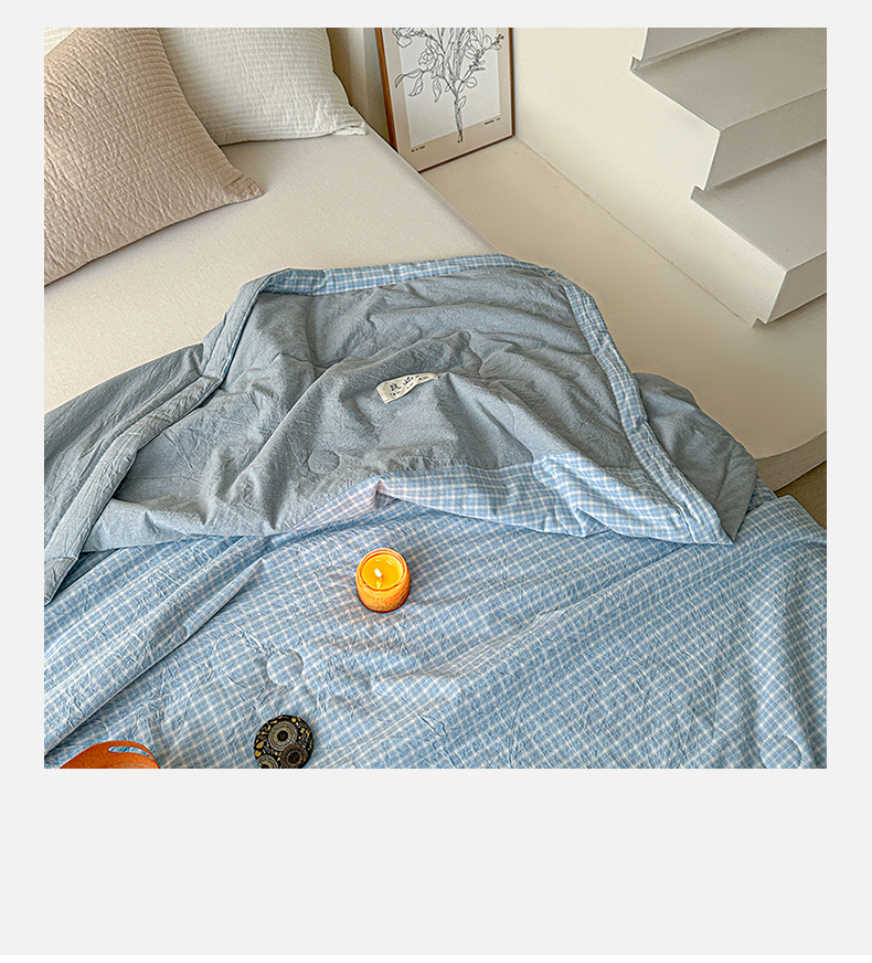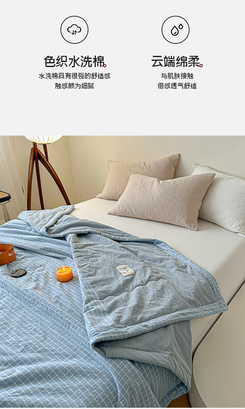 源舜家纺 2025新款全棉水洗棉夏被 蓝小格
