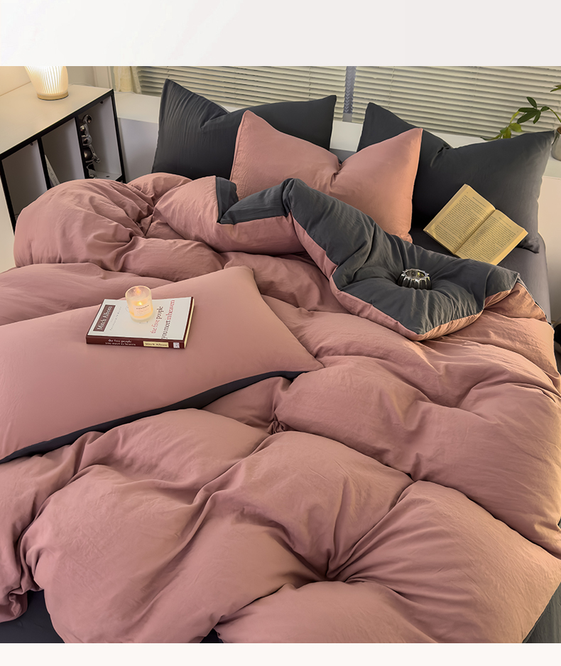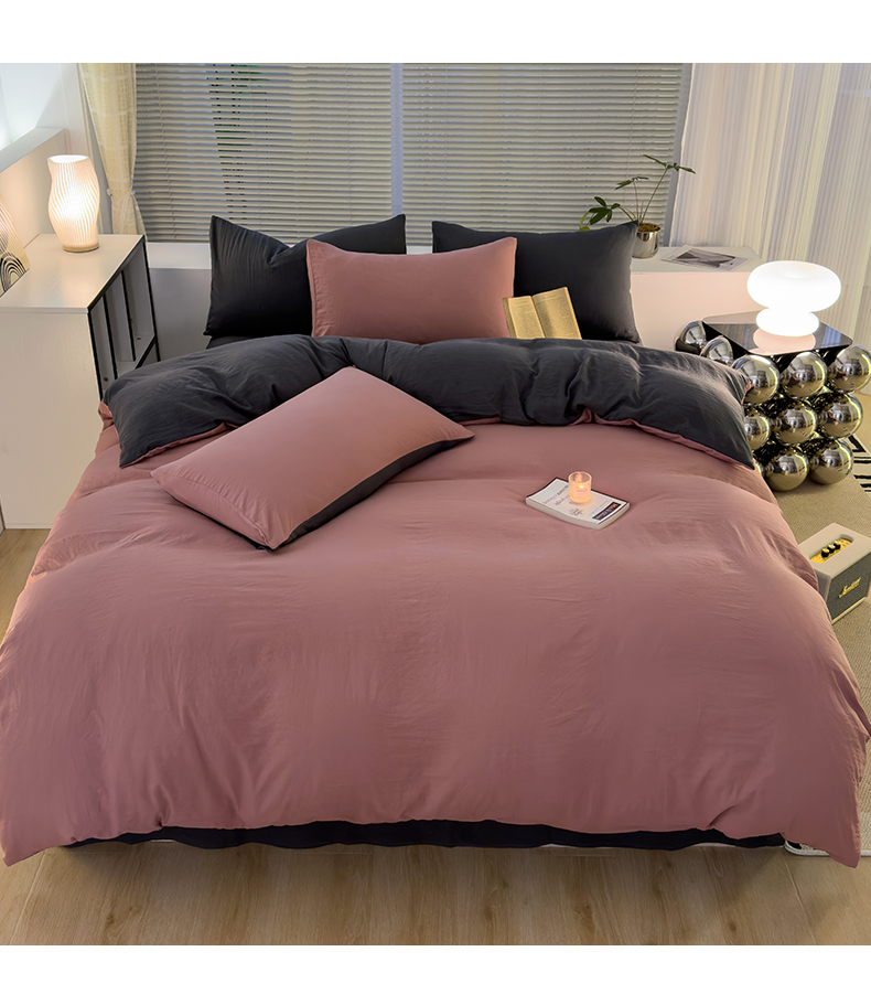 颜选 2024新款简约纯色水洗棉四件套系列 奶茶+卡其