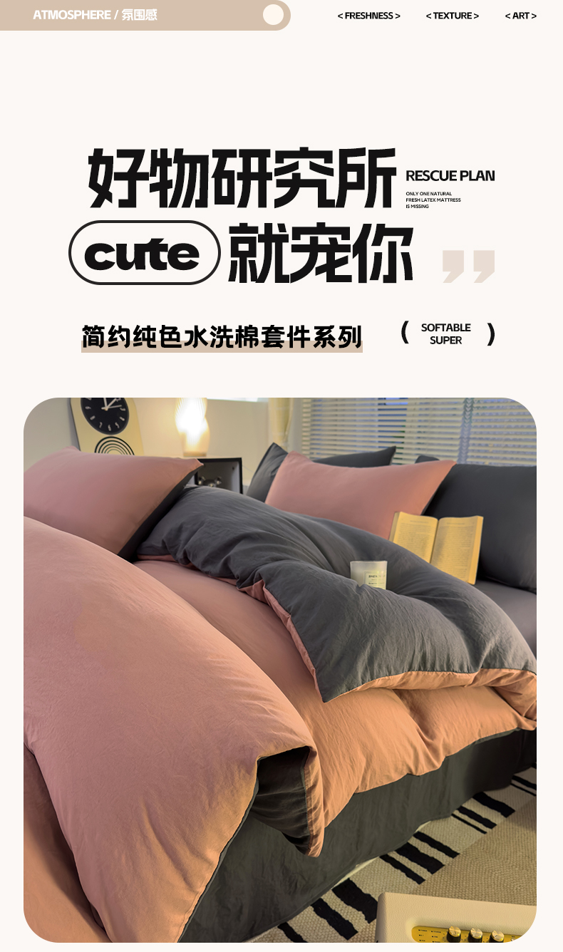 商品名称:颜选 2024新款简约纯色水洗棉四件套系列 奶茶+卡其