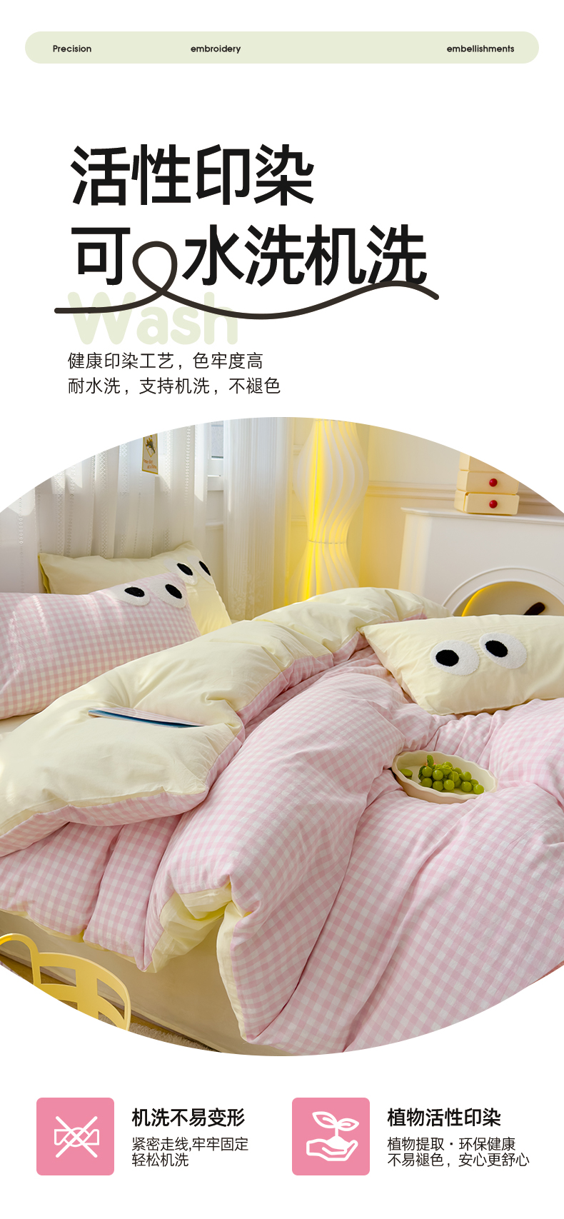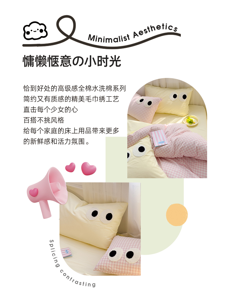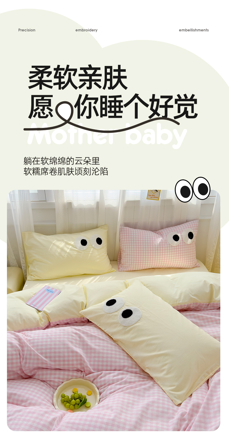 当前位置: 91家纺网 > 商品网购 > 床品套件 > 四件套 > 水洗棉四件套 > 颜选 2024新款亲肤舒适水洗棉四件套-大眼睛系列 红条纹+绿