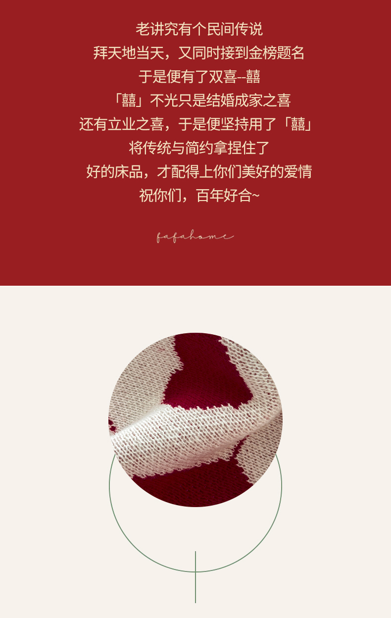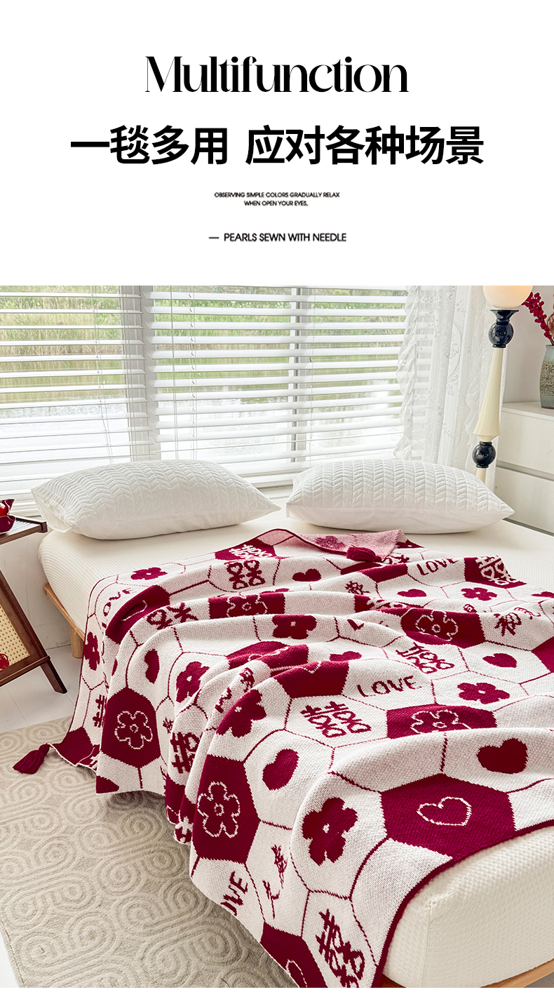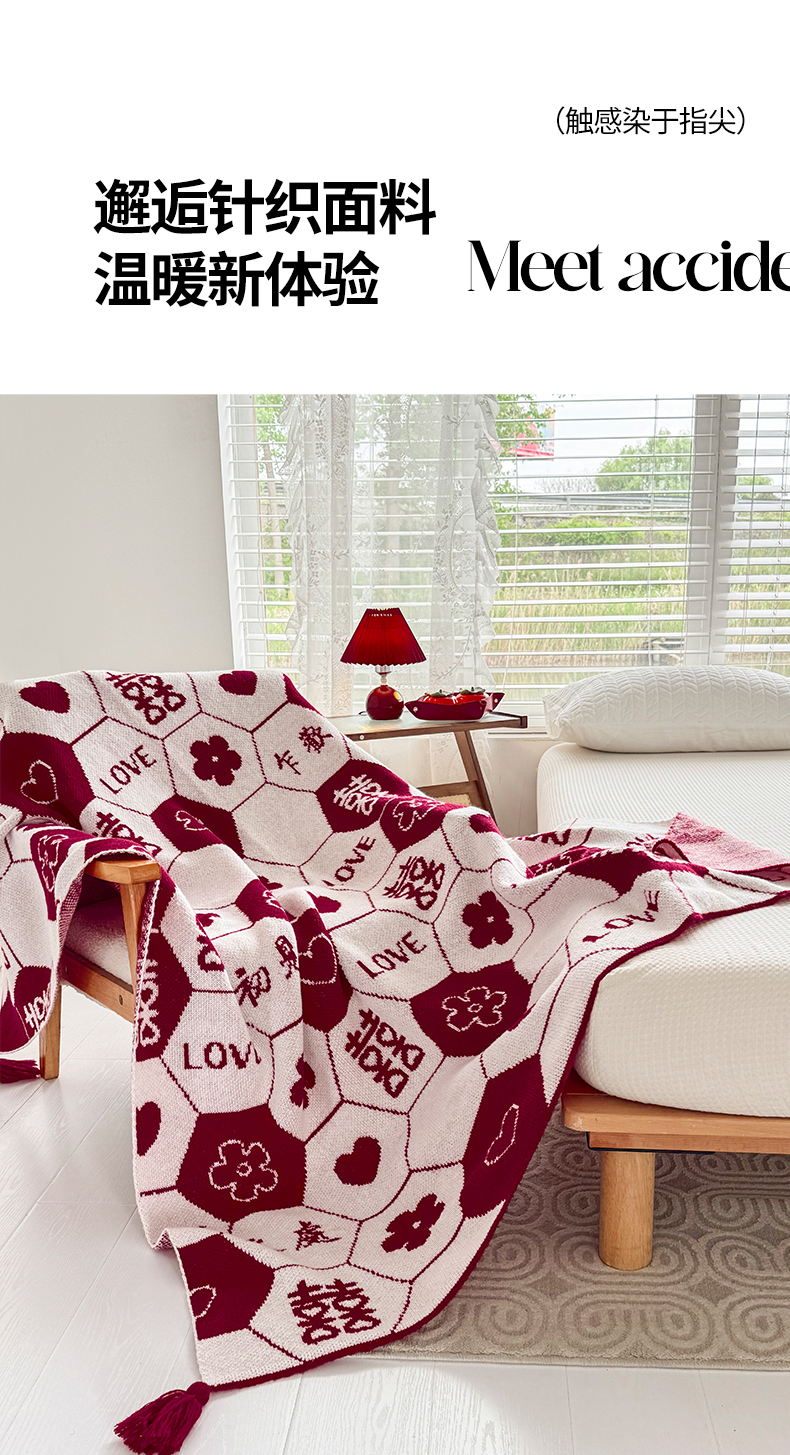 当前位置: 91家纺网 > 商品网购 > 毛毯休闲毯绒毯 > 针织毯 > 苏艺针织盖毯 2024新款中式风高端婚礼喜字毛毯 针织喜字-初见红色盖毯