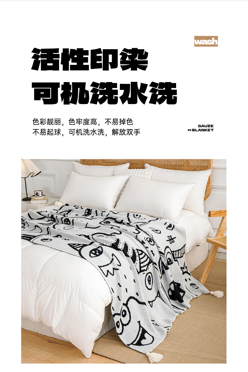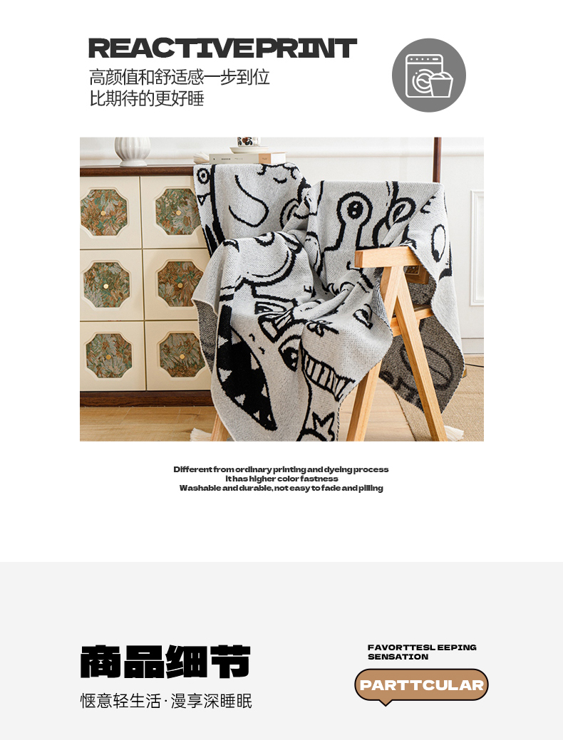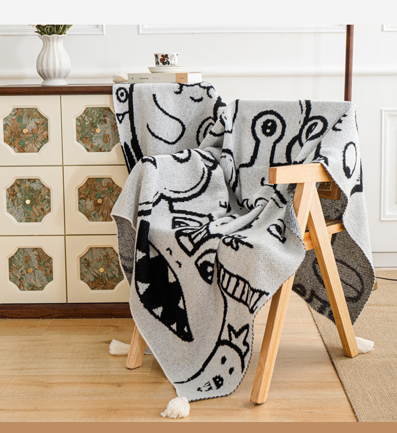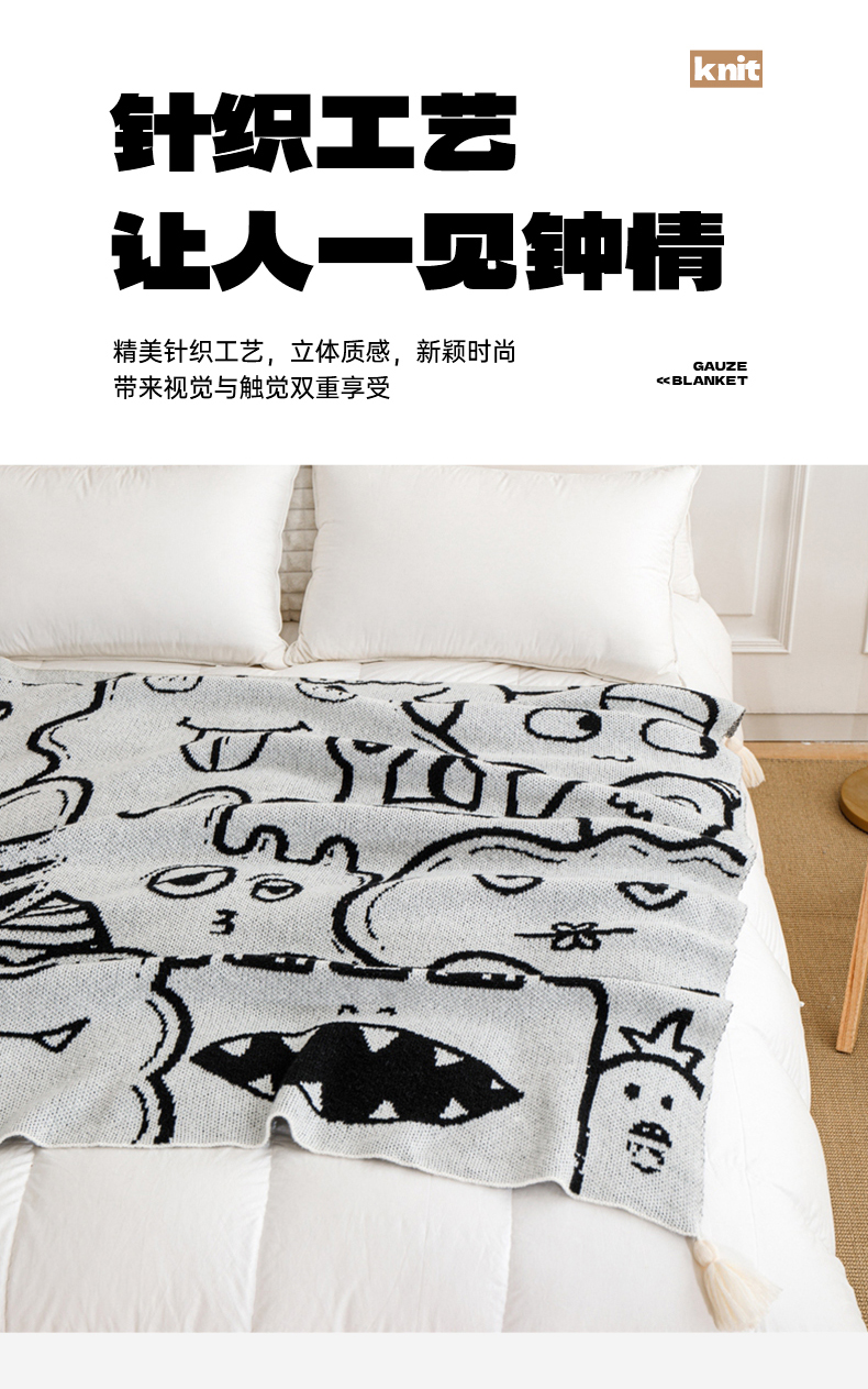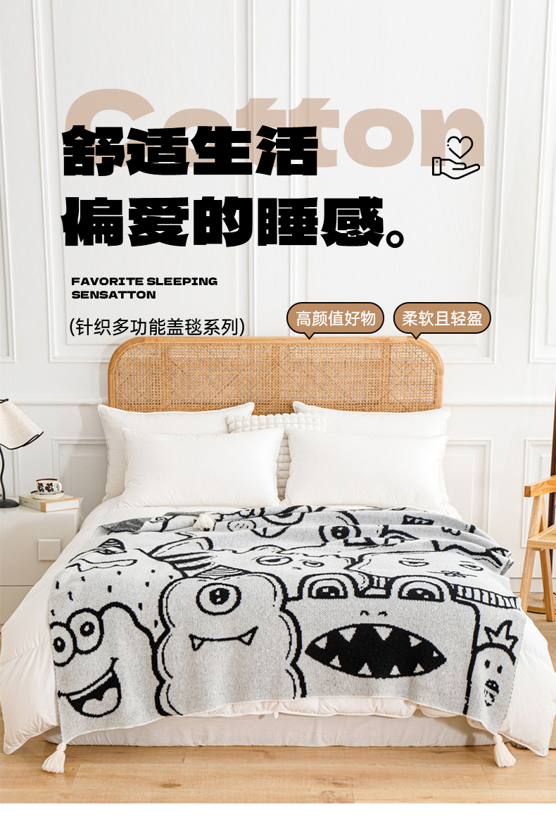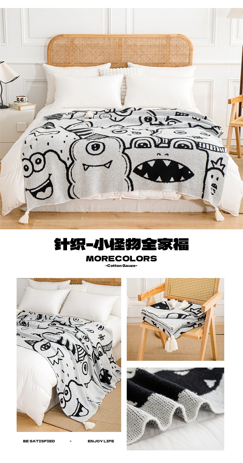 商品名称:苏艺针织盖毯 2024新款针织披肩沙发盖毯 针织-小怪物全家福