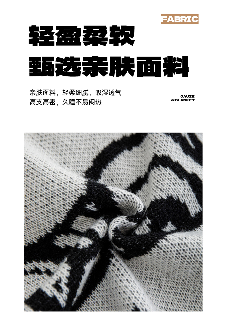 (总)苏艺针织盖毯 2024新款针织提花全棉盖毯,菱格-黑
