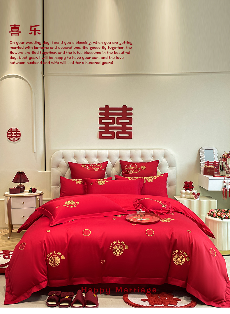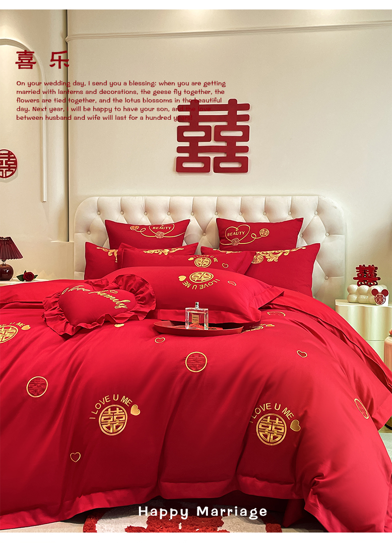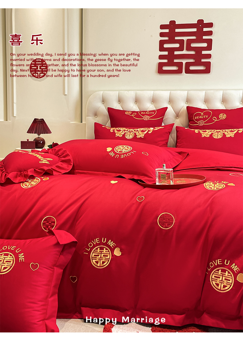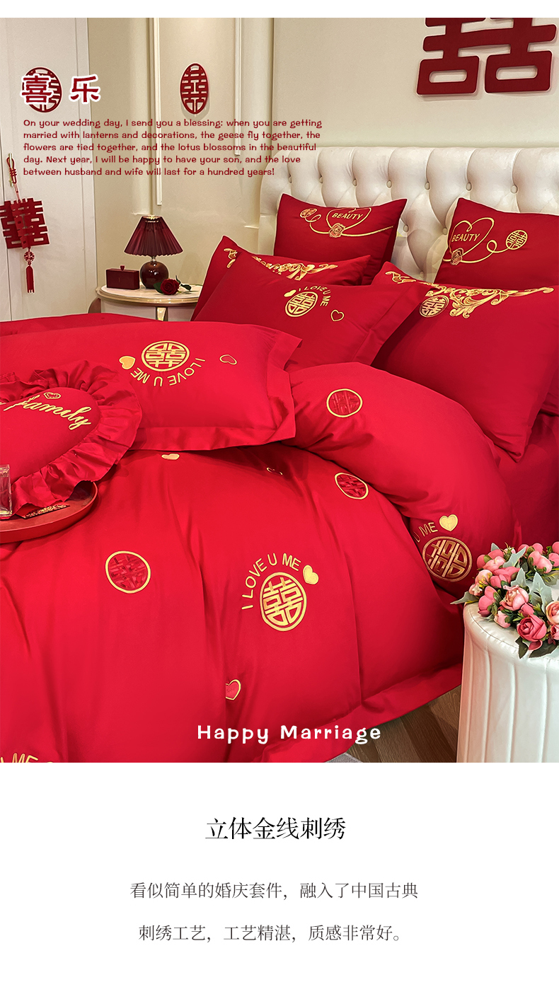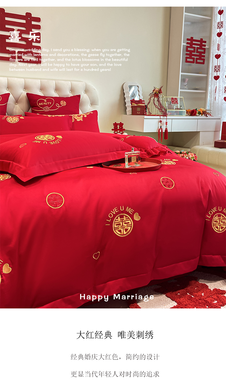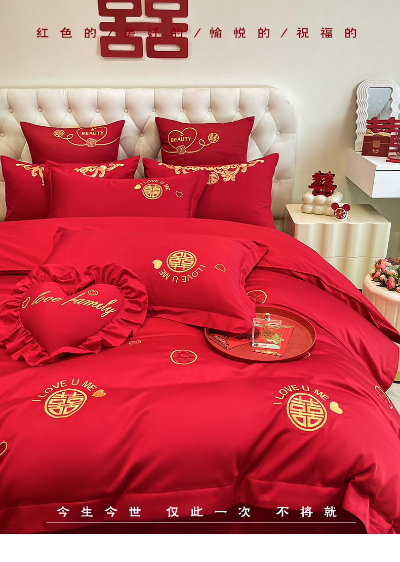 当前位置: 91家纺网 > 商品网购 > 床品套件 > 四件套 > 婚庆四件套 > 东方合美(原:皇家传奇) 2024新款轻奢纯棉贡缎织造印花婚庆四件套 喜乐
