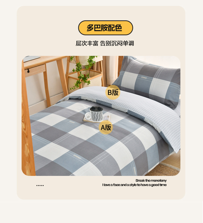 六件套:【三件套+4斤棉花被+3斤棉花褥垫(90*200)+枕芯】 | ¥148.00 |