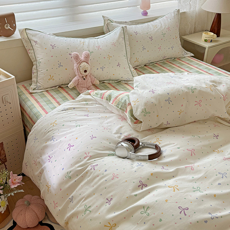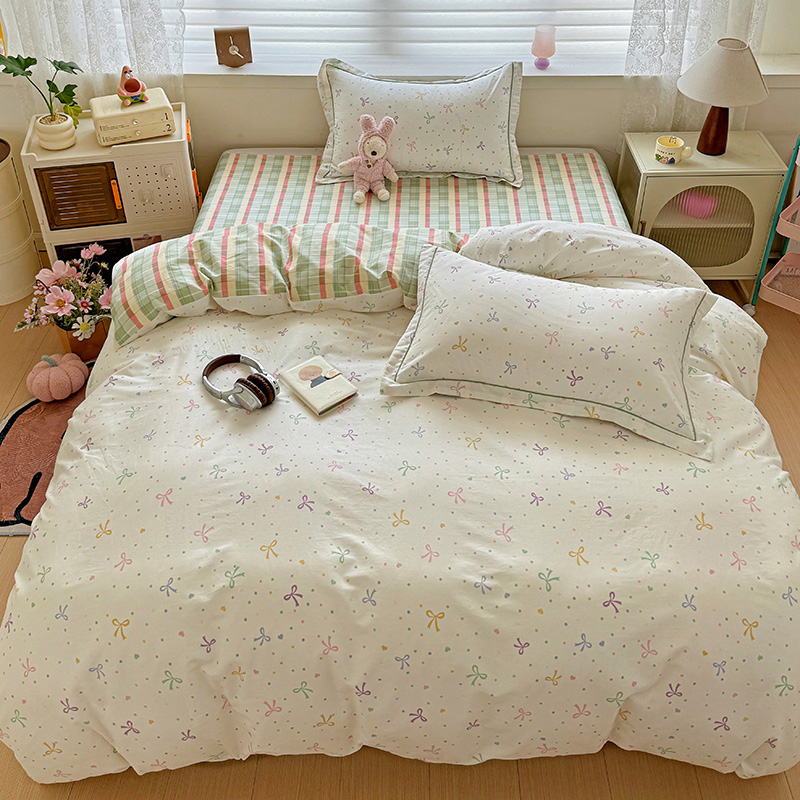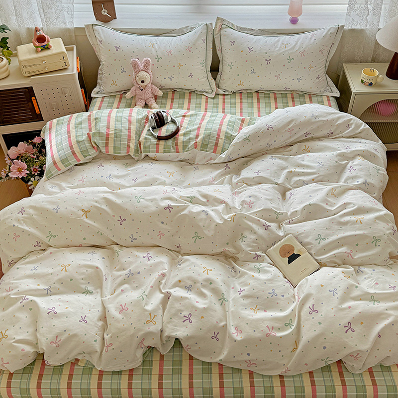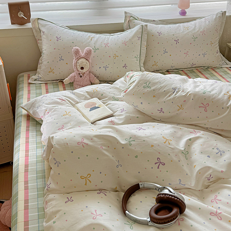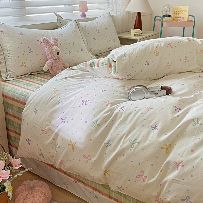 商品名称:乐童 2024新款直播爆款13070纯棉印花吊边款一字绣四件套第八波可爱结