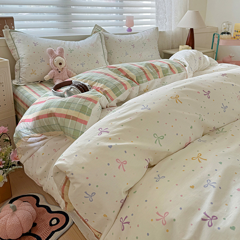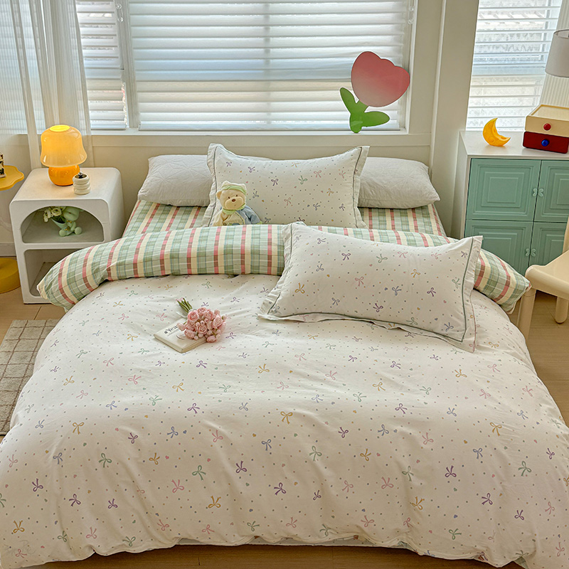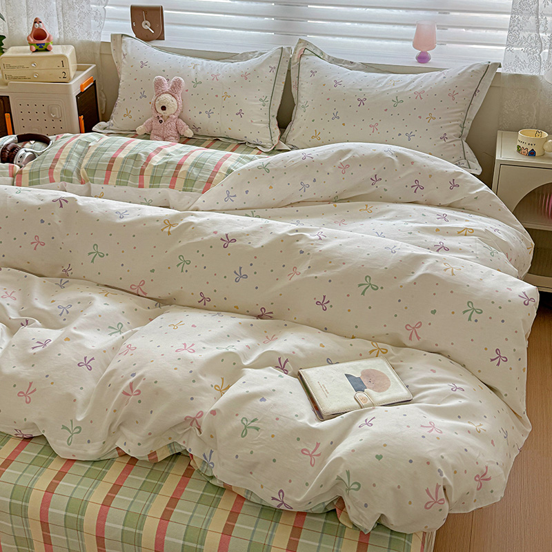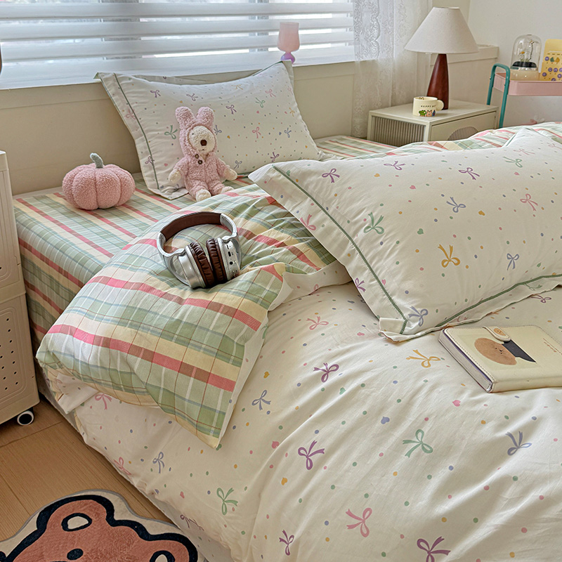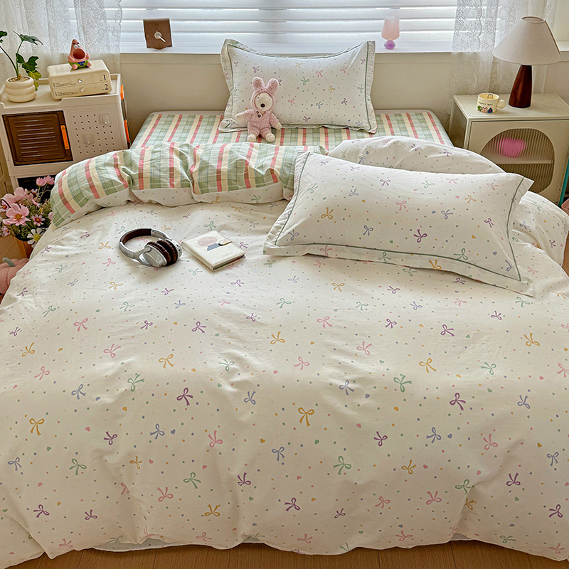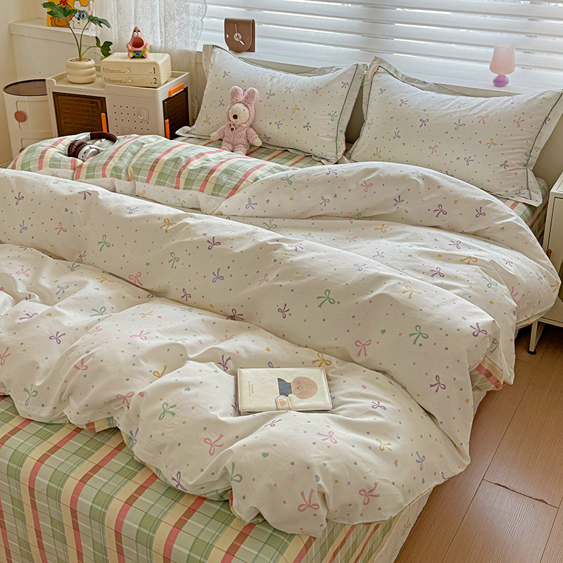 商品名称:乐童 2024新款直播爆款13070纯棉印花吊边款一字绣四件套第八波可爱结