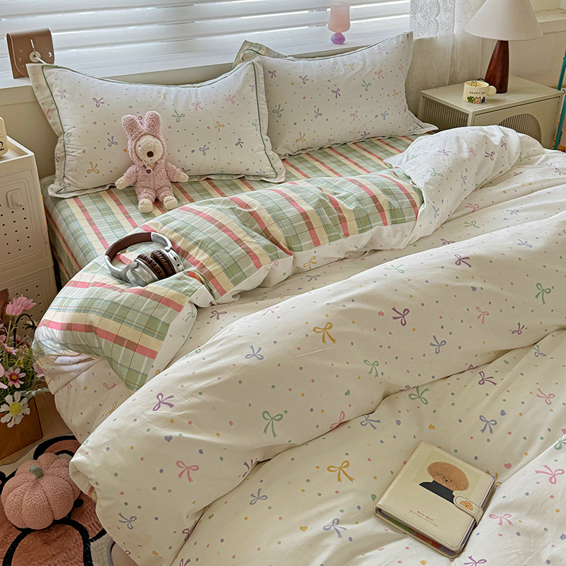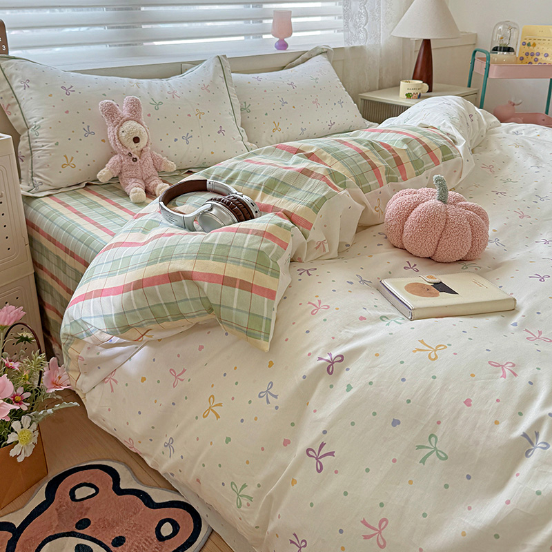 (总)乐童家纺 2026新款全棉纯棉拼接花边小清新工艺款四件套,彩虹木马,春日小兔,花田兔兔,凯莉梦境,口袋故事,浪花轻歌,毛线彩虹,梦境手账,千禧少女咖,少女日记,心跳瞬间