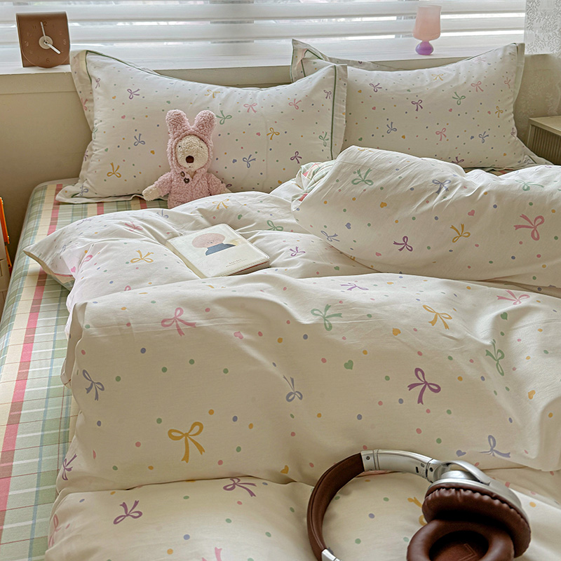 乐童 2024新款直播爆款13070纯棉印花吊边款一字绣四件套第八波可爱结