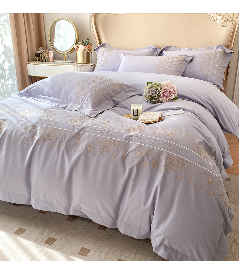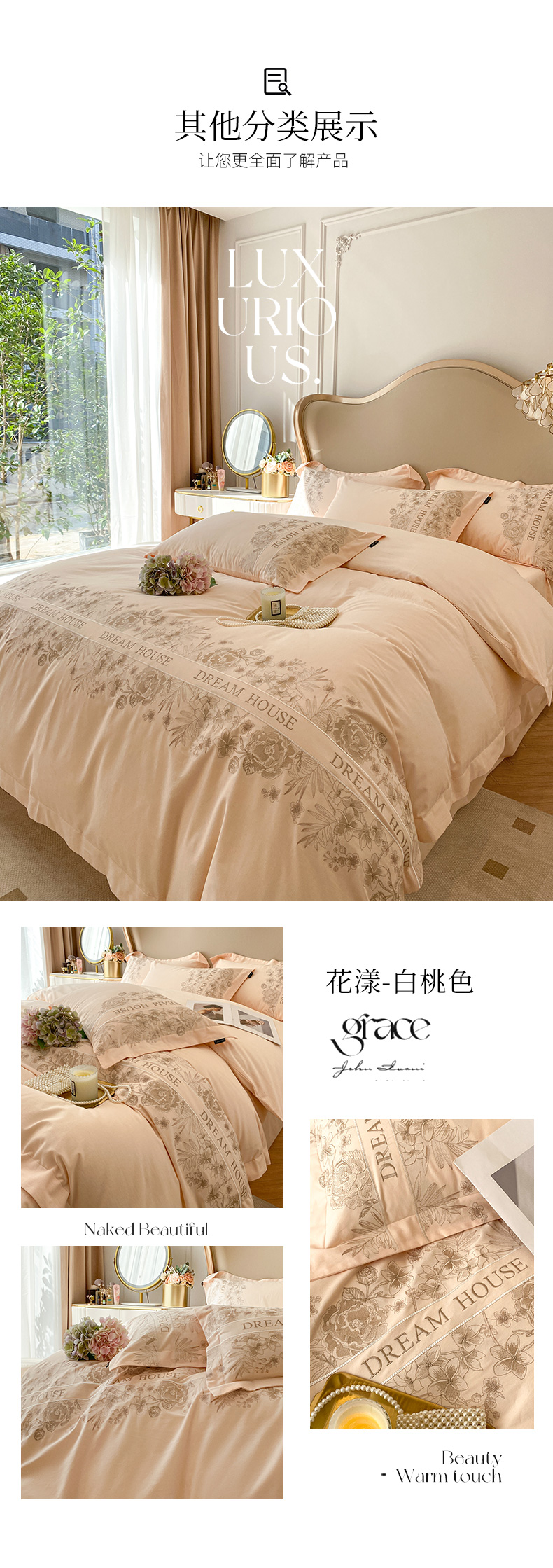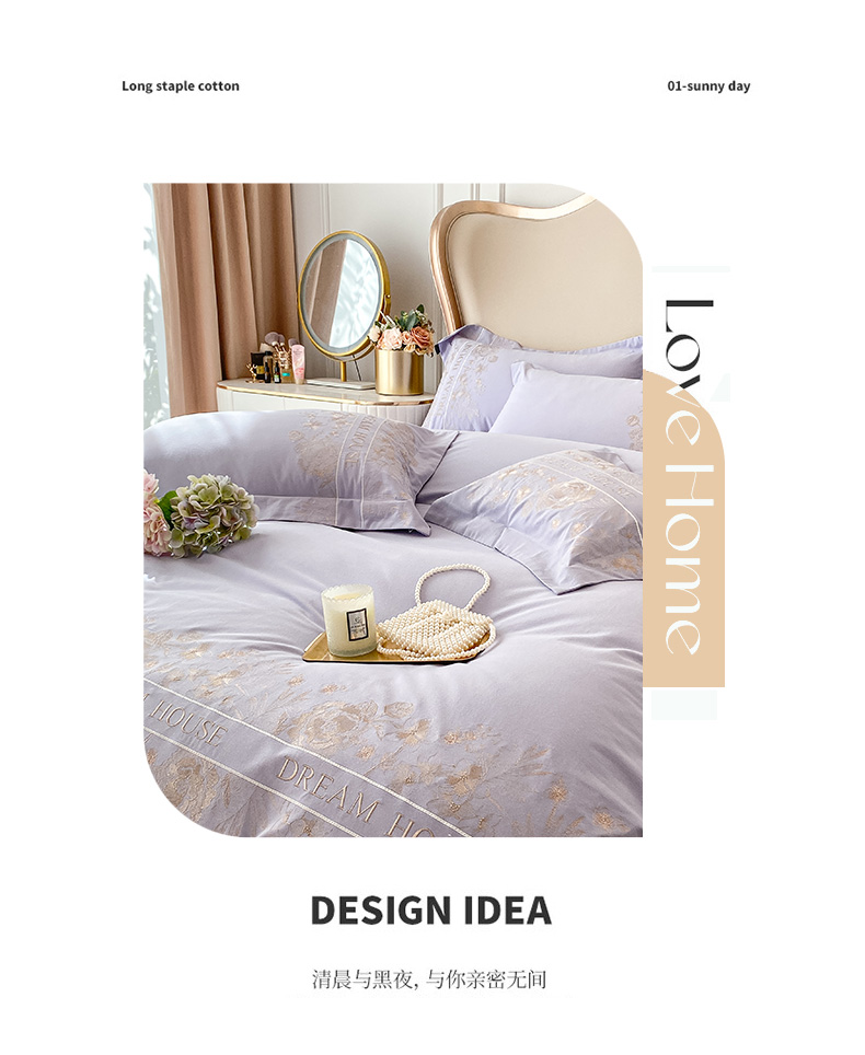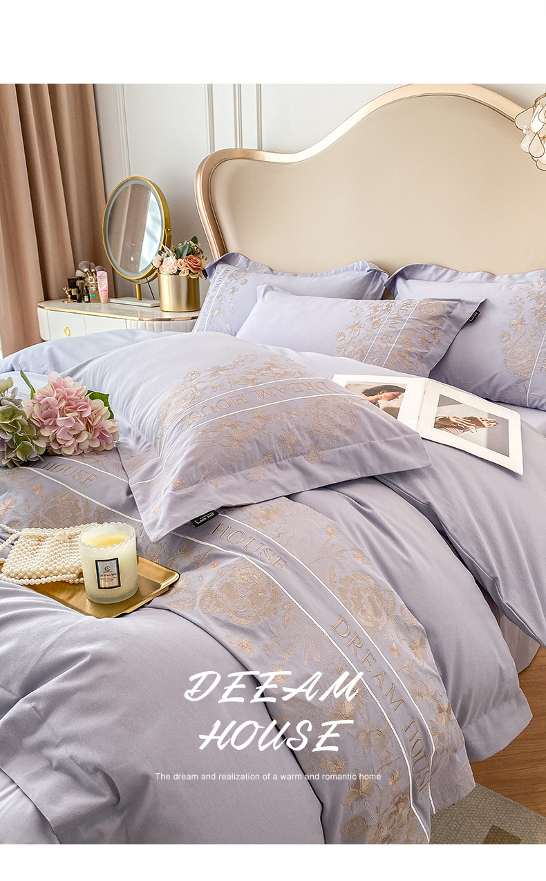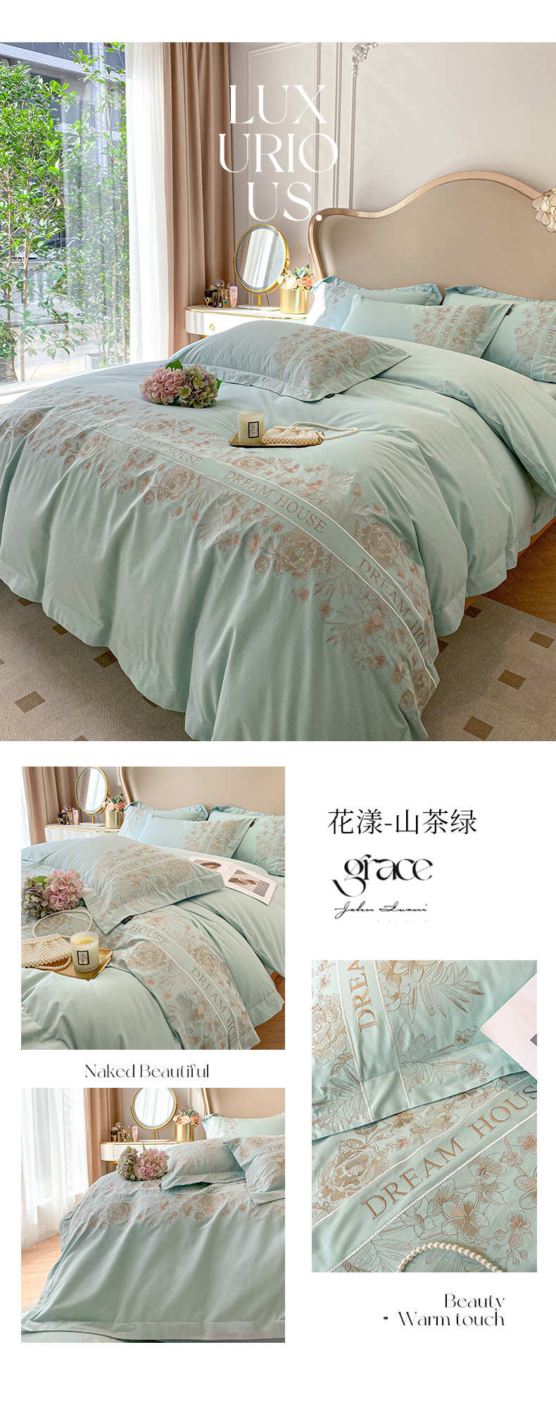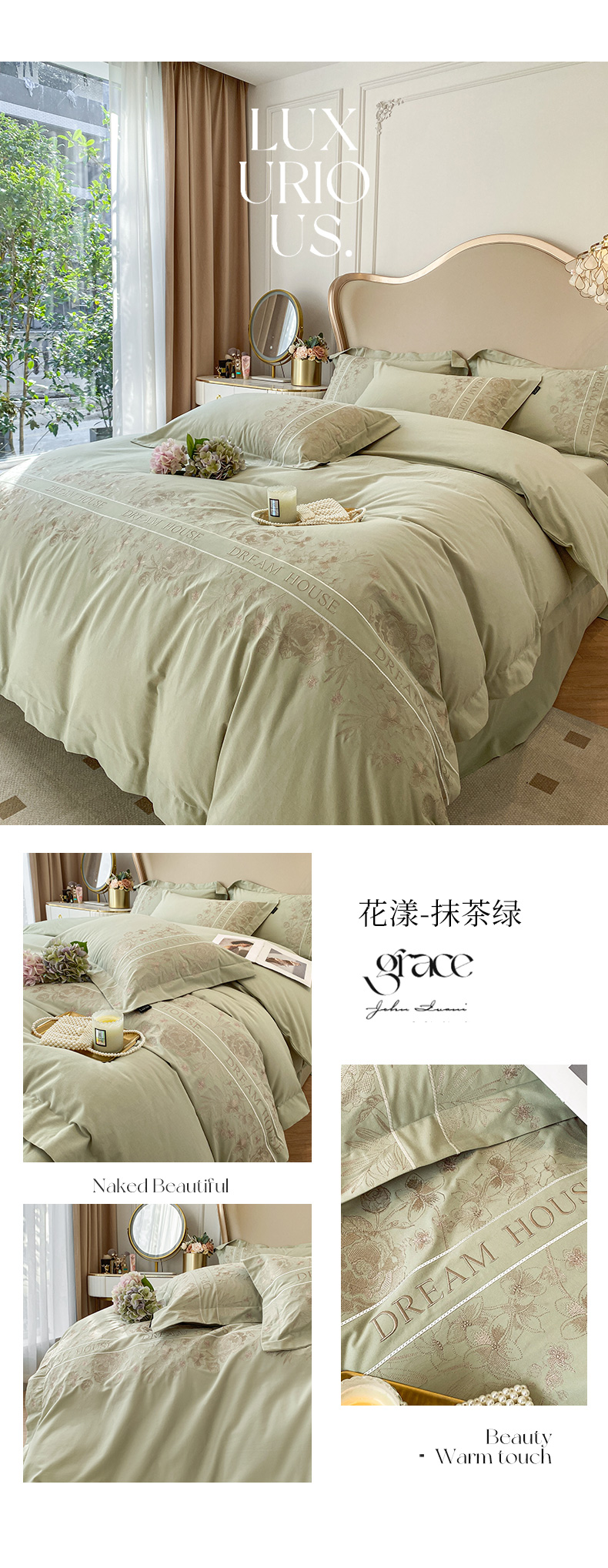 (总) 2025春夏长绒棉四件套纯棉全棉轻奢风床单被套重工刺绣床上用品,芊羽梦-白粉,芊羽梦-茶绿,芊羽梦-黛紫,芊羽梦-慕蓝,芊羽梦-颜粉