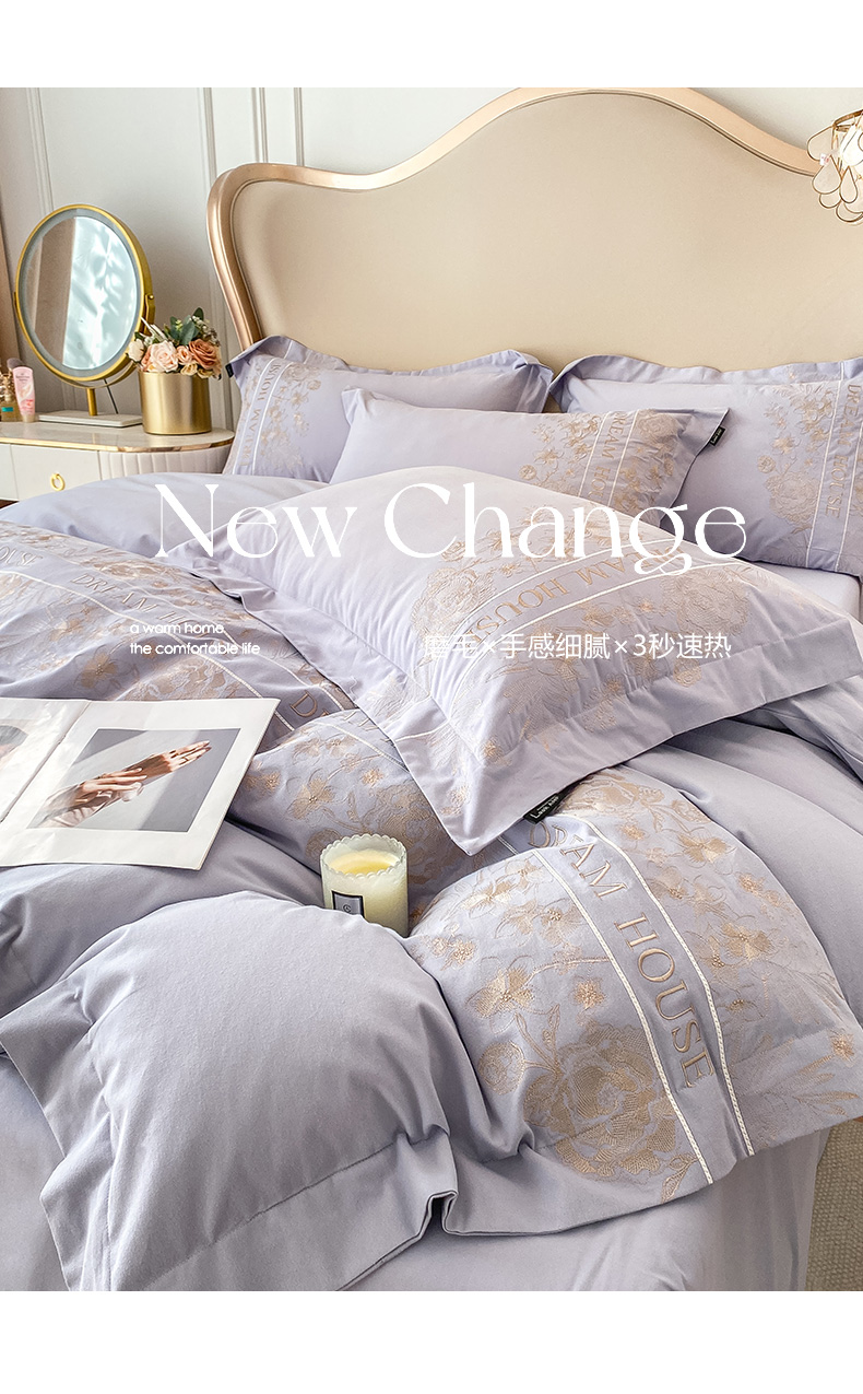 (总)2025新款轻奢风A类100支长绒棉四件套全棉纯棉重工刺绣床单床笠夹棉床笠床盖款高端床上用品-星慕,白粉,白蓝,茶绿,黛紫,慕蓝,奶玉,颜粉