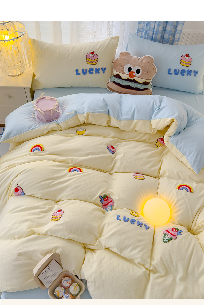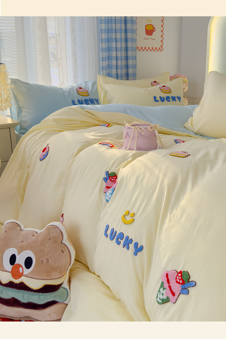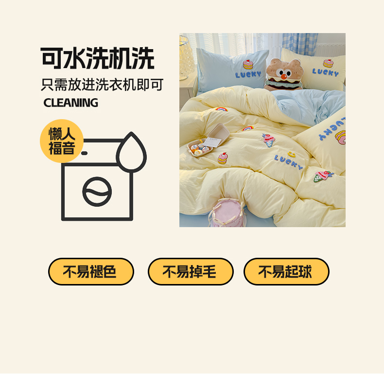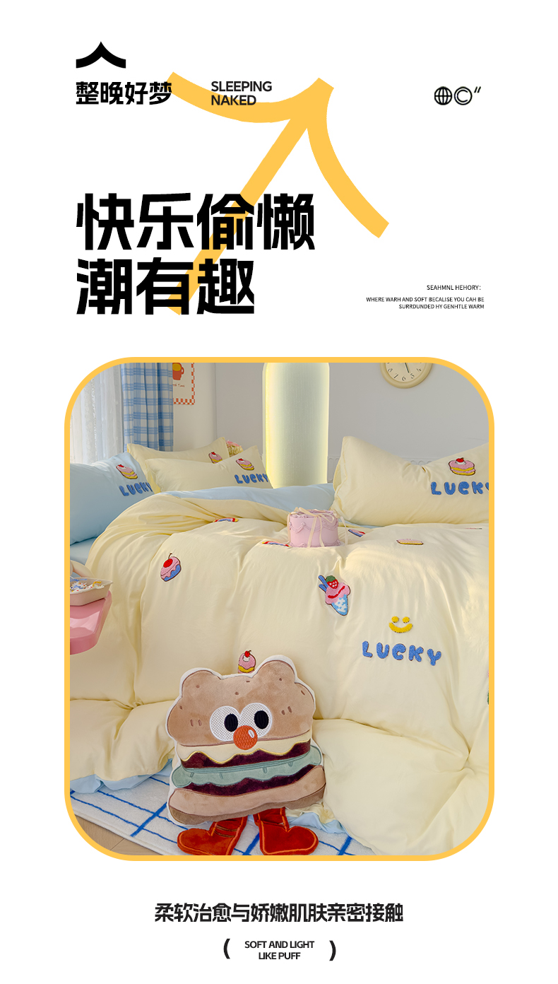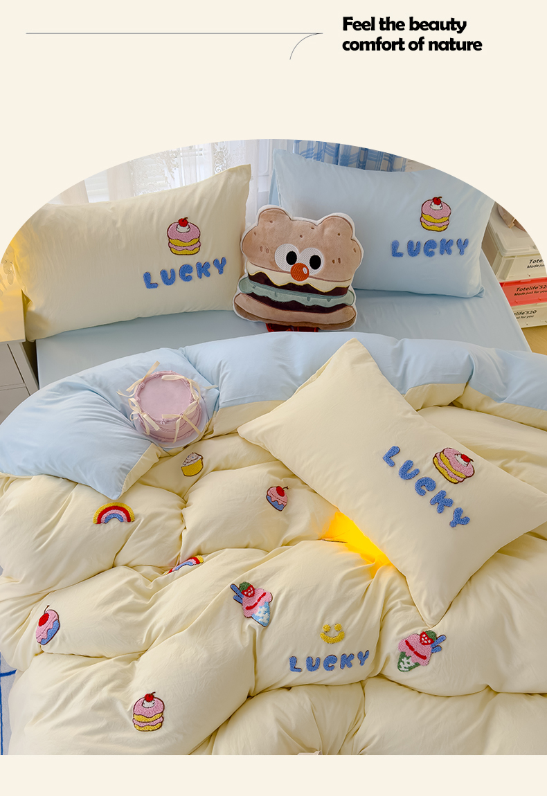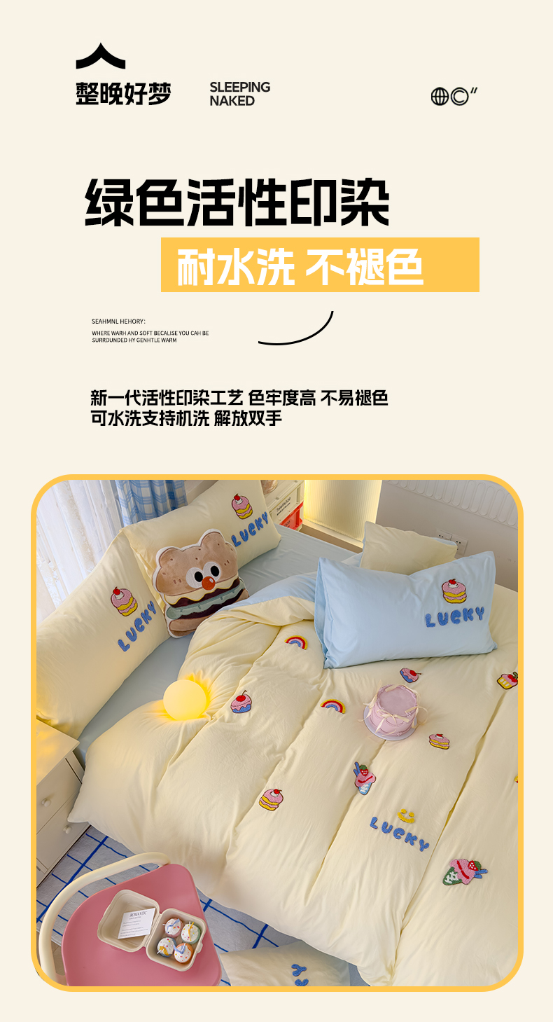 当前位置: 91家纺网 > 商品网购 > 床品套件 > 四件套 > 水洗棉四件套 > 颜选 2024新款小清新水洗棉立体毛巾绣四件套-生日派对 生日派对+奶蓝