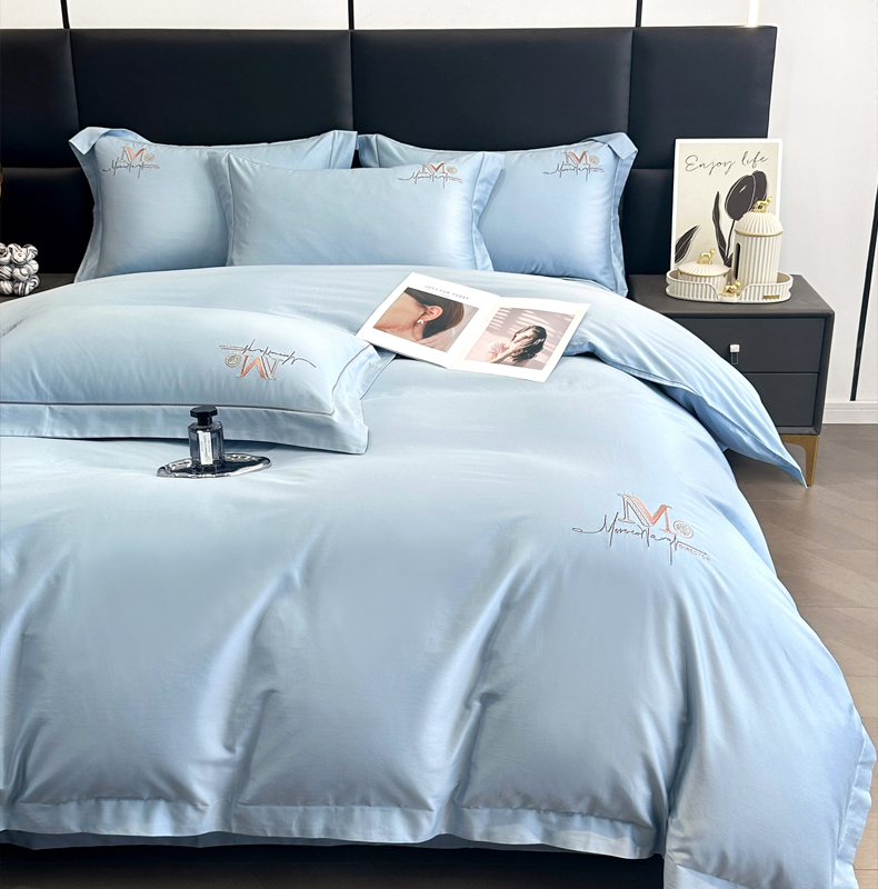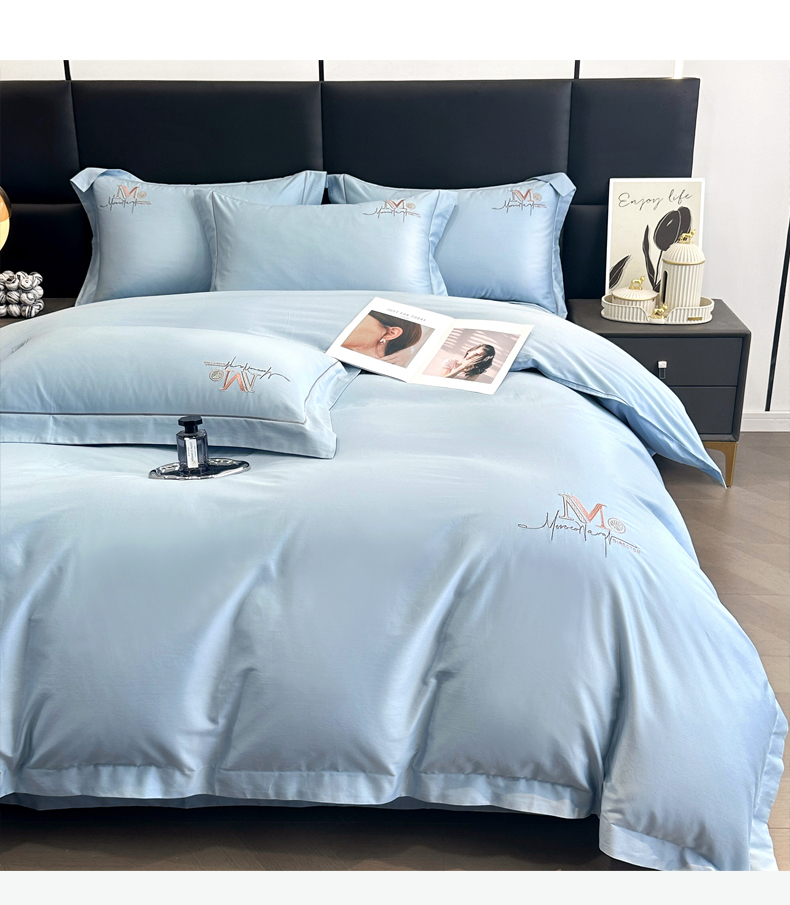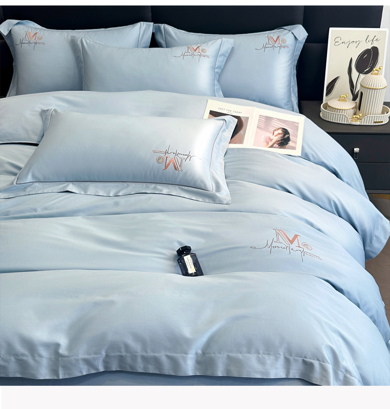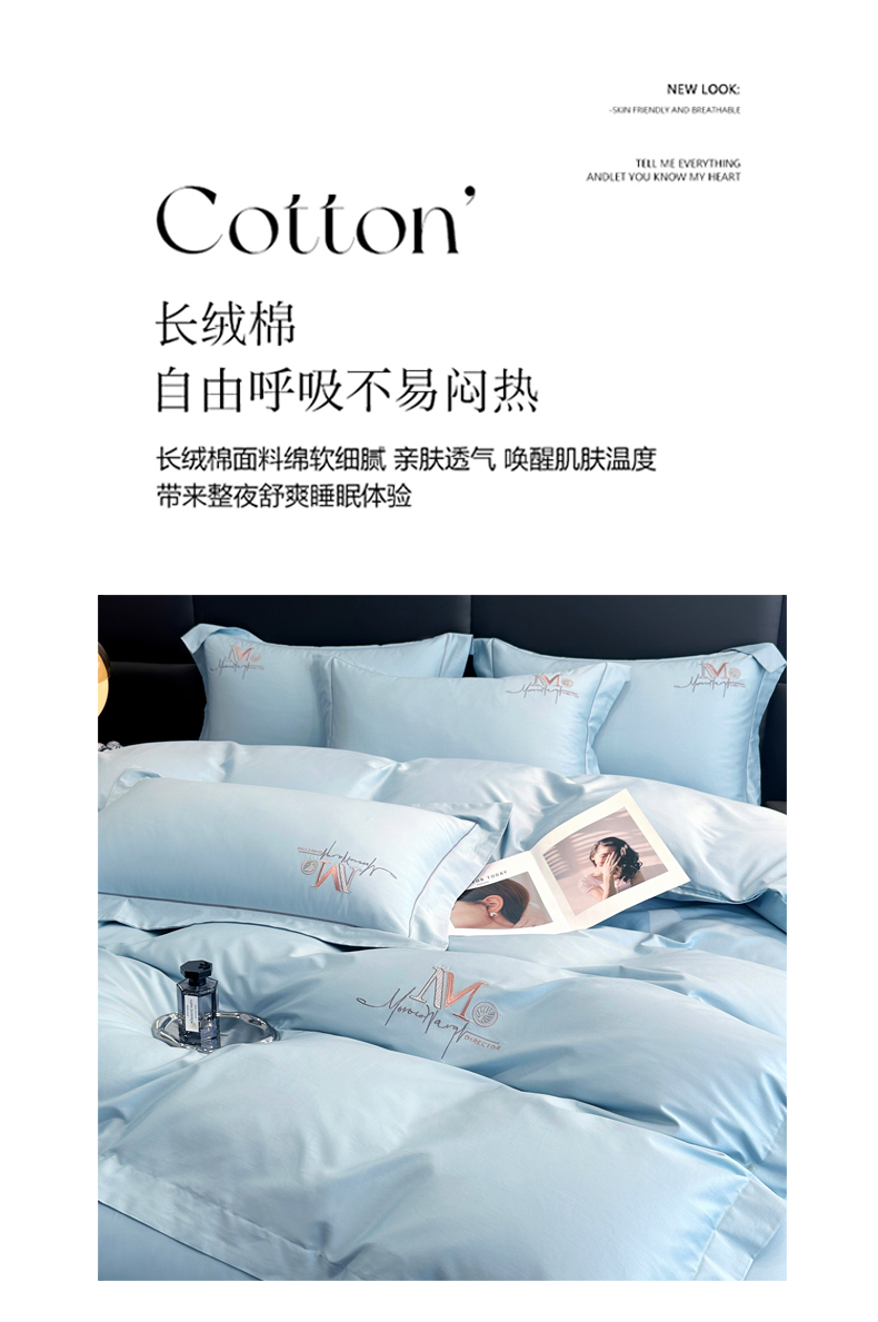 琉宿家纺 2025新款50s双股长绒棉绣花四件套 倾世红颜-天空蓝