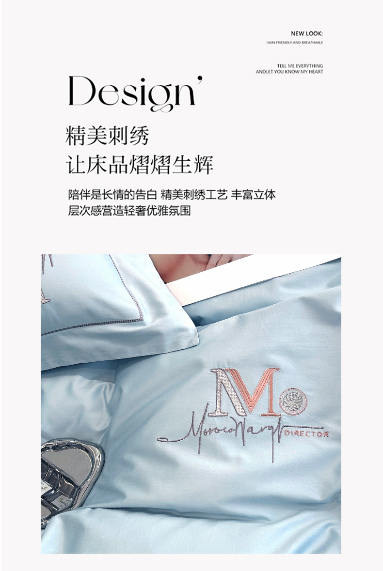 商品名称:琉宿家纺 2025新款50s双股长绒棉绣花四件套 倾世红颜-天空蓝