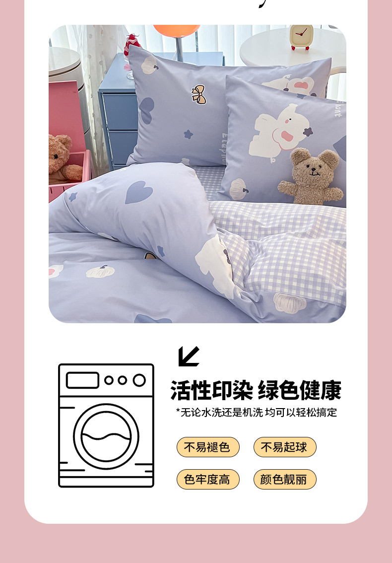 (总)晨希家居 2025新款全棉卡通活性印花四件套,子影,梦境,奶芙兔,犬梦物语,无忧熊仔,贝贝熊,蝴蝶小熊,恐龙乐园,快乐狗,小象童话,幸运猫咪,小松鼠,星空,彩虹猴,晚风逐梦
