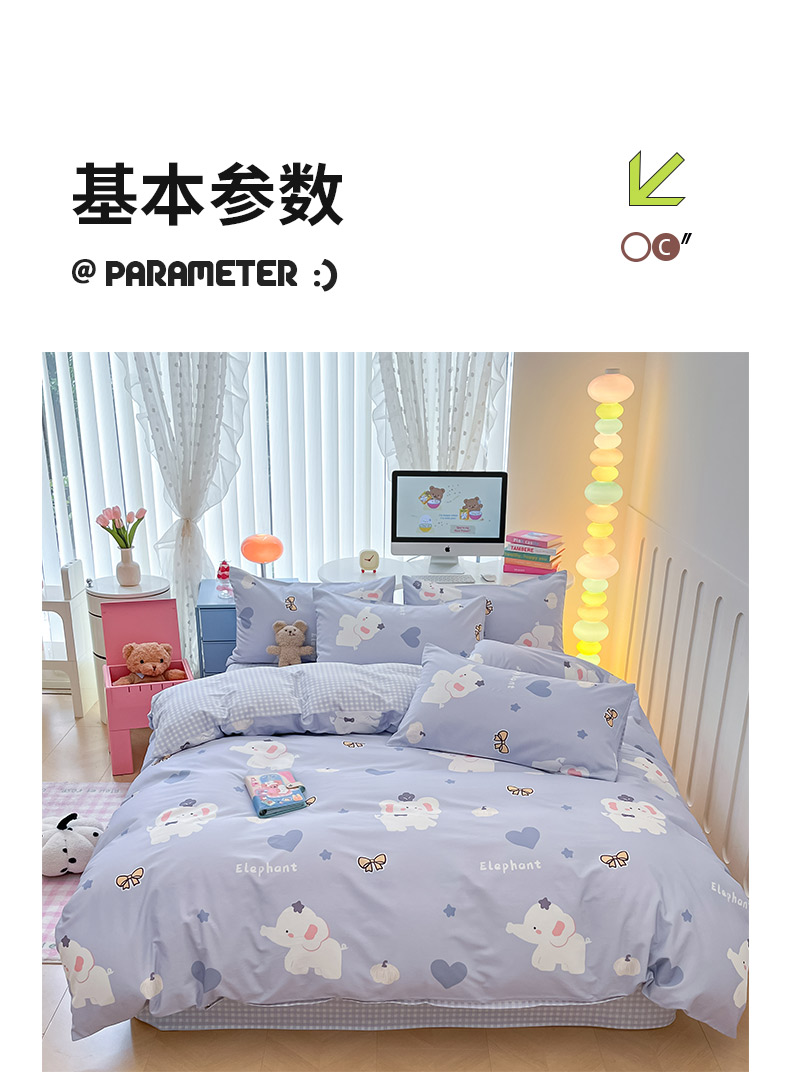 商品名称:晨希家居 2024新款全棉卡通活性印花四件套小象童话