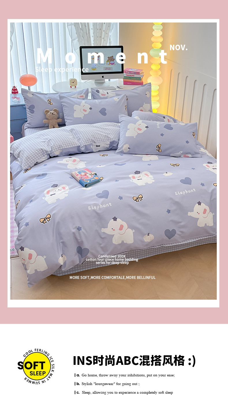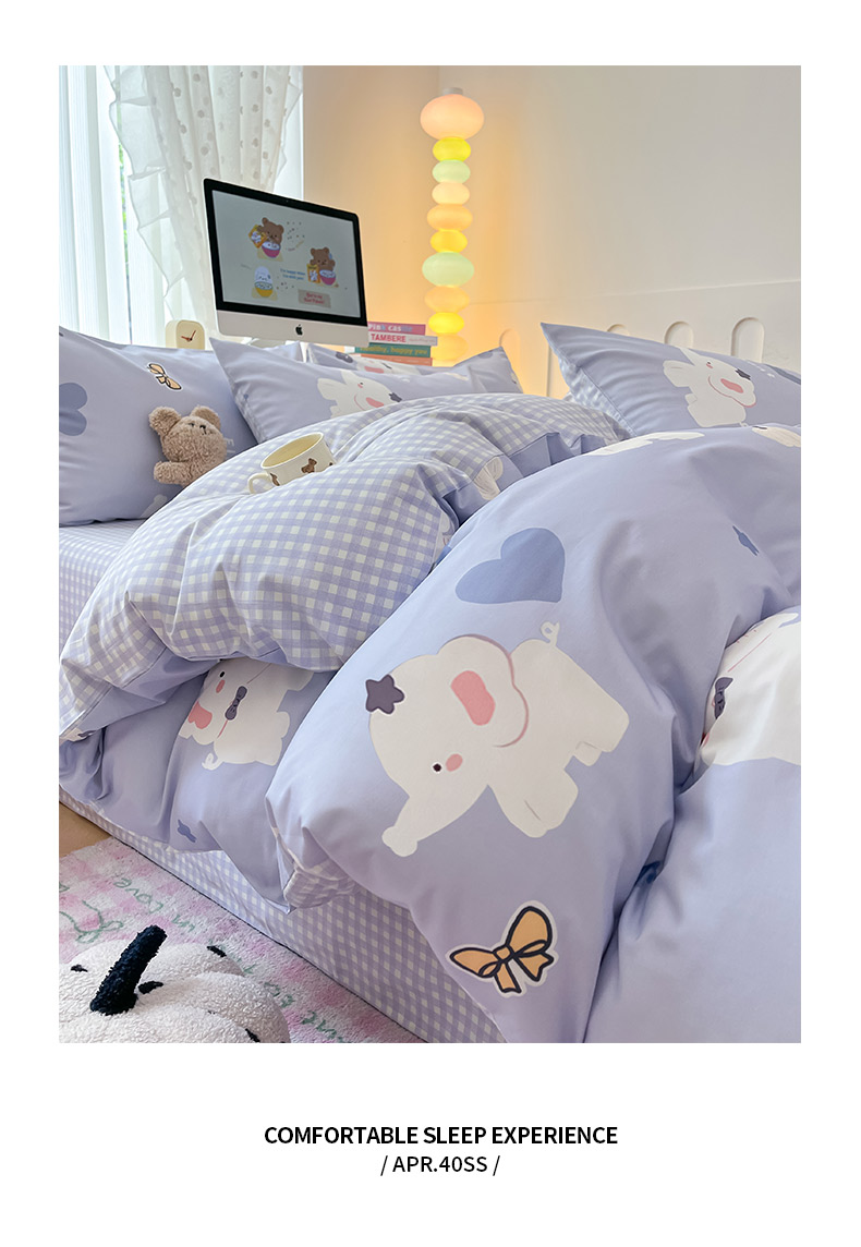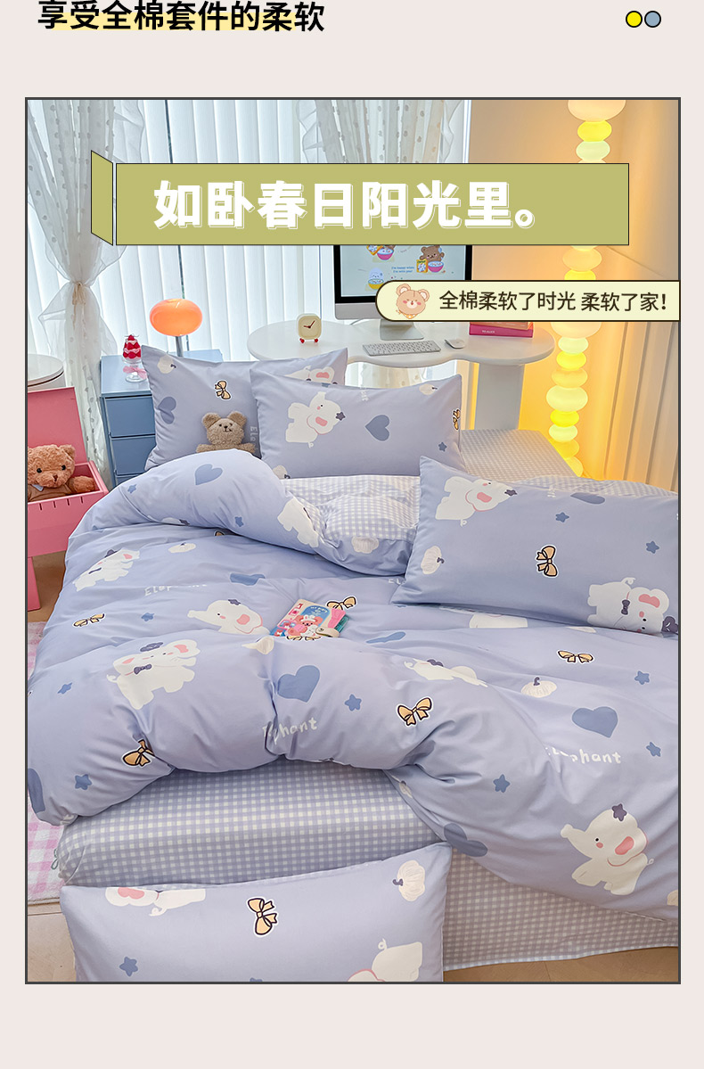 晨希家居 2024新款全棉卡通活性印花四件套小象童话