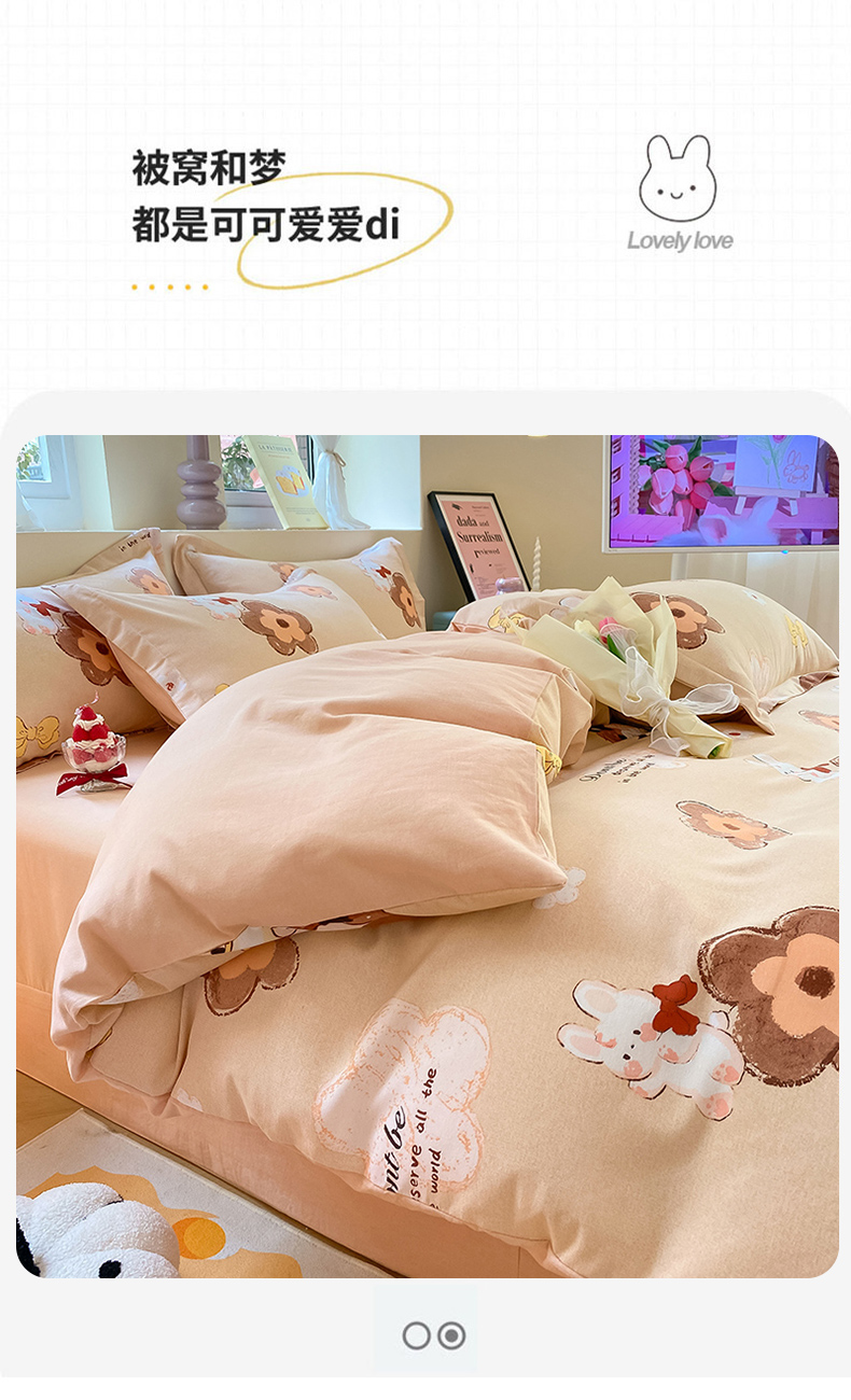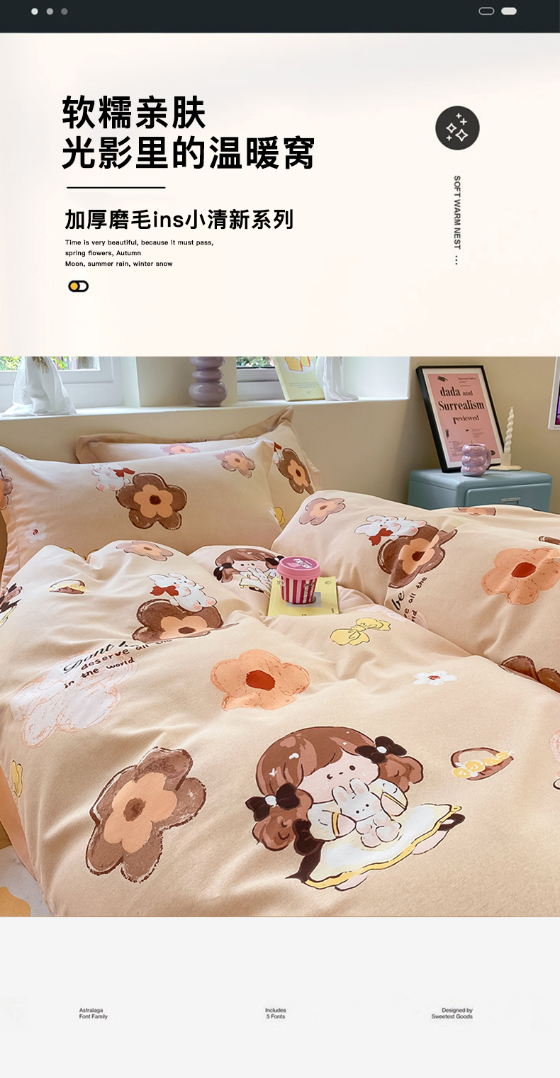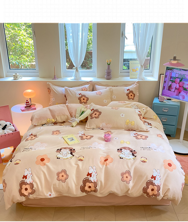 卧趣家纺 2024新款原棉磨毛四件套清新可爱系列四件套 花童