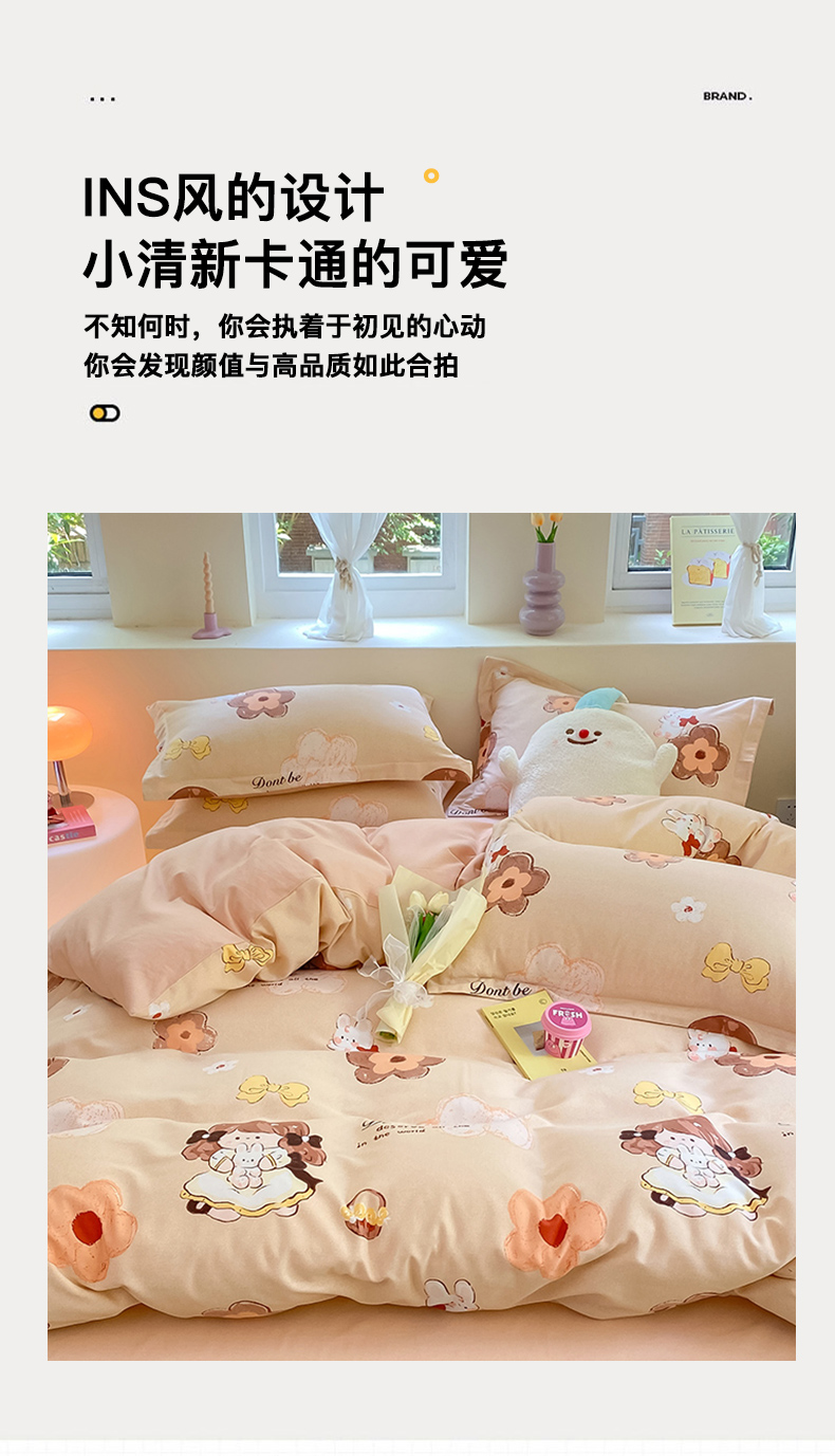 商品名称:卧趣家纺 2024新款原棉磨毛四件套清新可爱系列四件套 花童