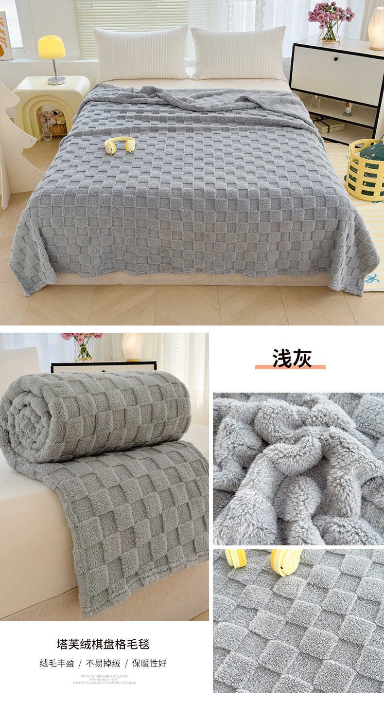 商品名称:枋梢家纺 2024新款跨境电商塔芙绒纯色棋盘格提花多功能盖毯午睡毯子办公毛毯 浅灰