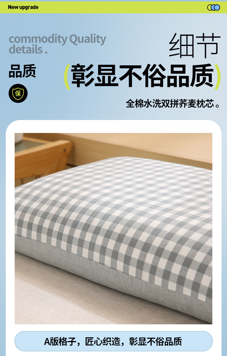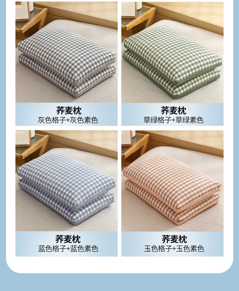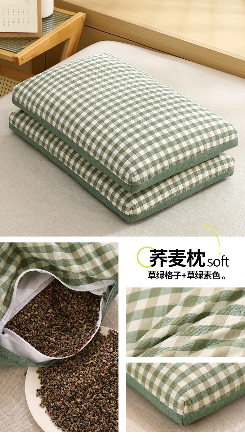 当前位置: 91家纺网 > 商品网购 > 枕头/枕芯/保健枕/颈椎枕 > 普通枕芯 > 梦叶草 2024新款全棉水洗棉A版格子B版纯色双拼荞麦枕芯 草绿格子+草绿素色荞麦枕40*70cm/只