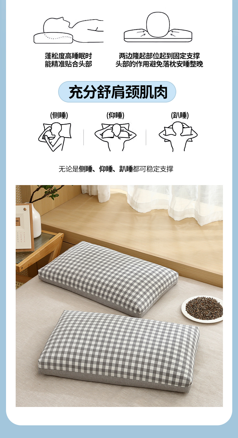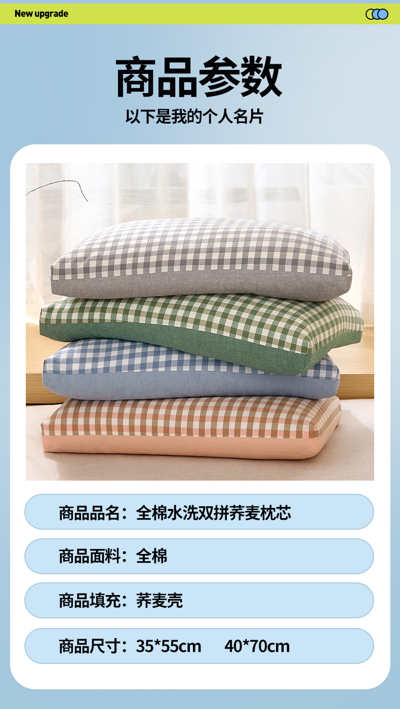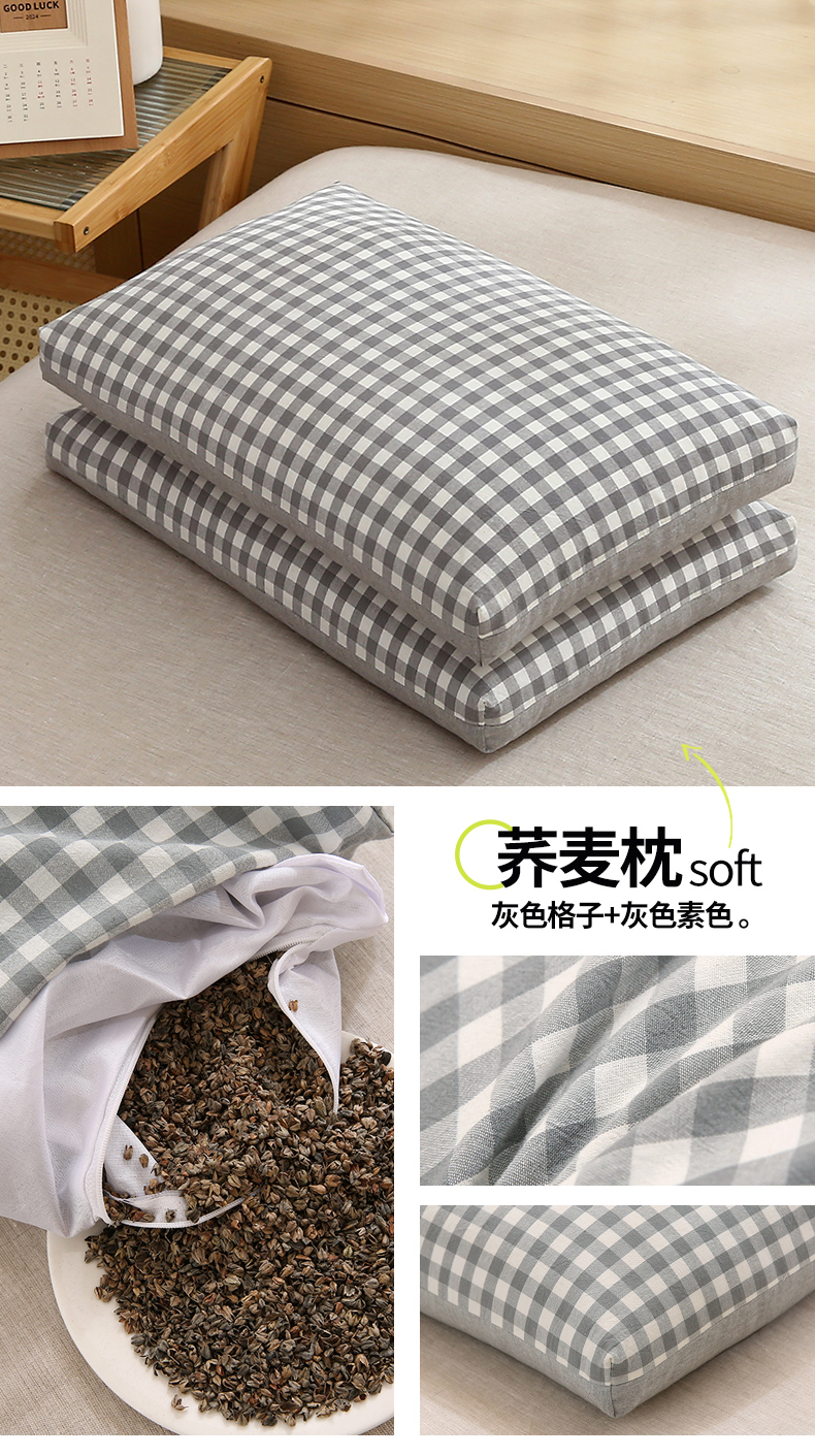 当前位置: 91家纺网 > 商品网购 > 枕头/枕芯/保健枕/颈椎枕 > 普通枕芯 > 梦叶草 2024新款全棉水洗棉A版格子B版纯色双拼荞麦枕芯 草绿格子+草绿素色荞麦枕40*70cm/只