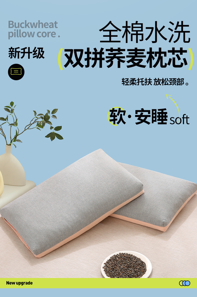 当前位置: 91家纺网 > 商品网购 > 枕头/枕芯/保健枕/颈椎枕 > 普通枕芯 > 梦叶草 2024新款全棉水洗棉素色双拼荞麦枕芯 双拼草绿+玉色荞麦枕40*70cm/只