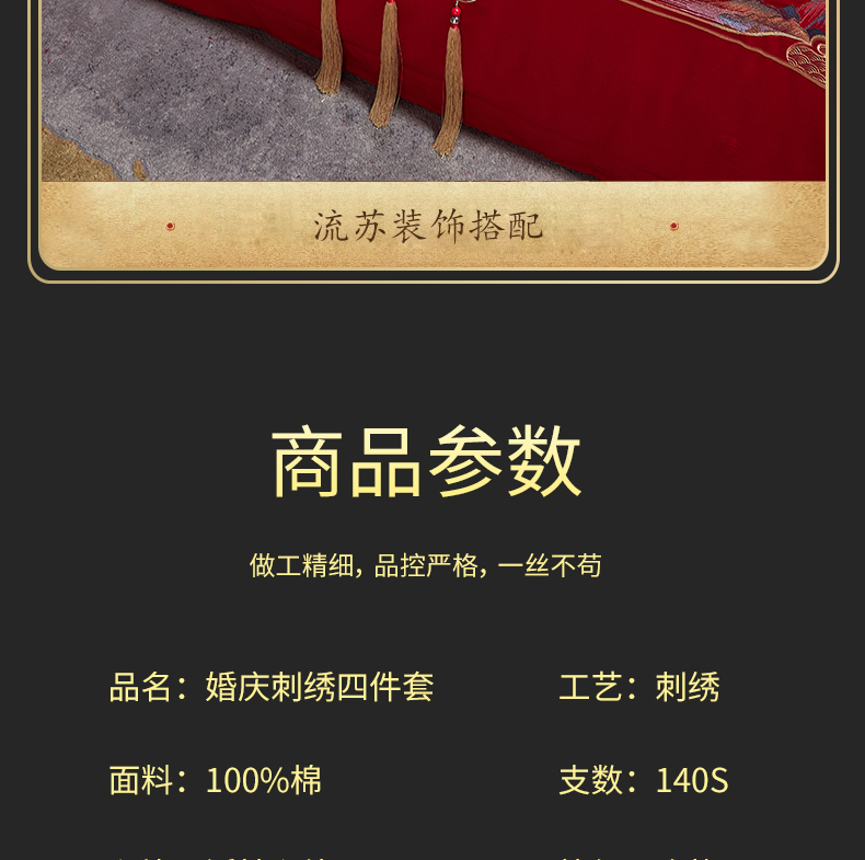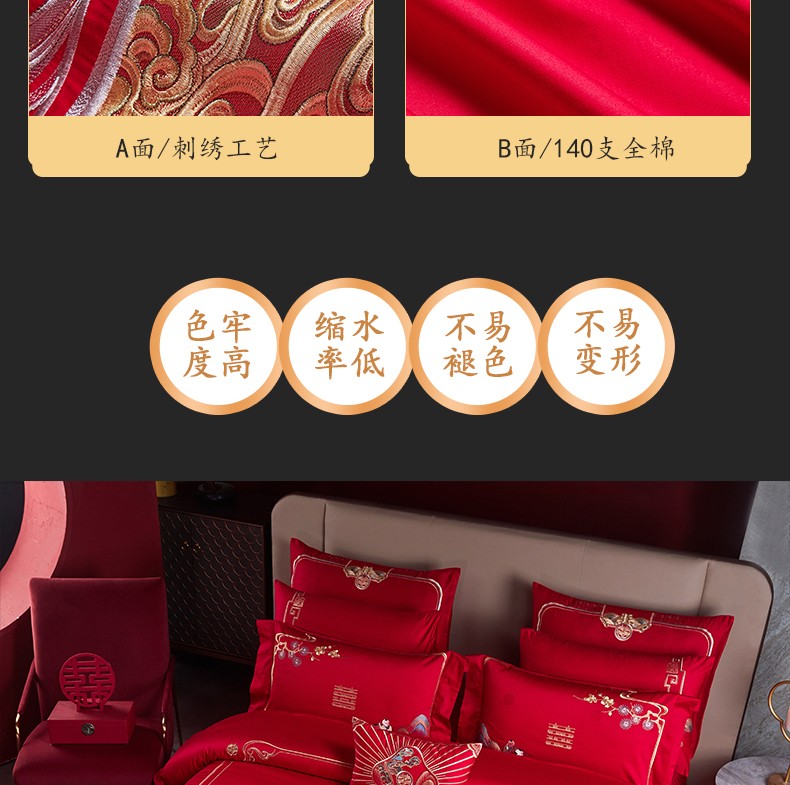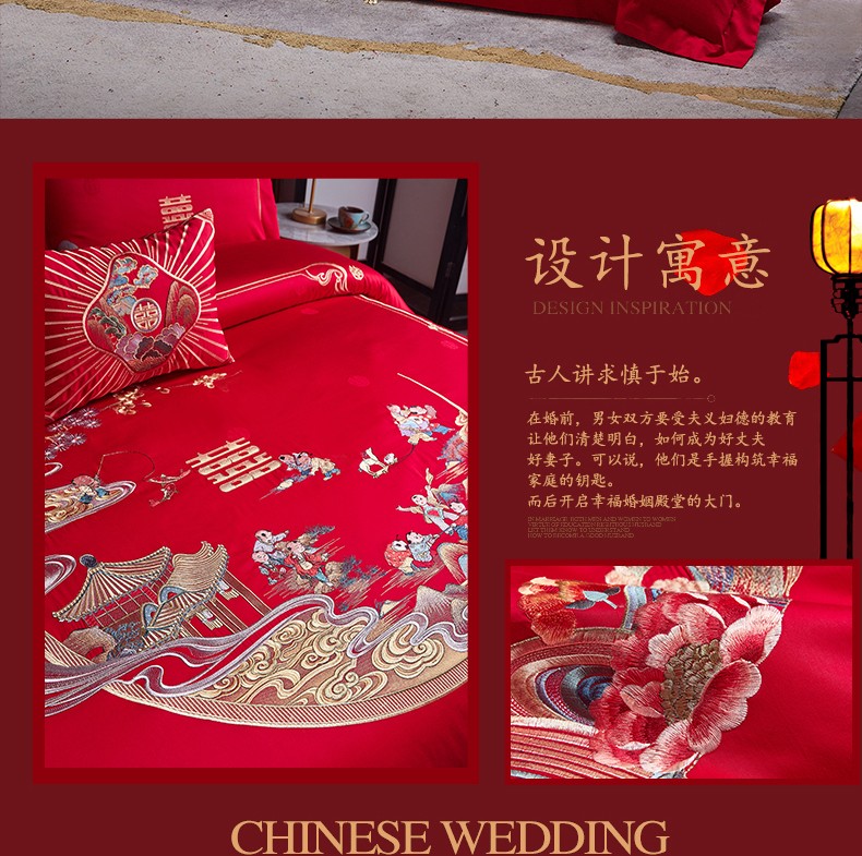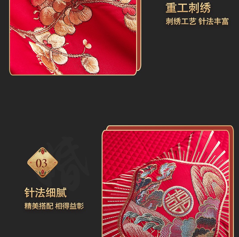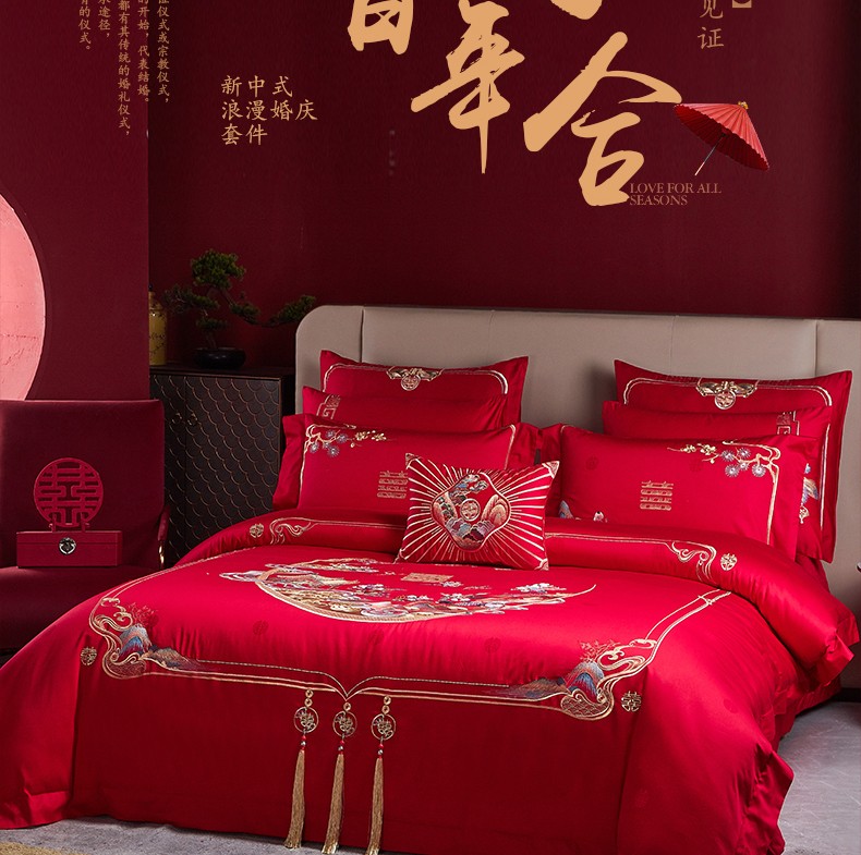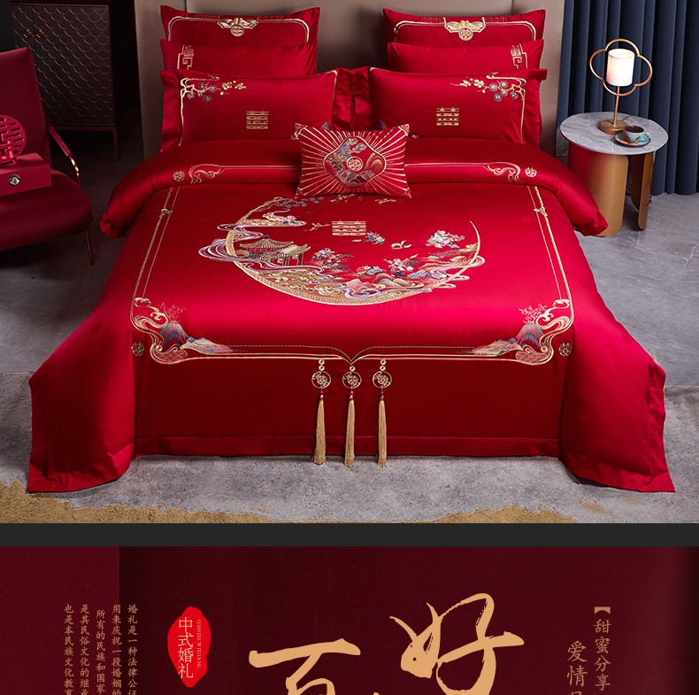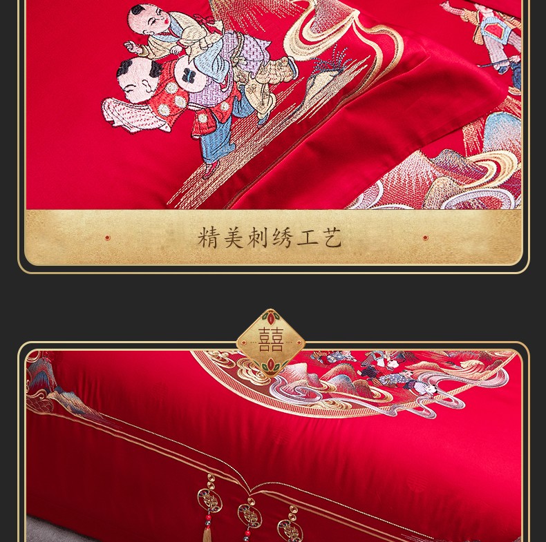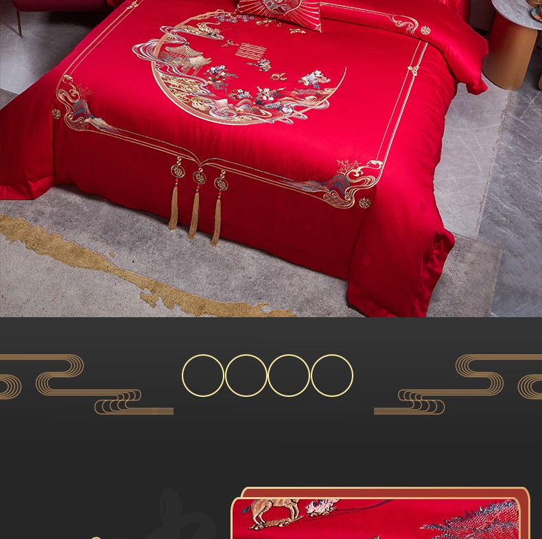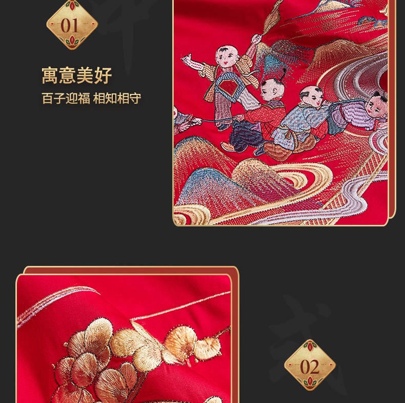 当前位置: 91家纺网 > 商品网购 > 床品套件 > 四件套 > 婚庆四件套 > 美娘阁 2025新款长绒棉贡缎提花款新中式古典韵味精美刺绣婚庆四件套多件套 百子迎喜