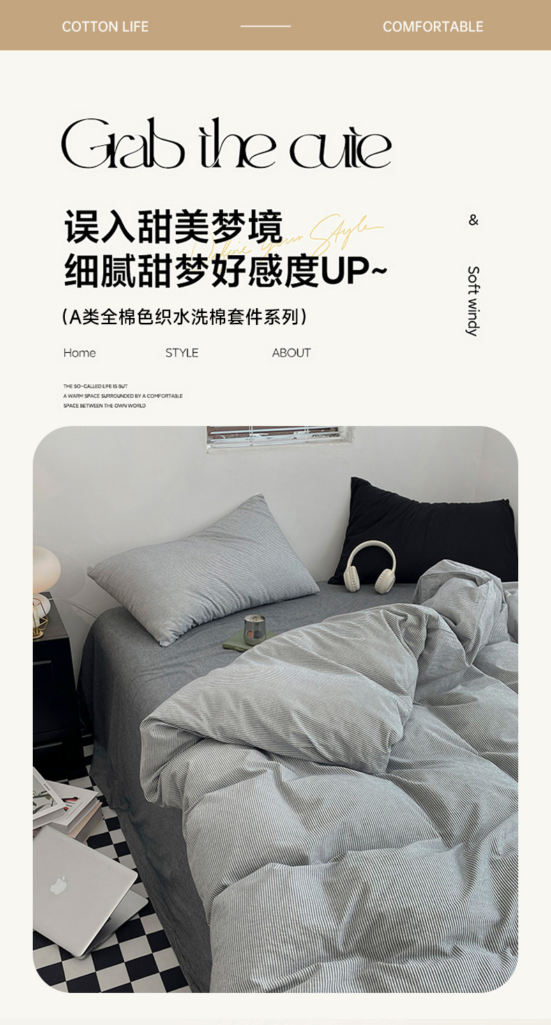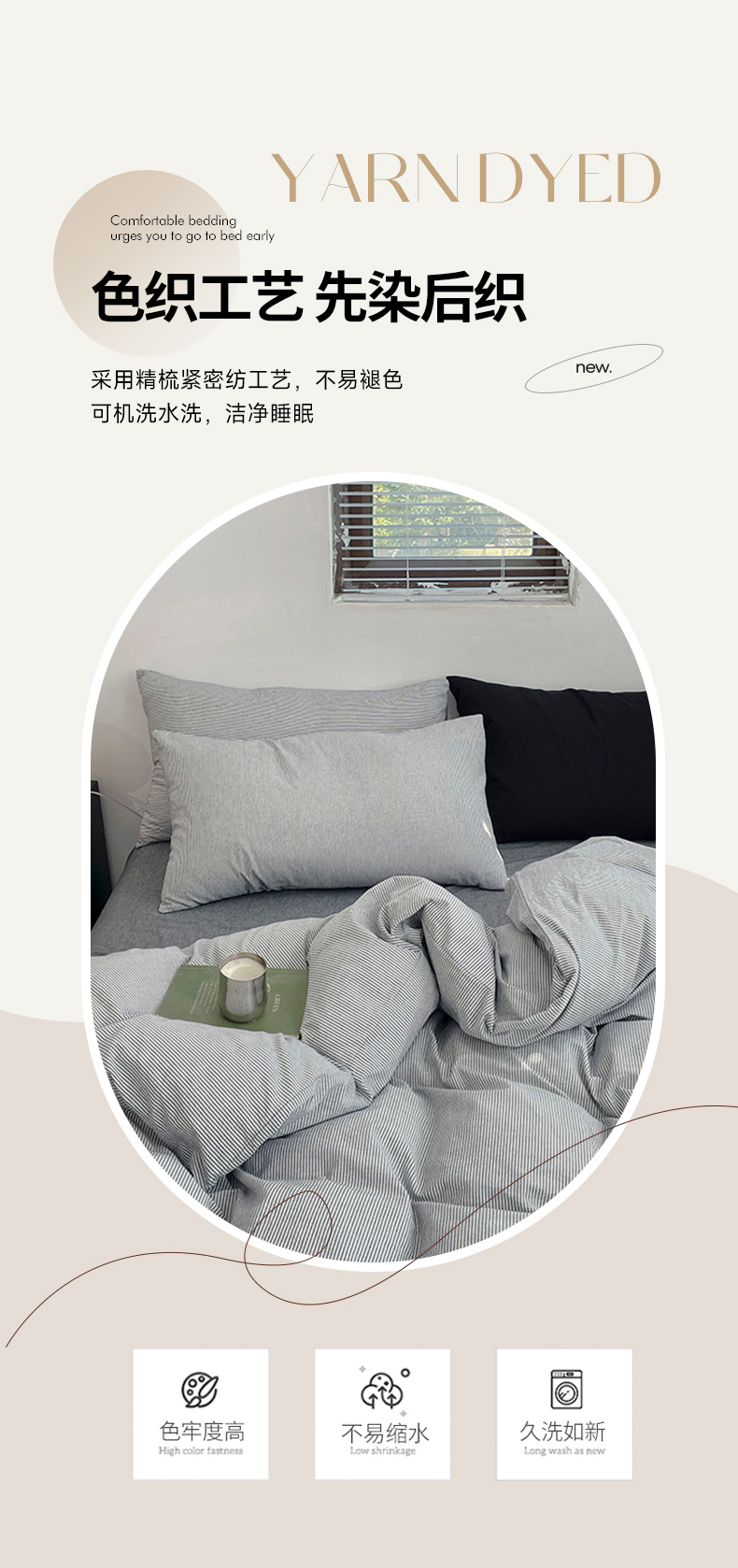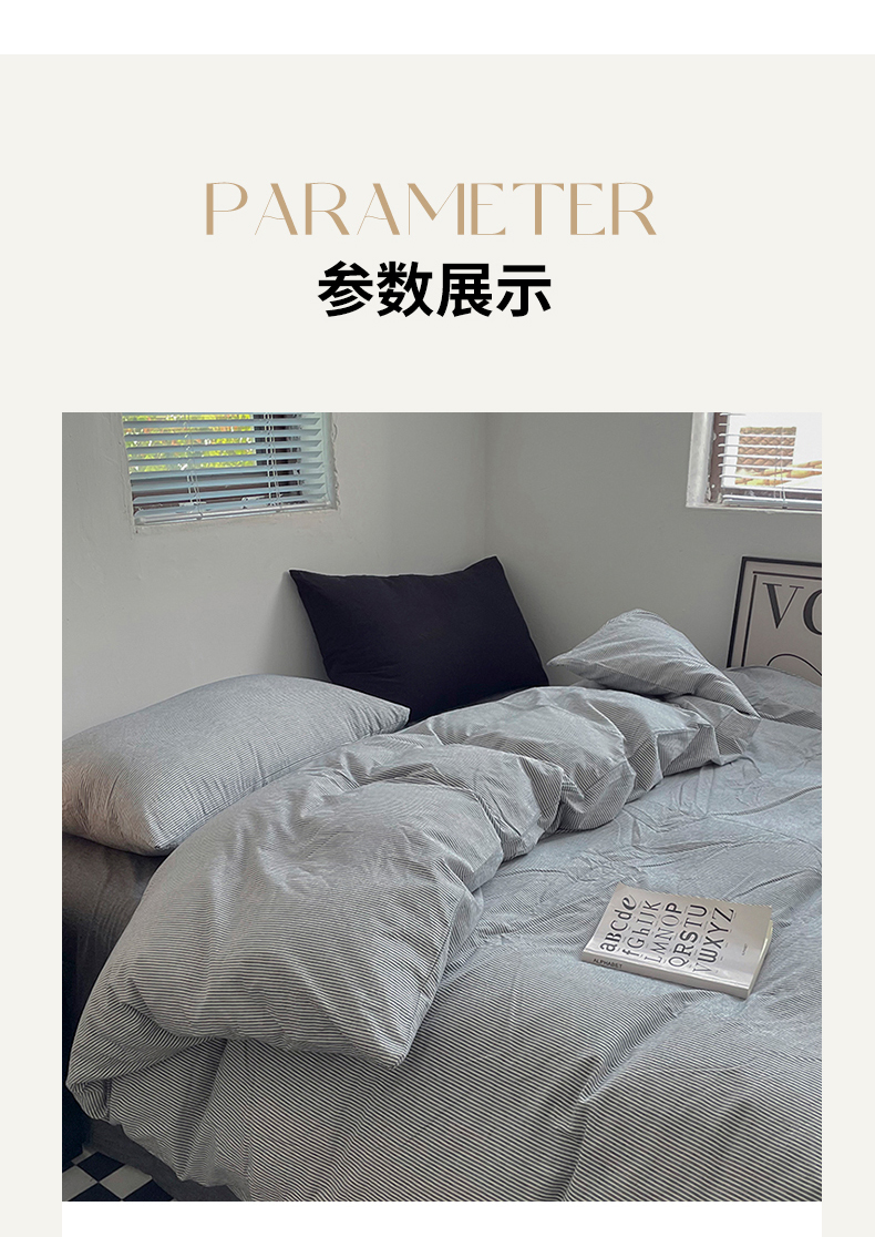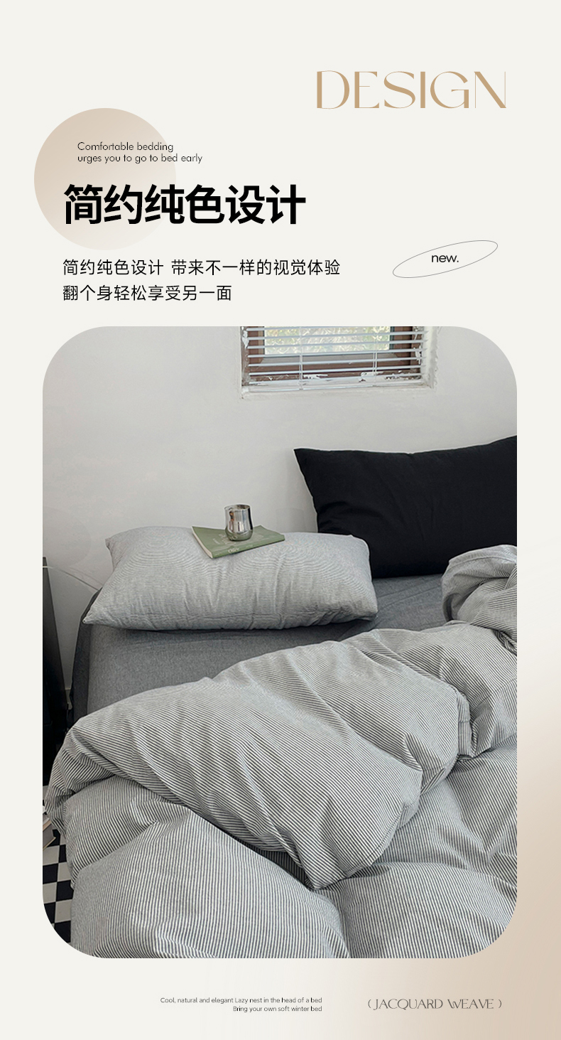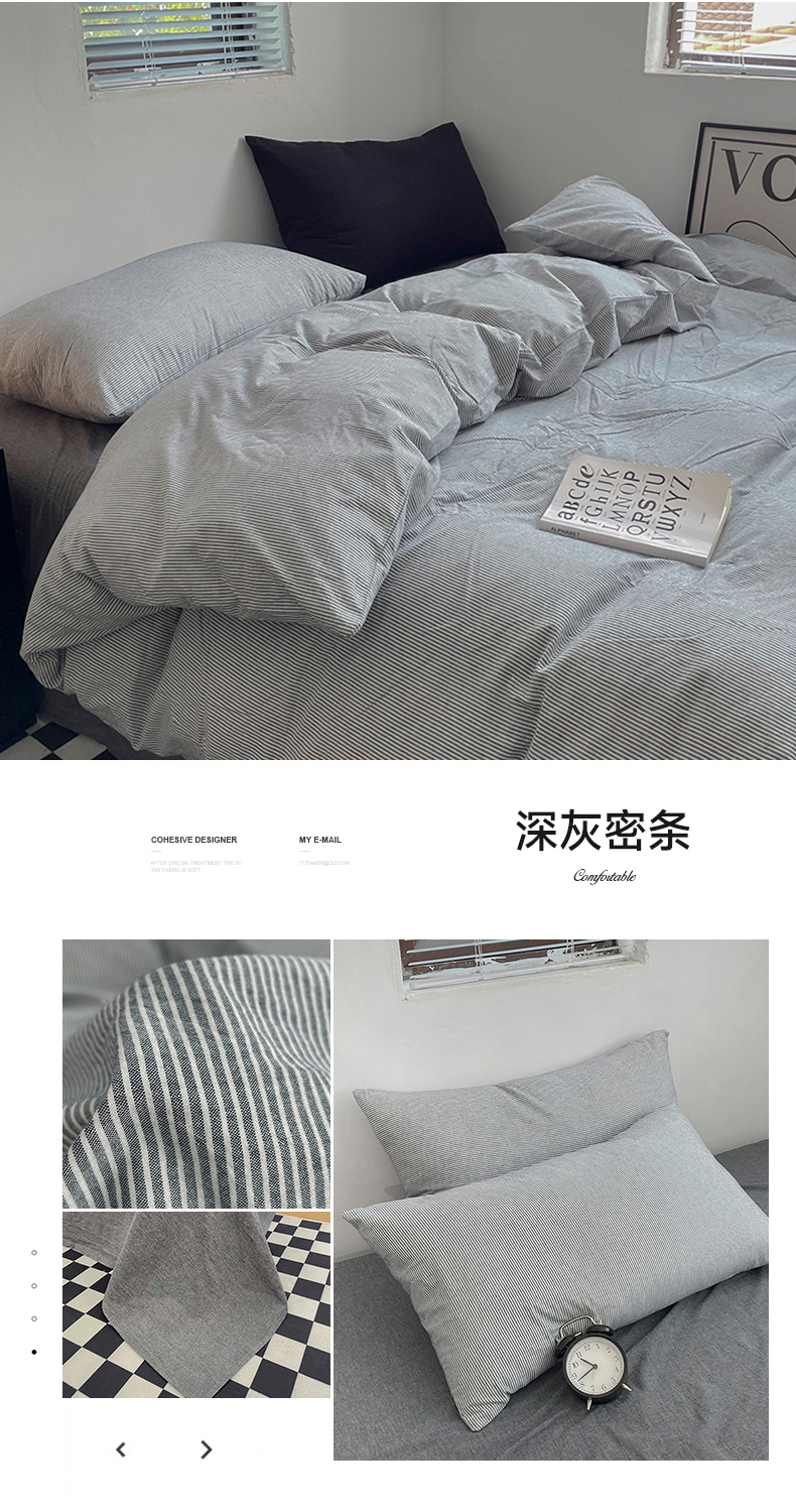 当前位置: 91家纺网 > 商品网购 > 床品套件 > 四件套 > 全棉普通四件套 > 2024新款A类全棉纯棉纯色双拼色织水洗棉四件套 深灰密条