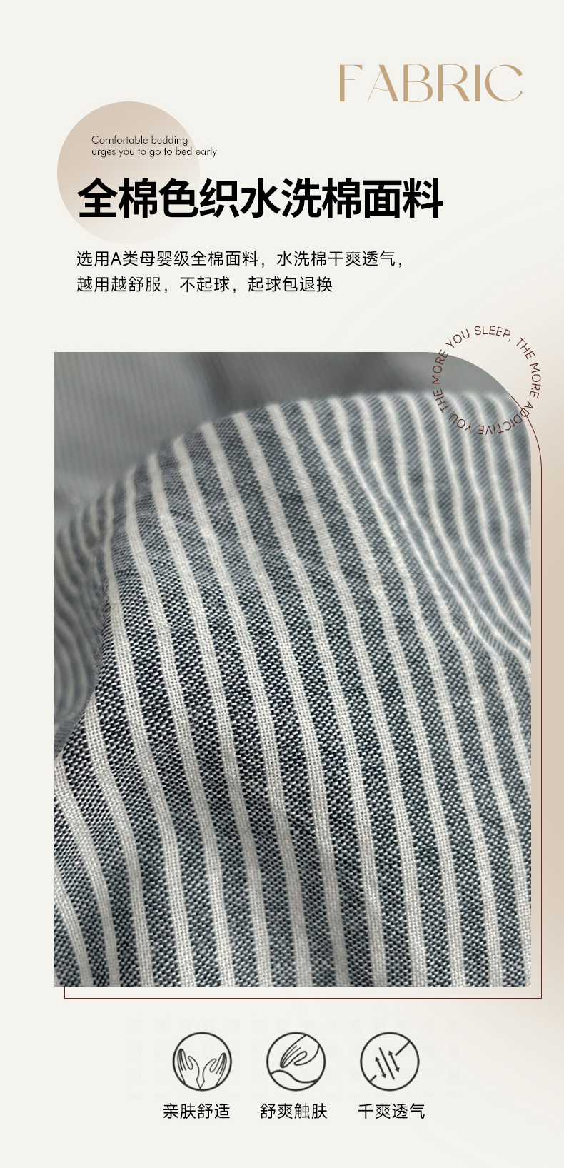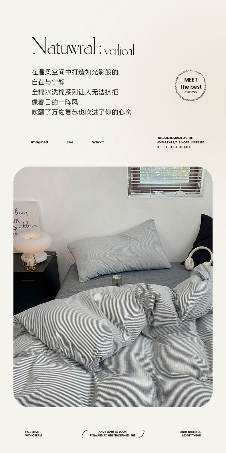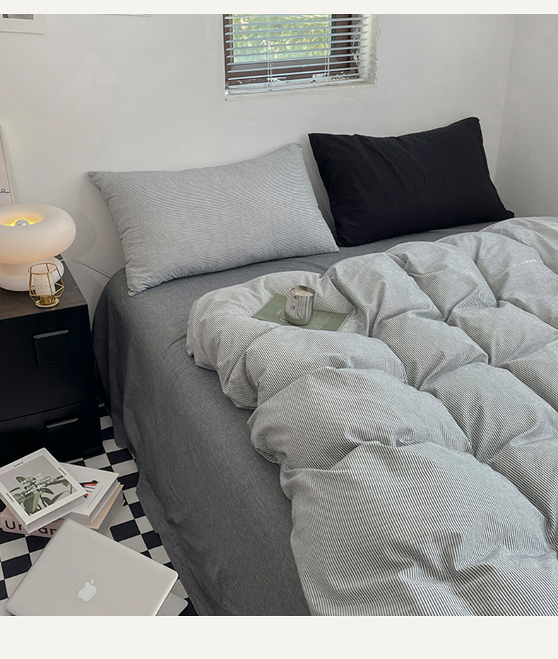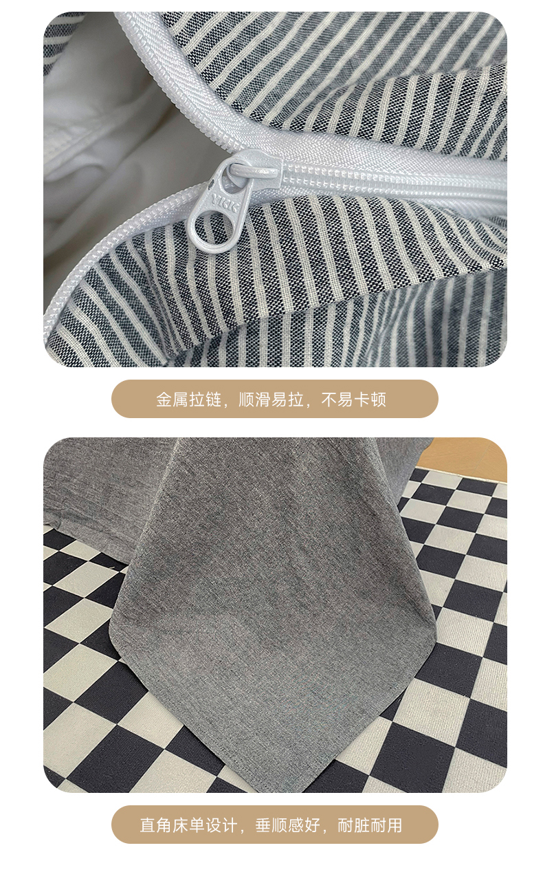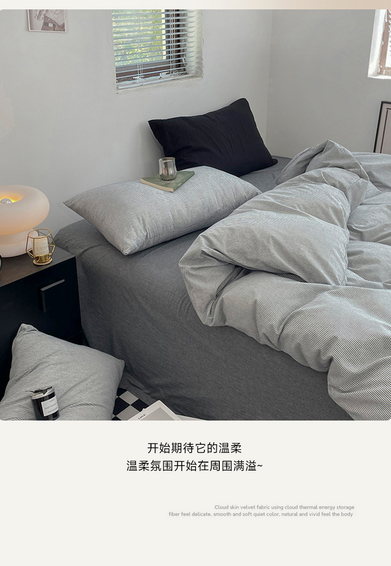 当前位置: 91家纺网 > 商品网购 > 床品套件 > 四件套 > 全棉普通四件套 > 2024新款A类全棉纯棉纯色双拼色织水洗棉四件套 深灰密条