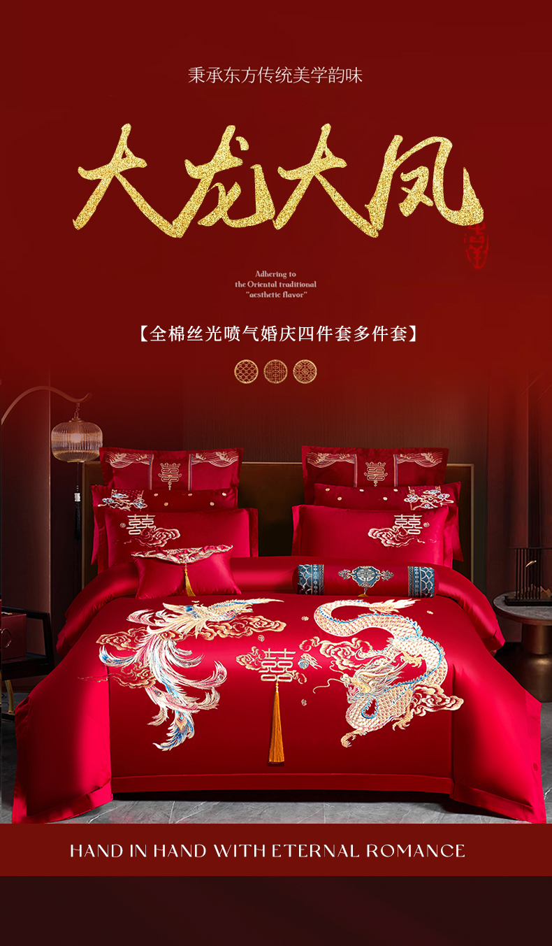 当前位置: 91家纺网 > 商品网购 > 床品套件 > 四件套 > 婚庆四件套 > 振翼 2025新款40s全棉丝光喷气婚庆四件套多件套1 大龙大凤