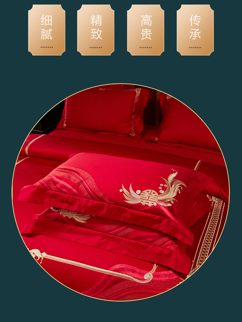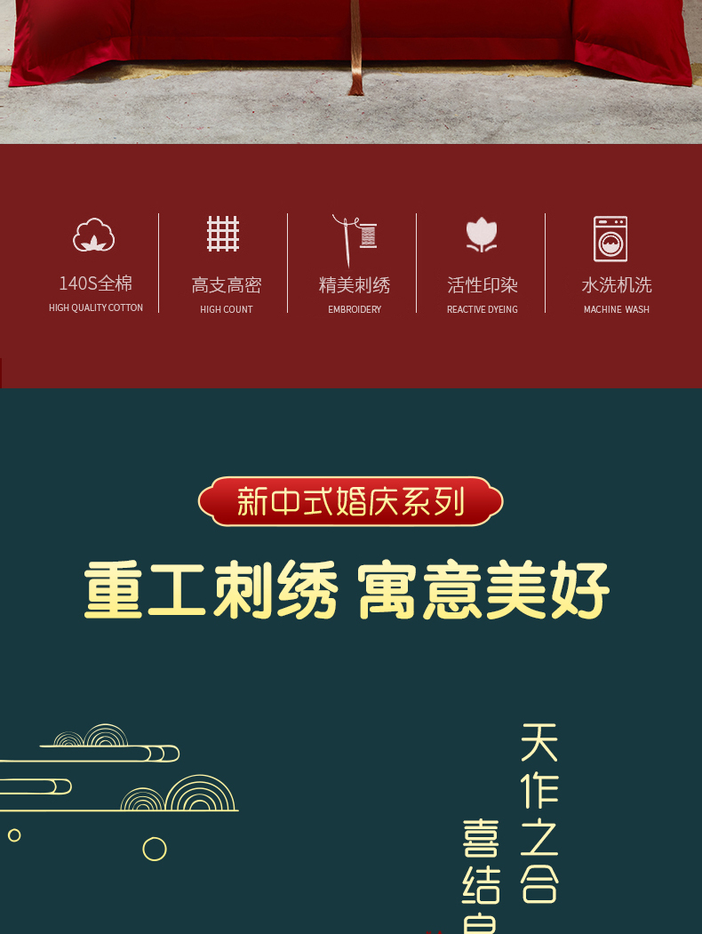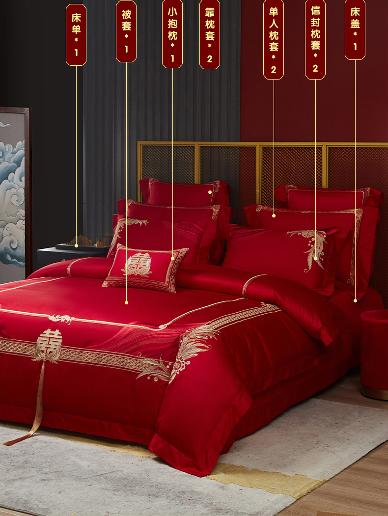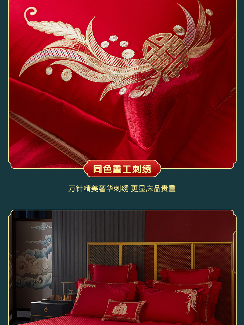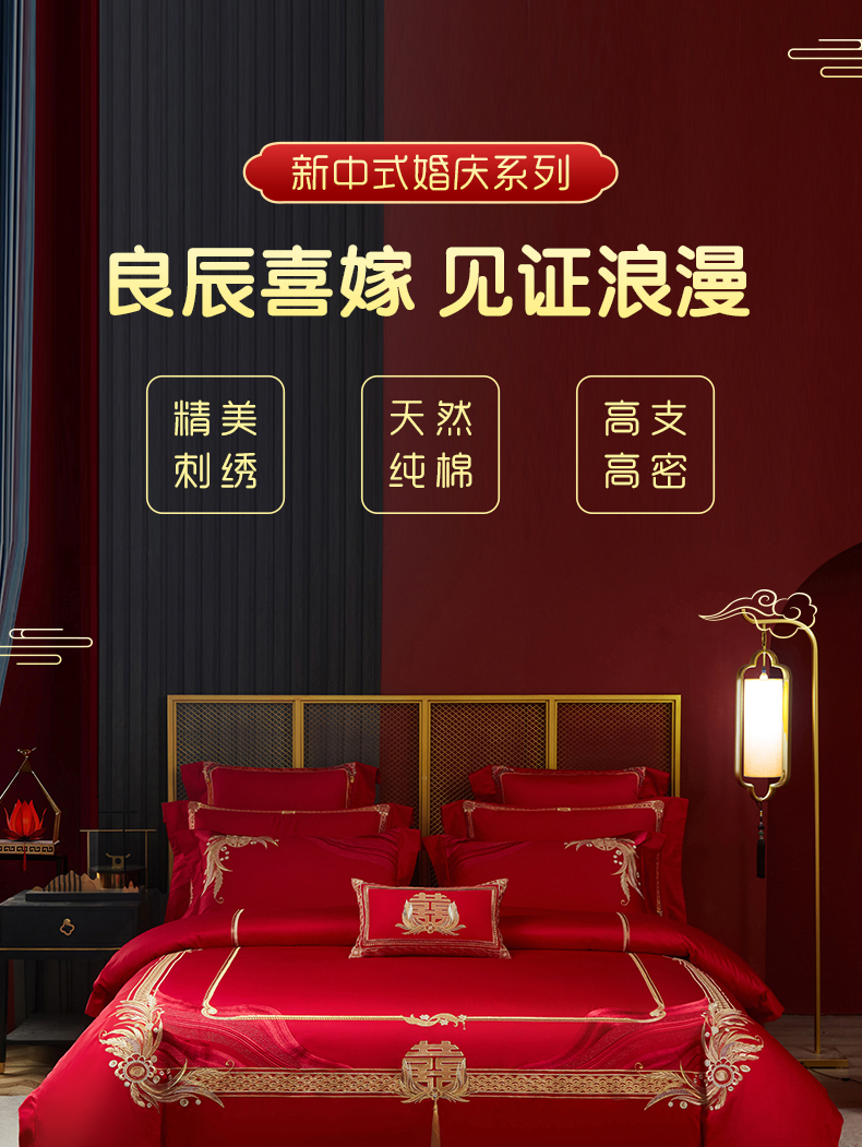 当前位置: 91家纺网 > 商品网购 > 床品套件 > 四件套 > 婚庆四件套 > 美娘阁 2025新款长绒棉贡缎新中式古典韵味精美刺绣婚庆四件套多件套系列 缘定三生(金)