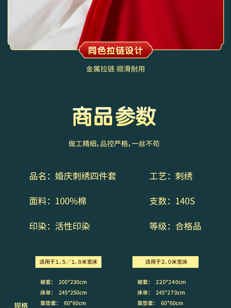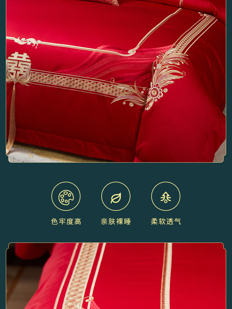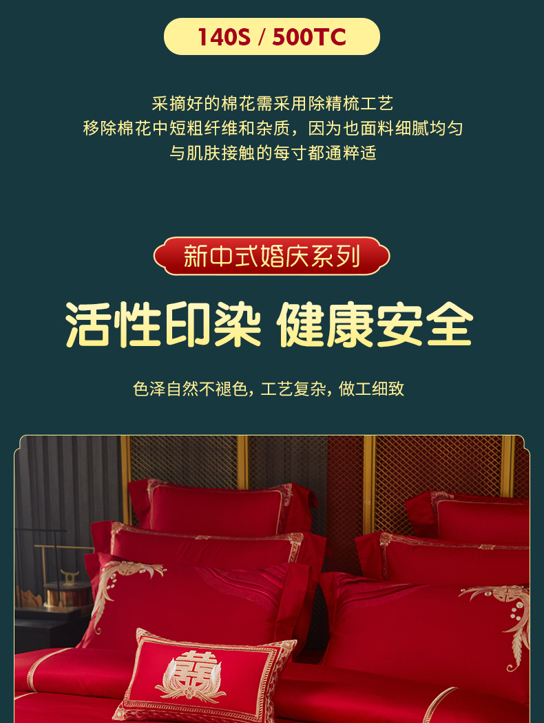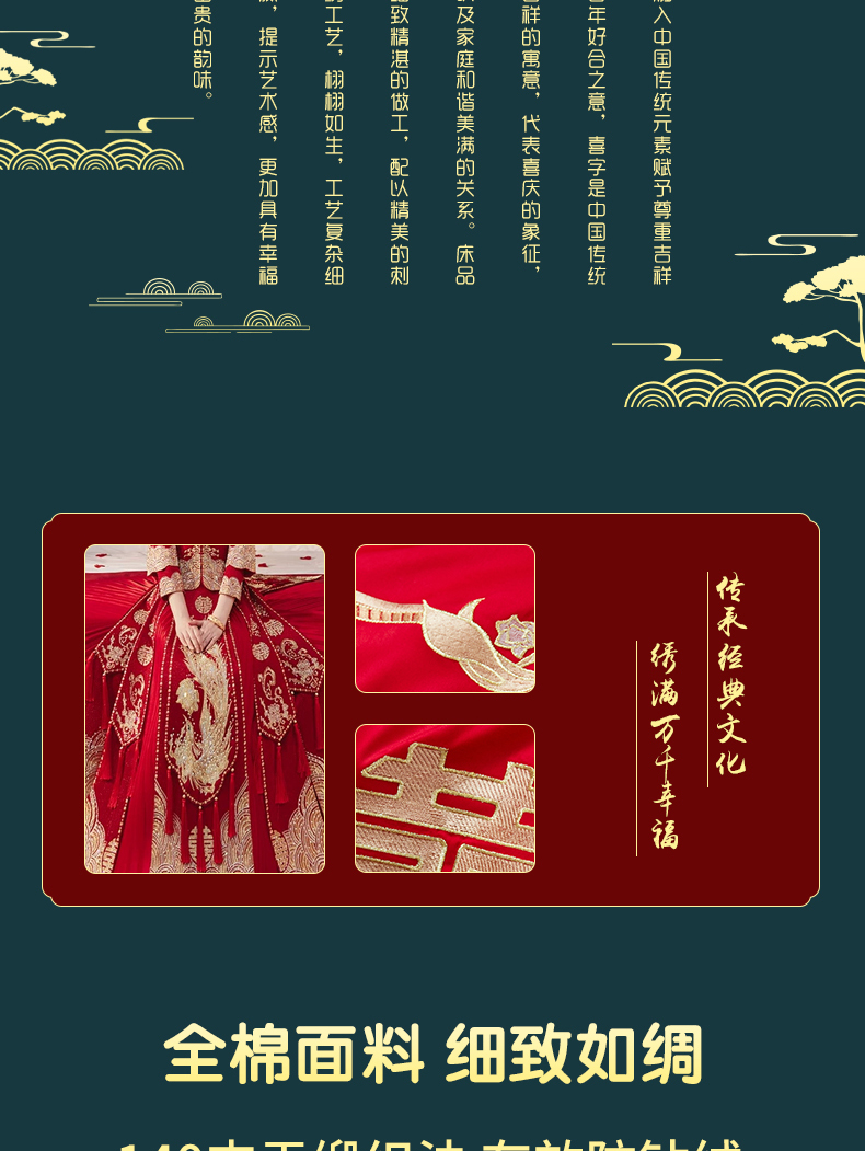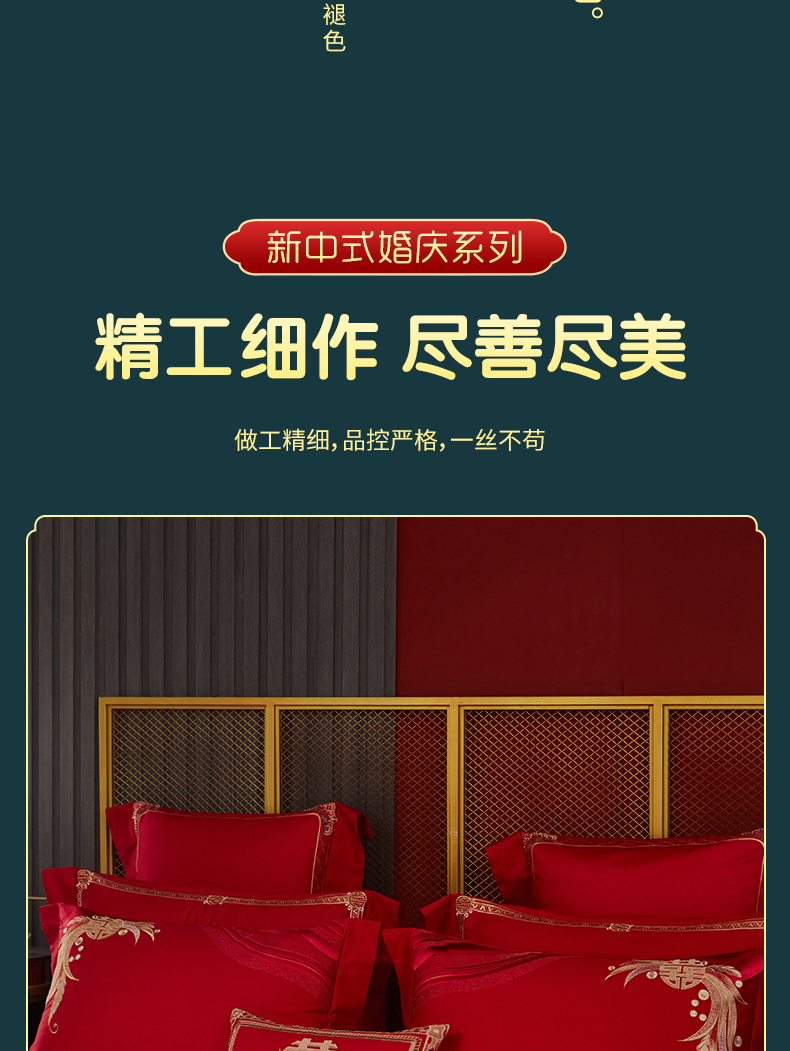 当前位置: 91家纺网 > 商品网购 > 床品套件 > 四件套 > 婚庆四件套 > 美娘阁 2025新款长绒棉贡缎新中式古典韵味精美刺绣婚庆四件套多件套系列 缘定三生(金)