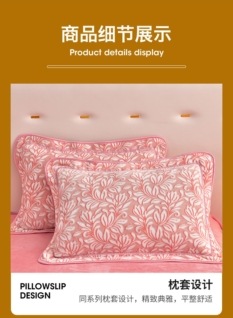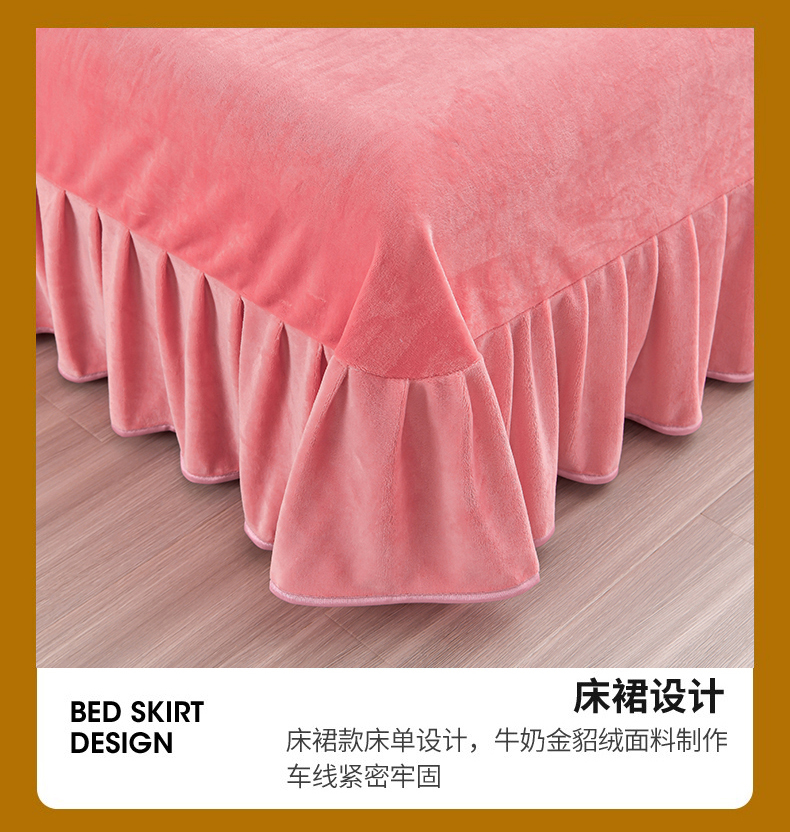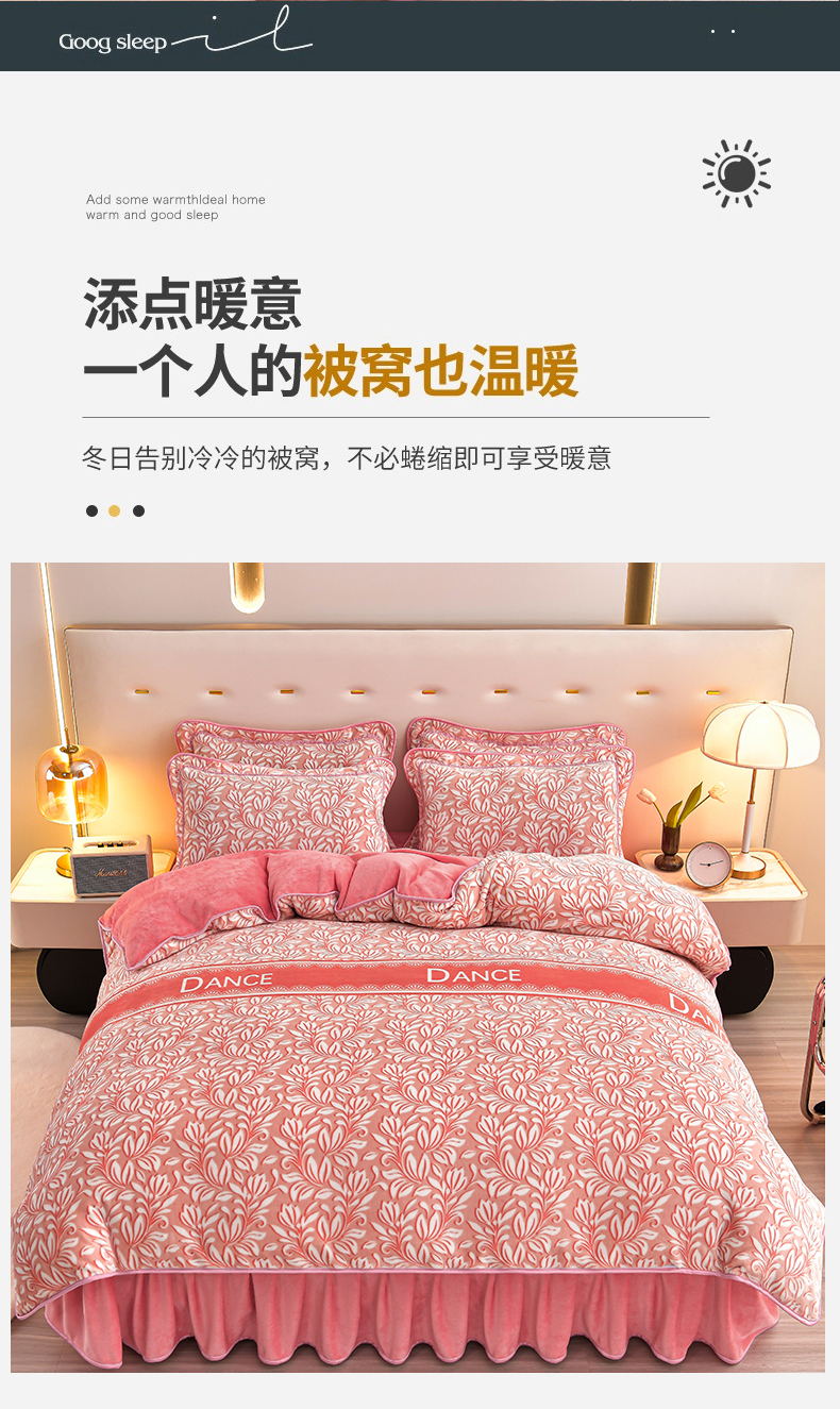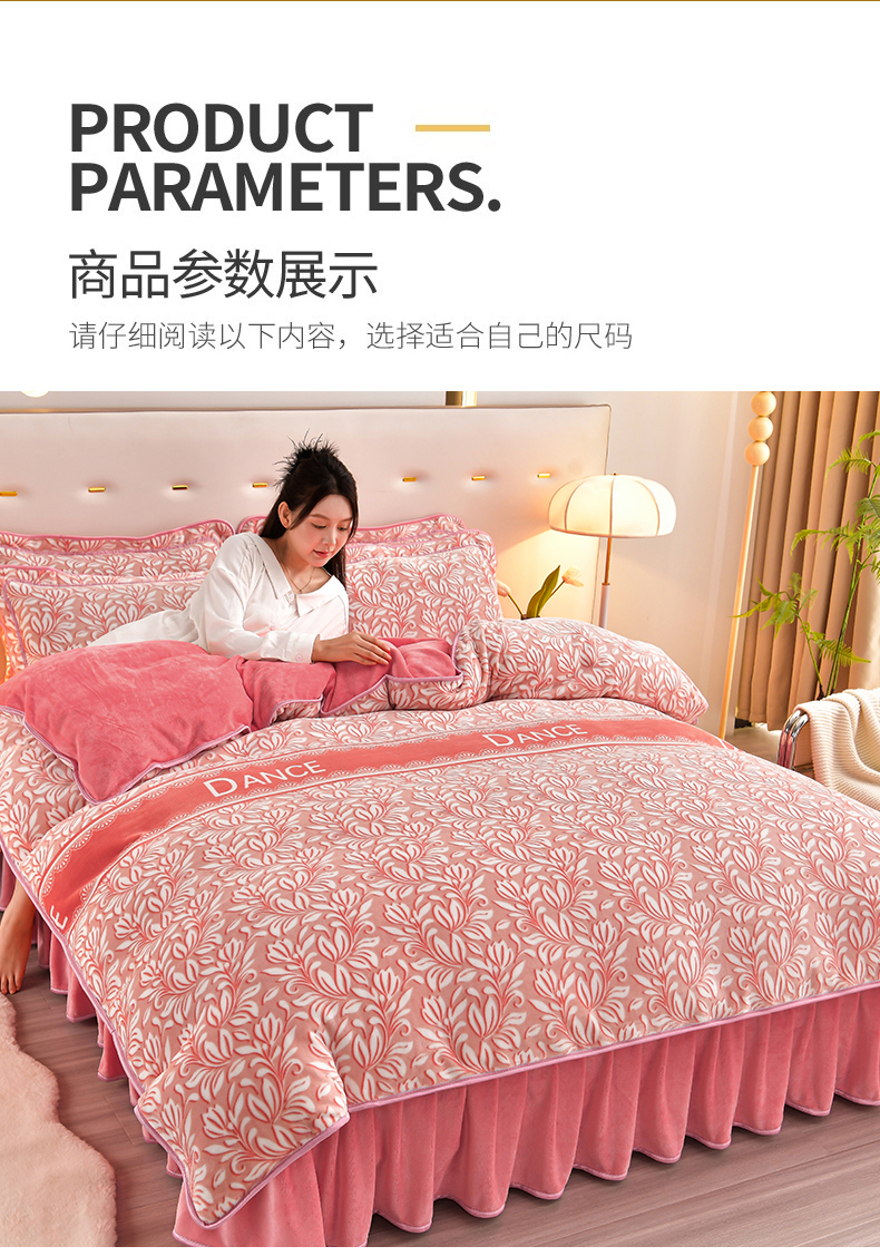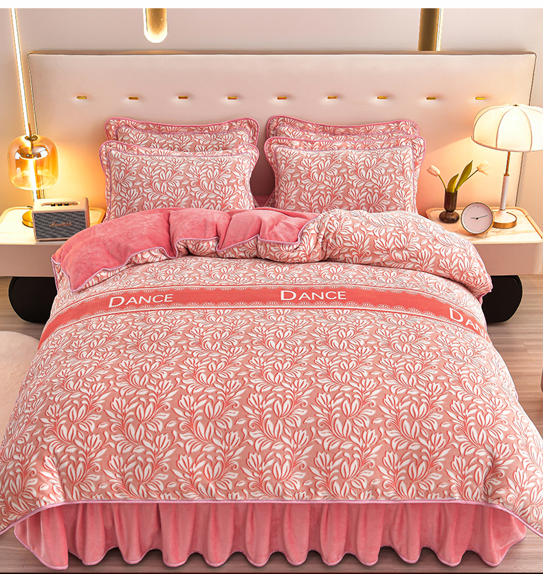 商品名称:馨梦缘 2025新款小包边款牛奶绒8.5斤高克重牛奶绒金雕绒床裙款四件套 红粉佳人