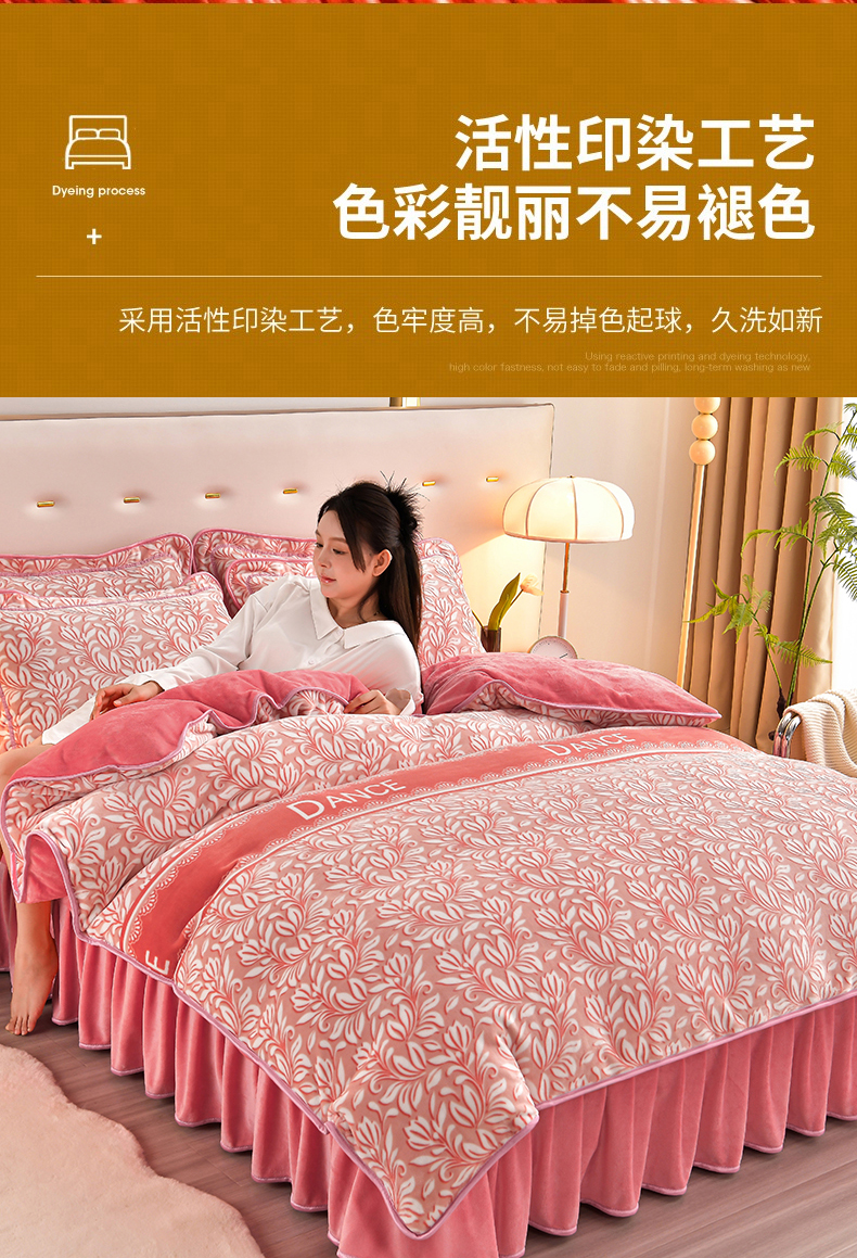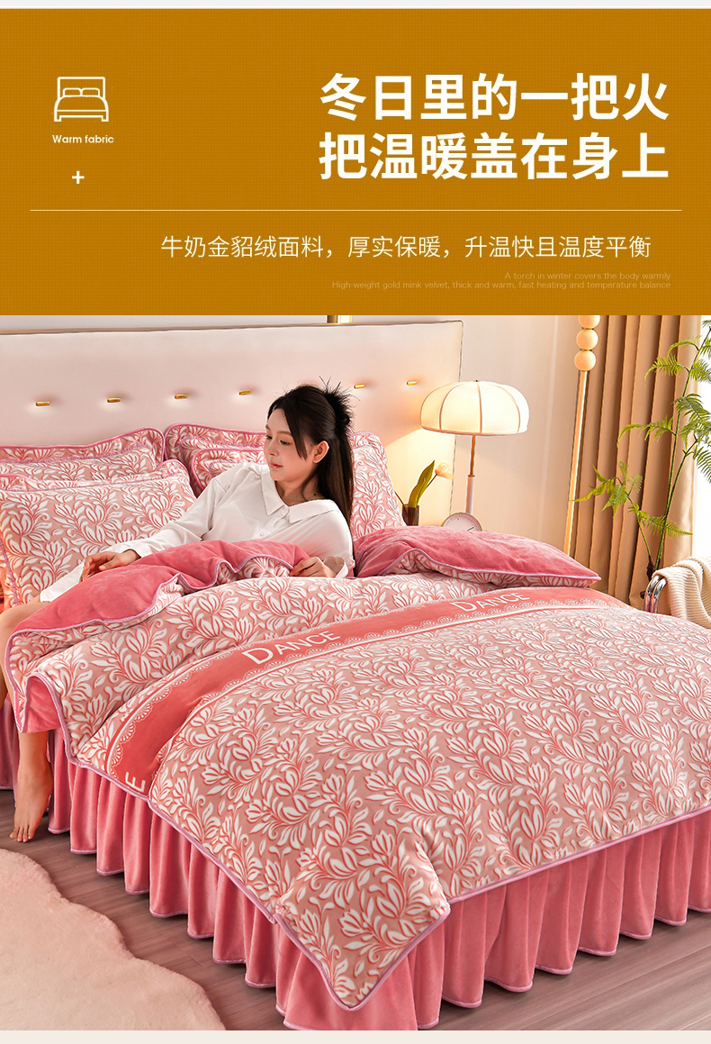 馨梦缘 2025直播爆款8.5斤牛奶绒四件套加厚保暖床裙金貂绒 静若繁花 粉,静若繁花 粉