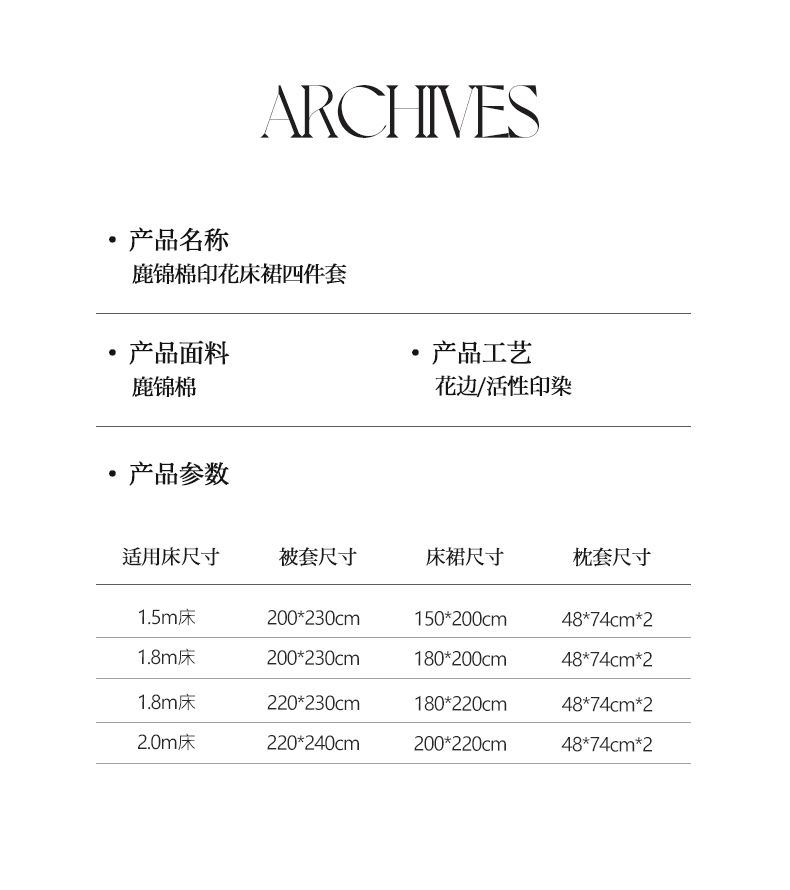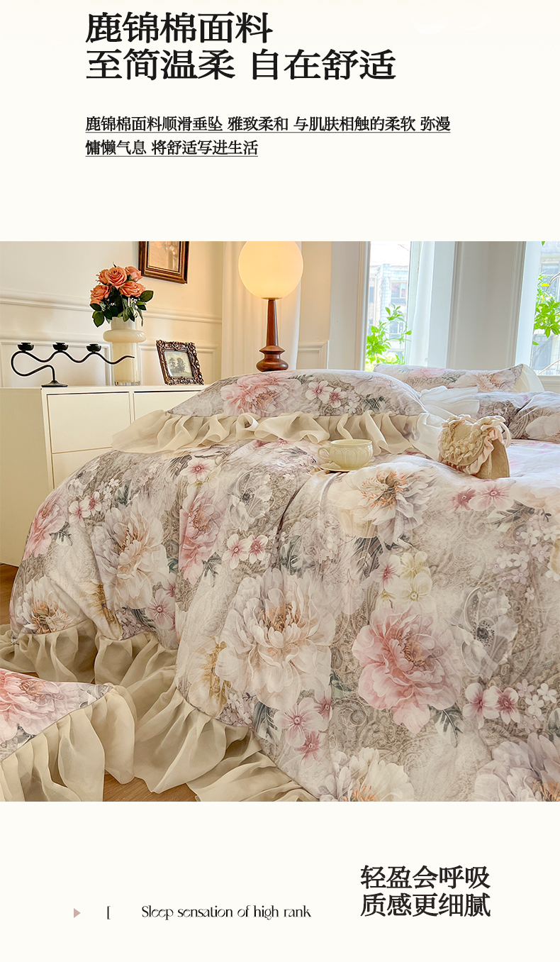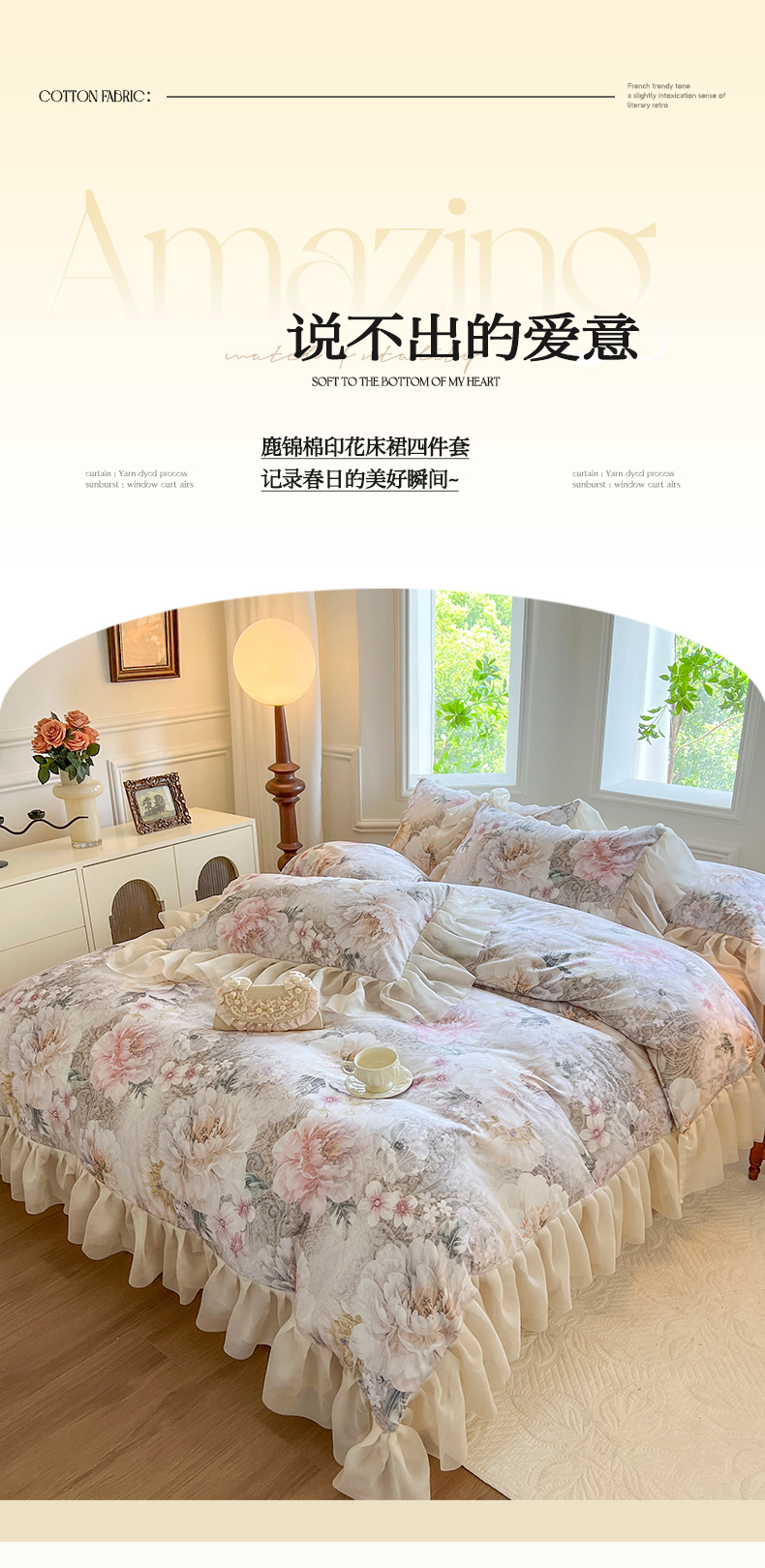 商品名称:网红馆(ck家纺)2025新款鹿锦棉印花床裙四件套 香榭丽