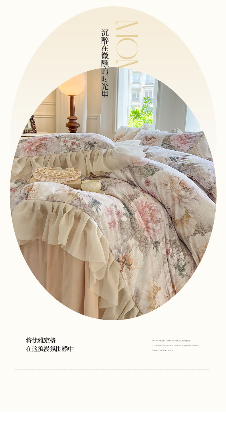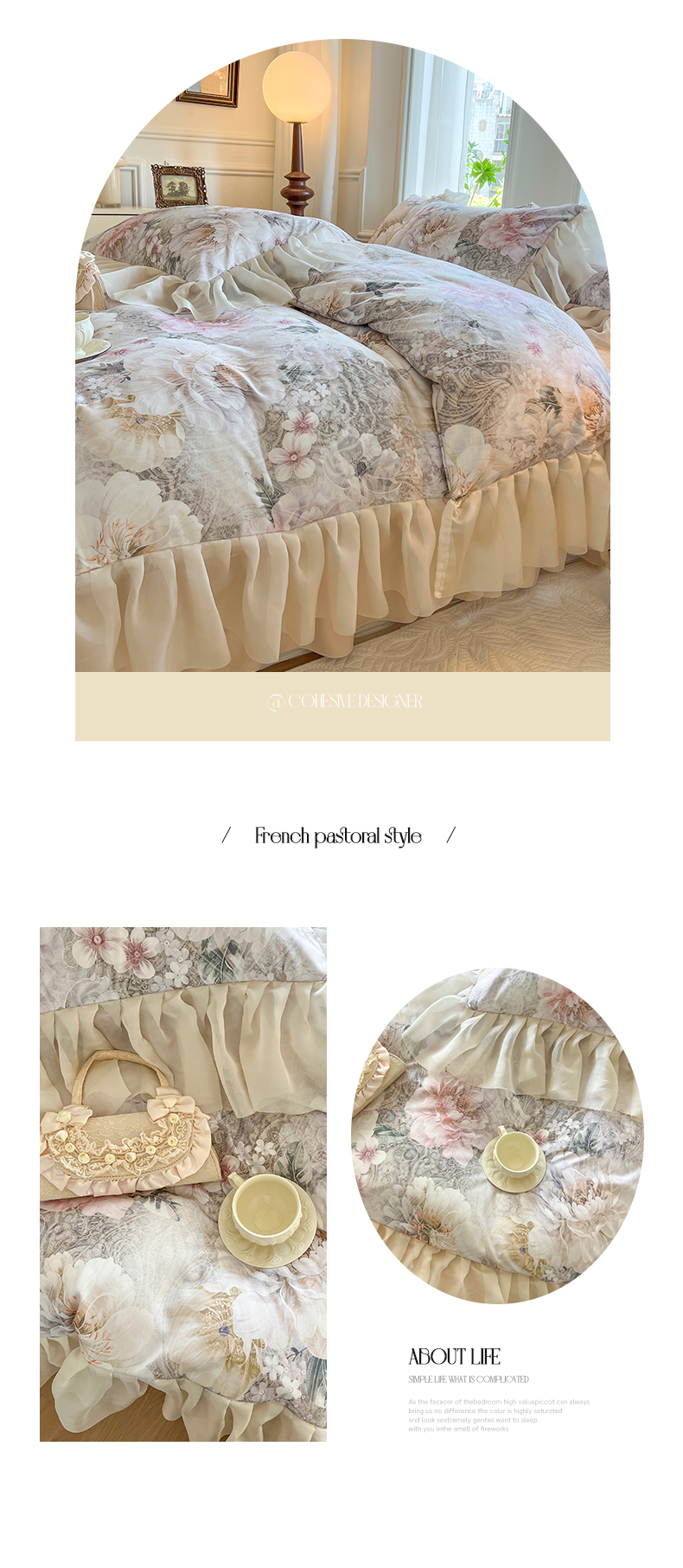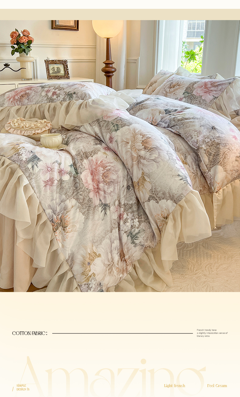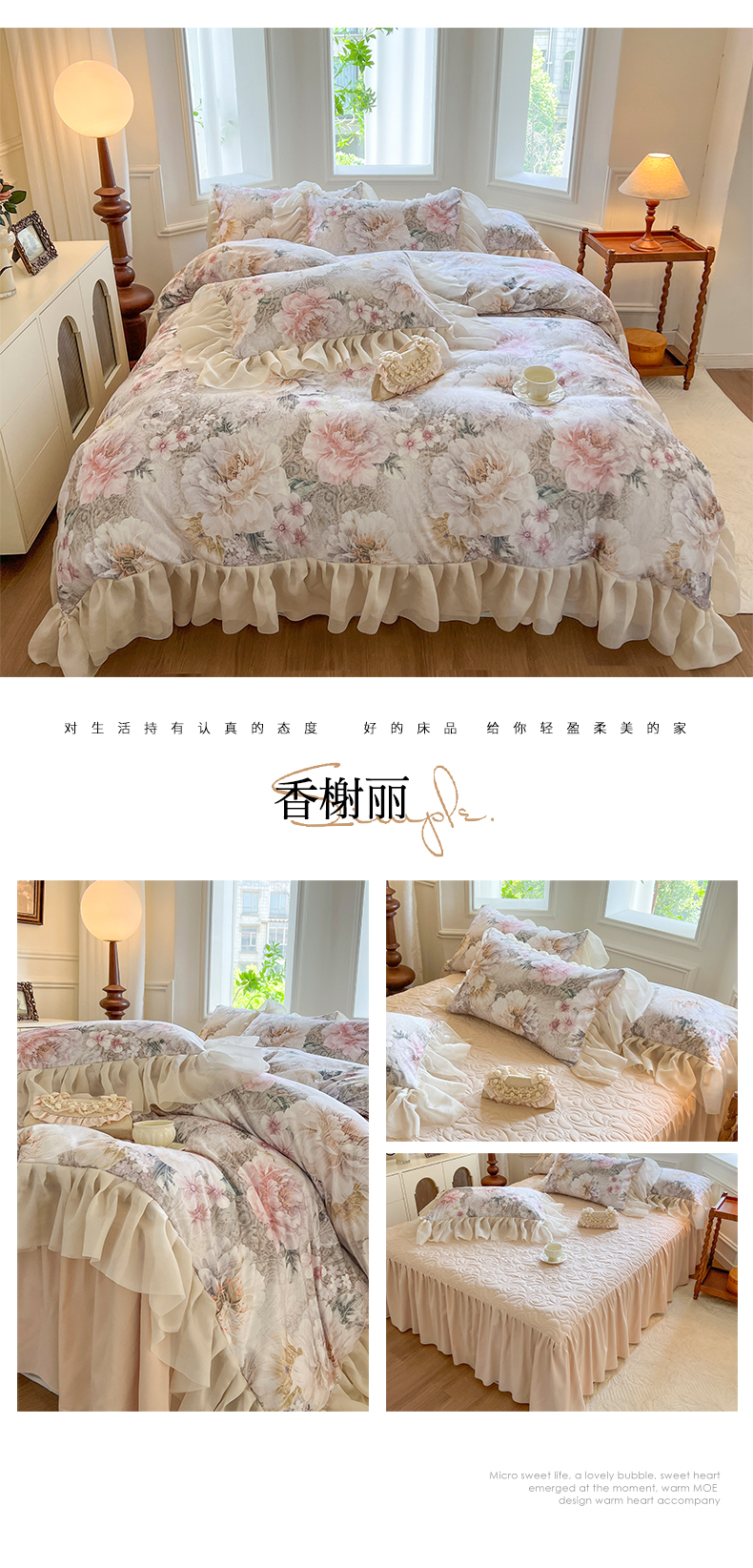 (总)网红馆(ck家纺) 2025新款全棉磨毛印花床裙款复古法式优雅四件套,花舞漫天-粉,玫瑰趣事-粉,玫瑰趣事-灰,梦语-桔
