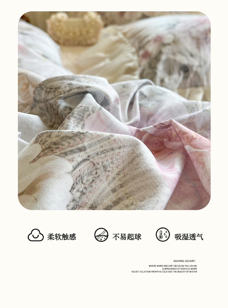 (总)网红馆(ck家纺) 2025新款牛奶绒雕花花边四件套--国色天香,国色天香 豆沙,国色天香 卡其,国色天香 兰色
