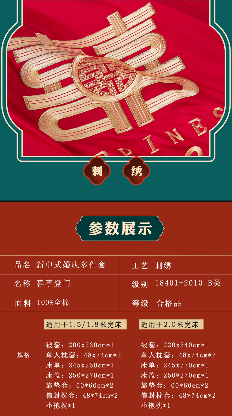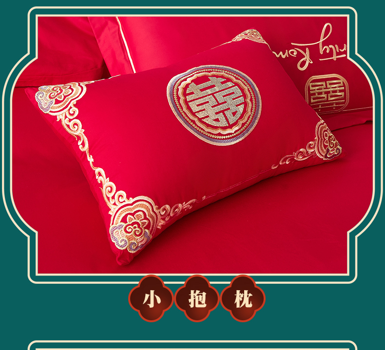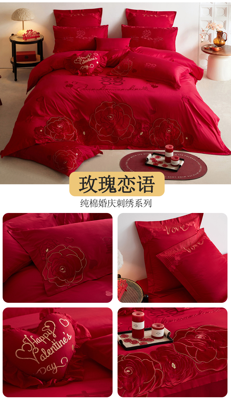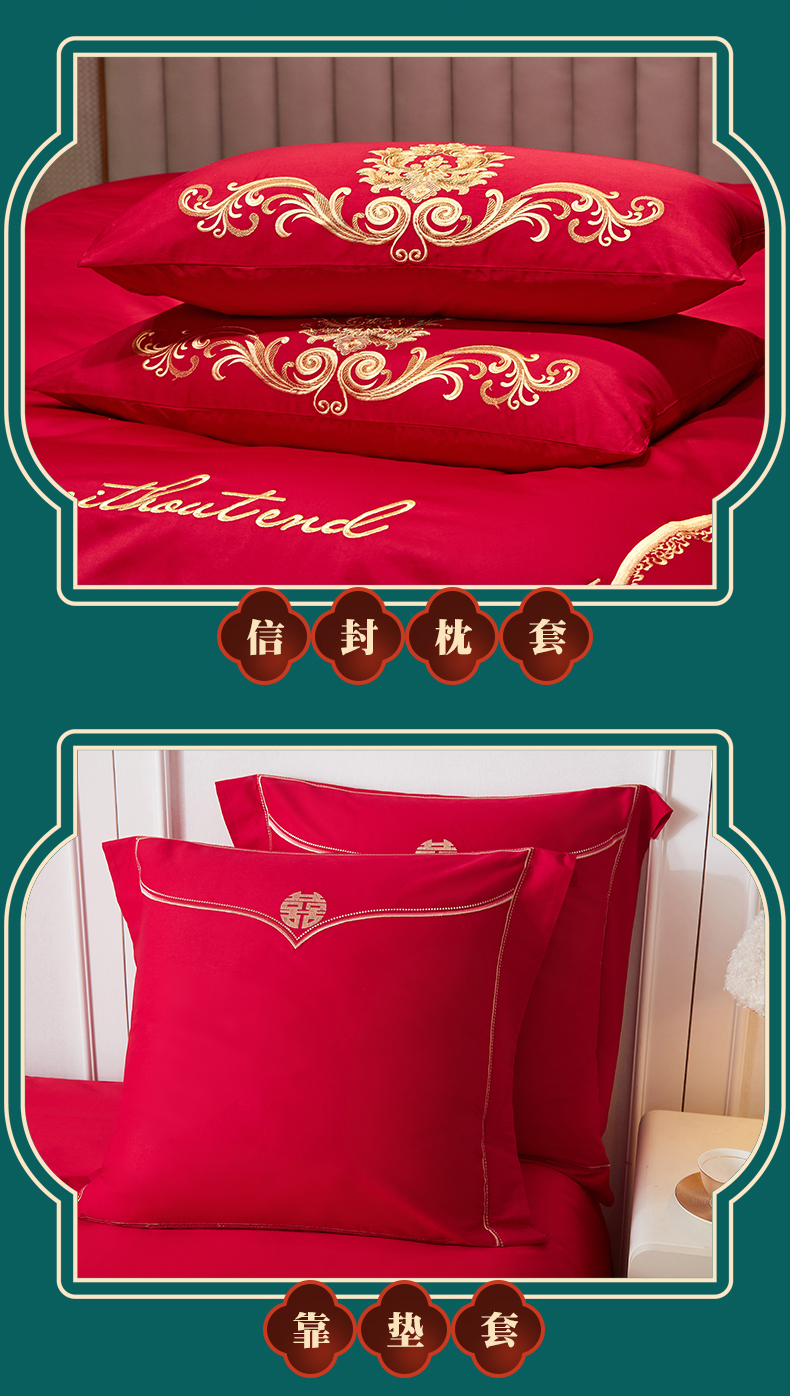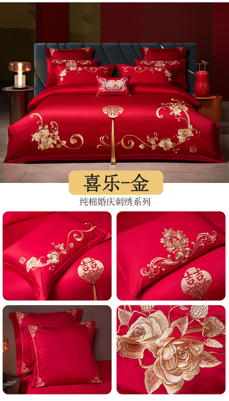 当前位置: 91家纺网 > 商品网购 > 床品套件 > 四件套 > 婚庆四件套 > 宏羽纺家纺 2024新款13372纯棉小红书跑量款婚庆套件系列 喜事登门