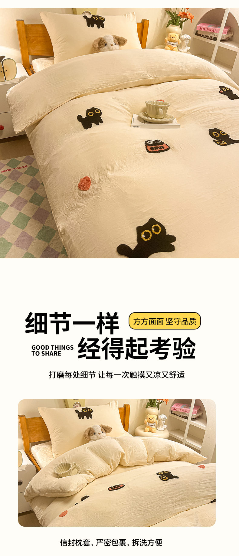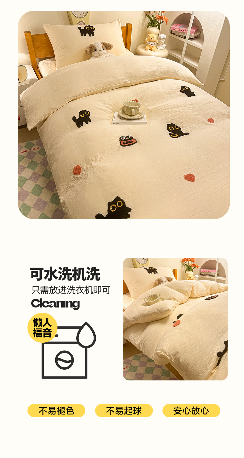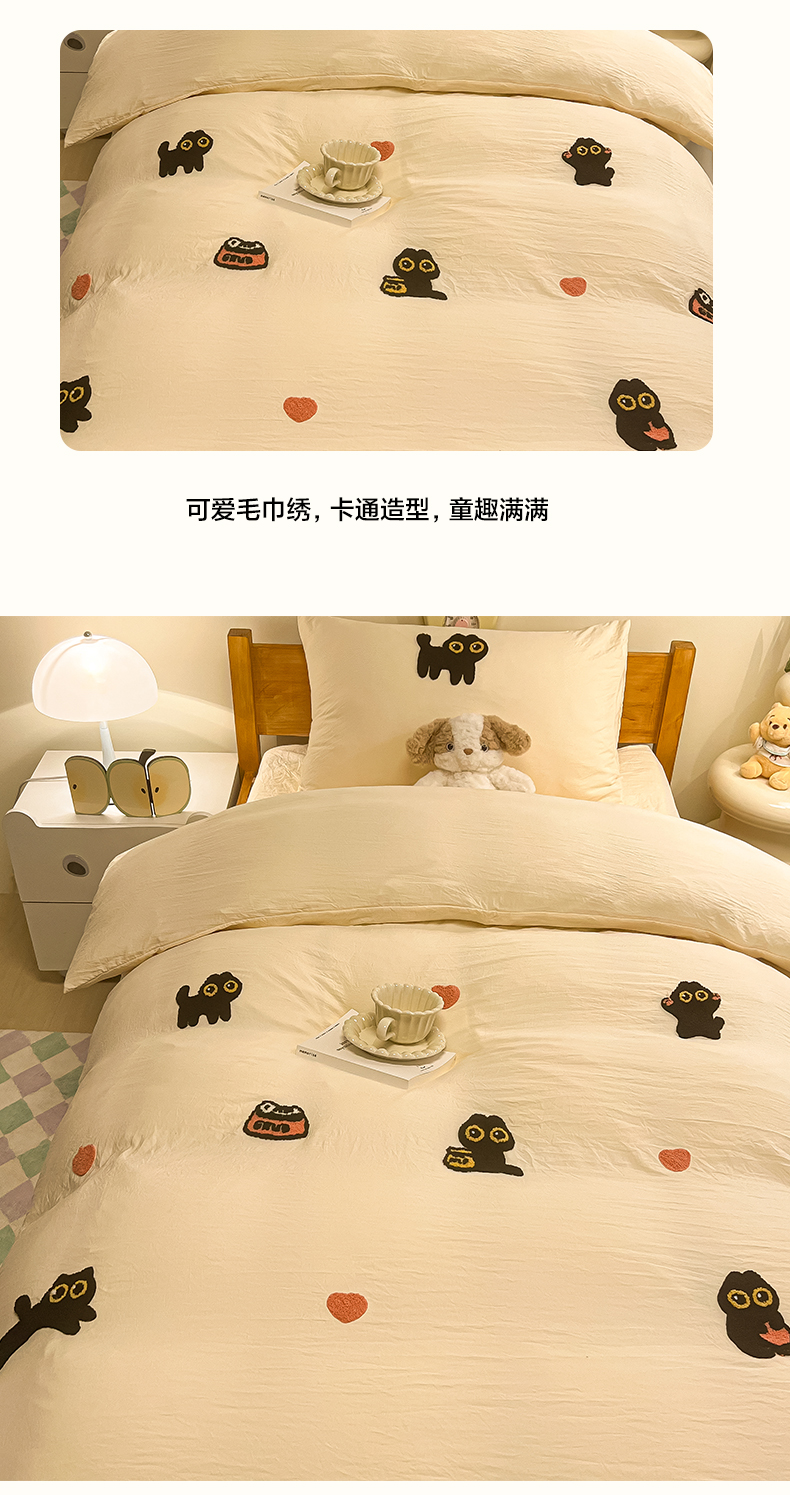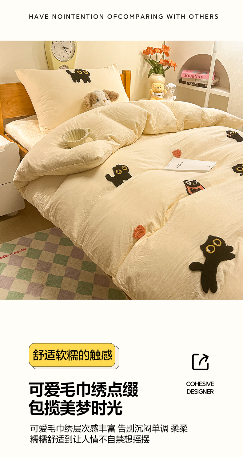 • 91家纺网 家纺一手货源 找家纺 韩巢家纺 2024新款学生宿舍寝室上下铺超柔水洗棉毛巾绣单件被套-幸运猫 幸运猫奶黄