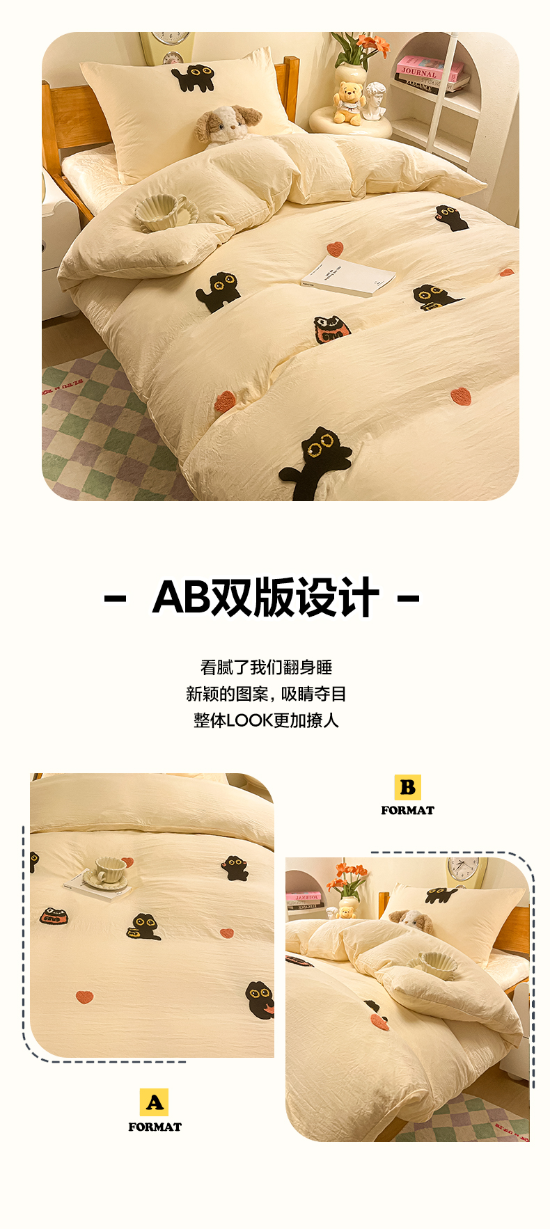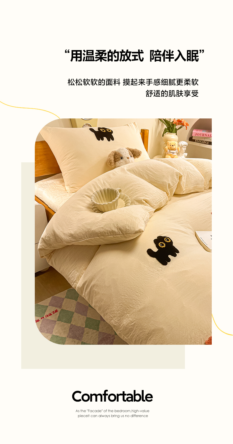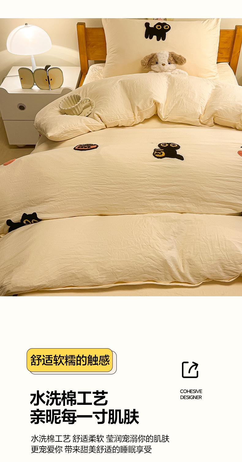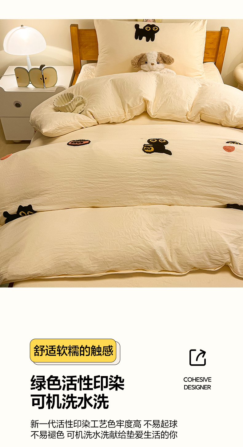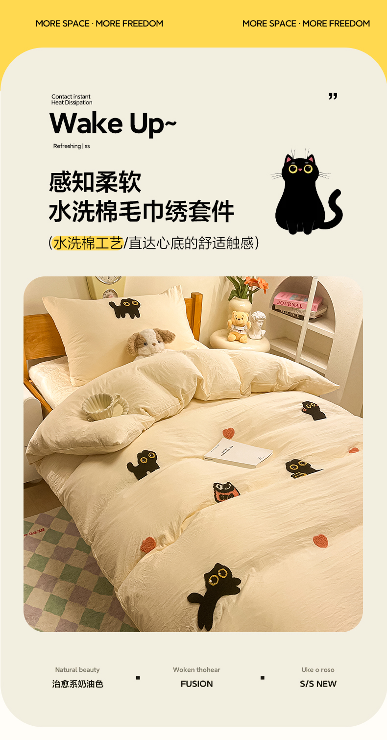 • 91家纺网 家纺一手货源 找家纺 韩巢家纺 2024新款学生宿舍寝室上下铺超柔水洗棉毛巾绣单件被套-幸运猫 幸运猫奶黄
