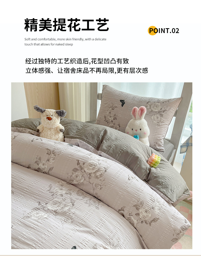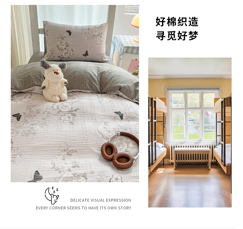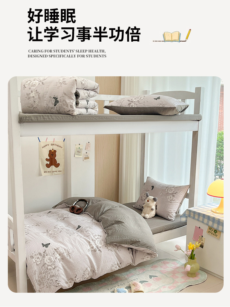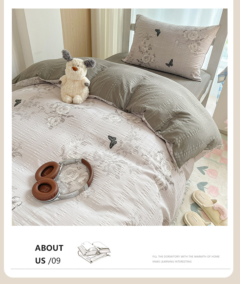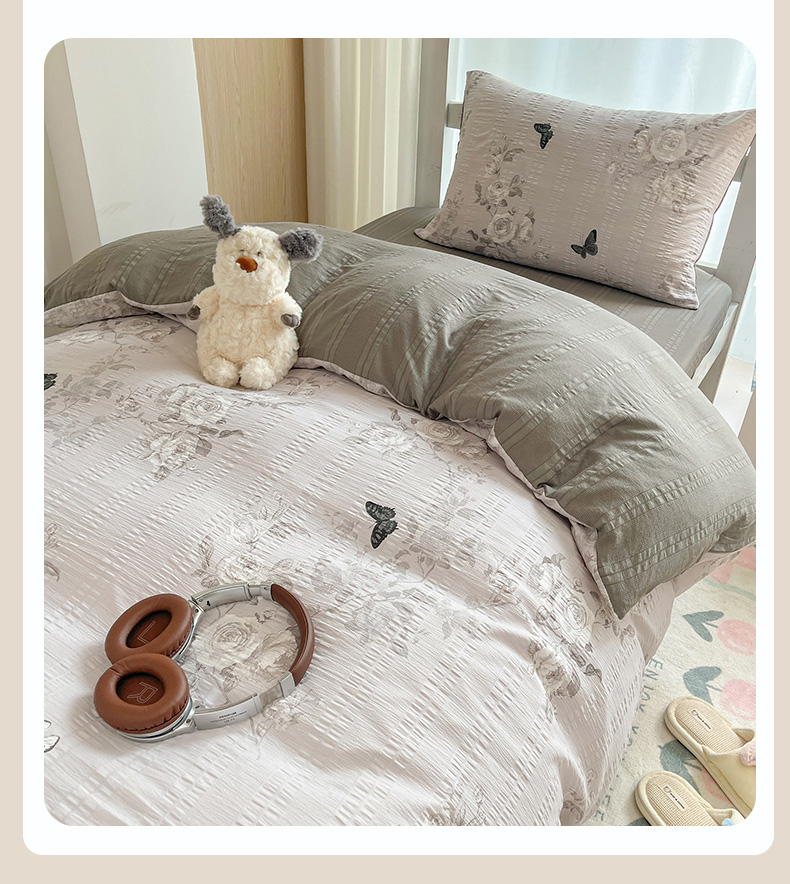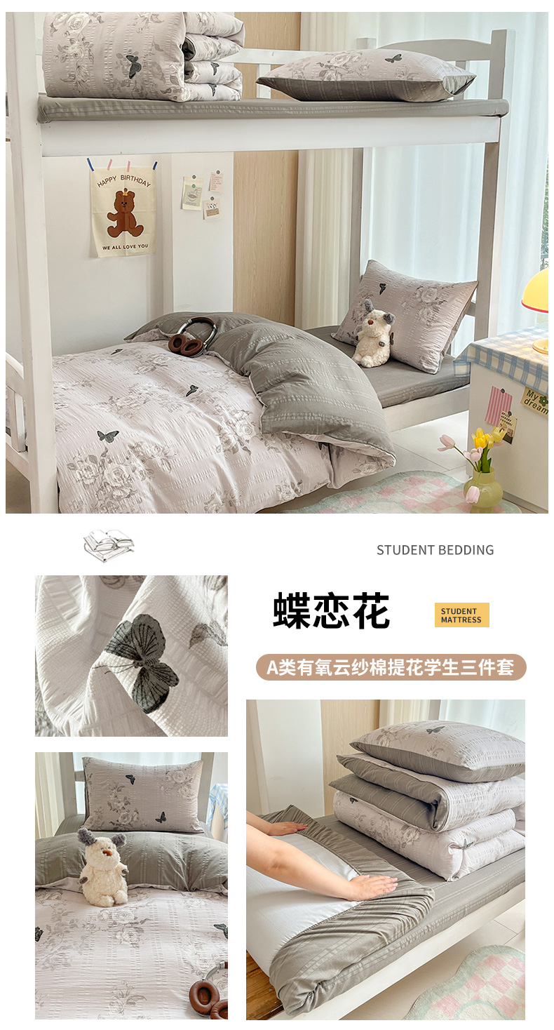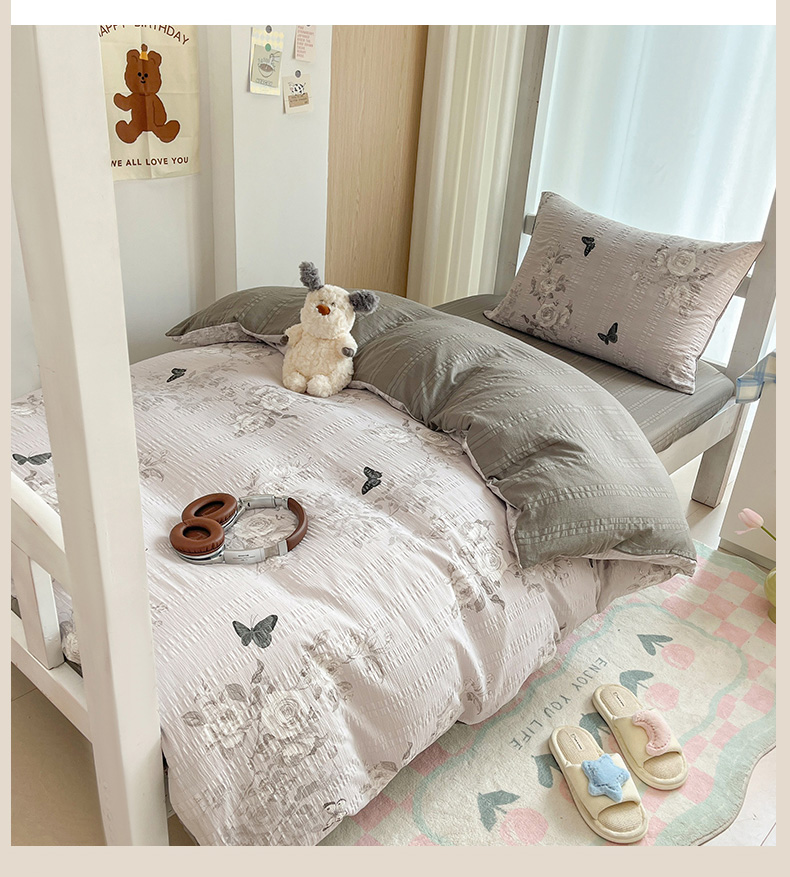 当前位置: 91家纺网 > 商品网购 > 床品套件 > 四件套 > 其它四件套 > 安哆啦家纺 2024新款A类有氧泡泡纱云纱棉学生季宿舍床三四件套 蝶恋花