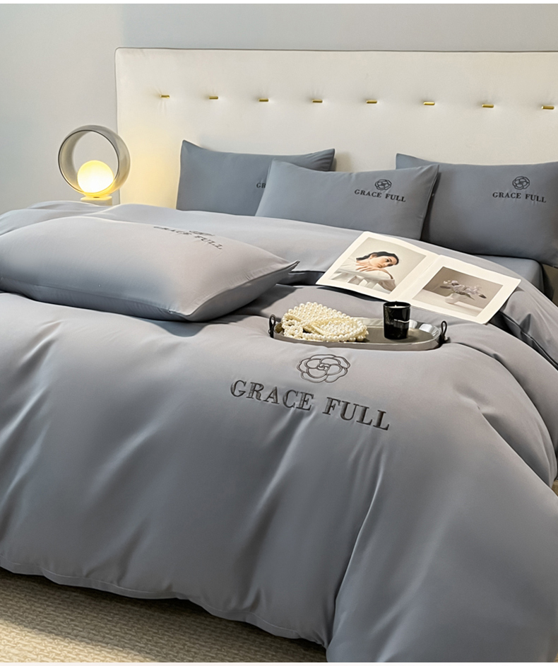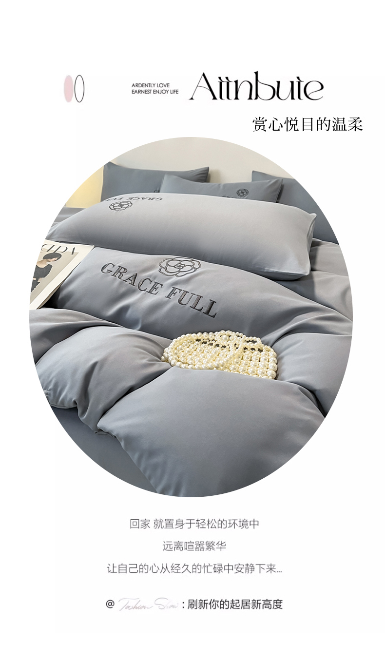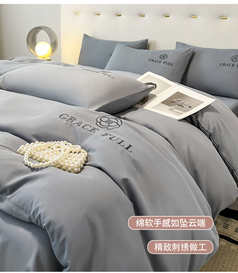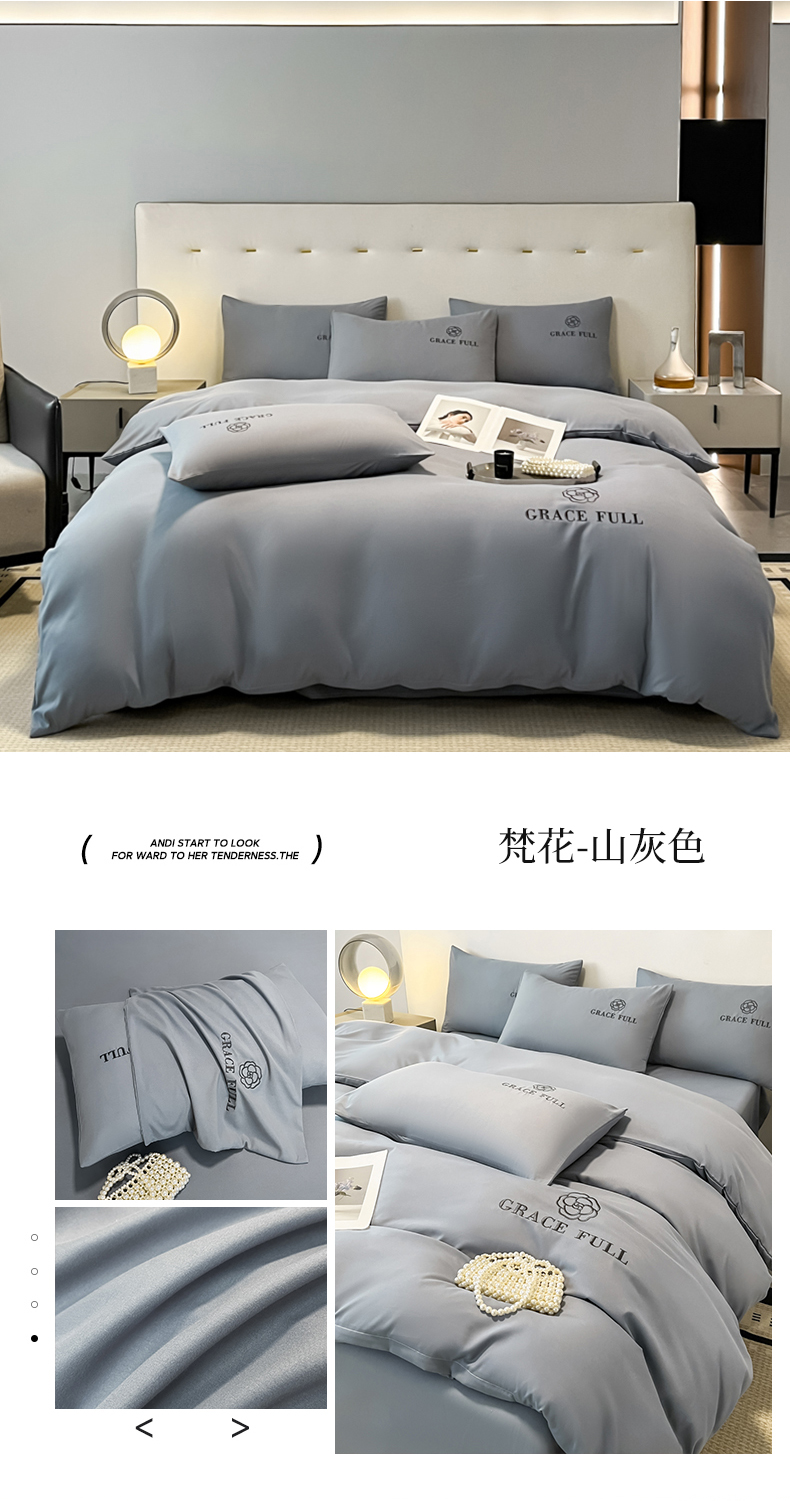 当前位置: 91家纺网 > 商品网购 > 床品套件 > 四件套 > 普通磨毛四件套 > 伊梵居 2025新款梵克系列刺绣水洗棉磨毛四件套 梵花-山灰色