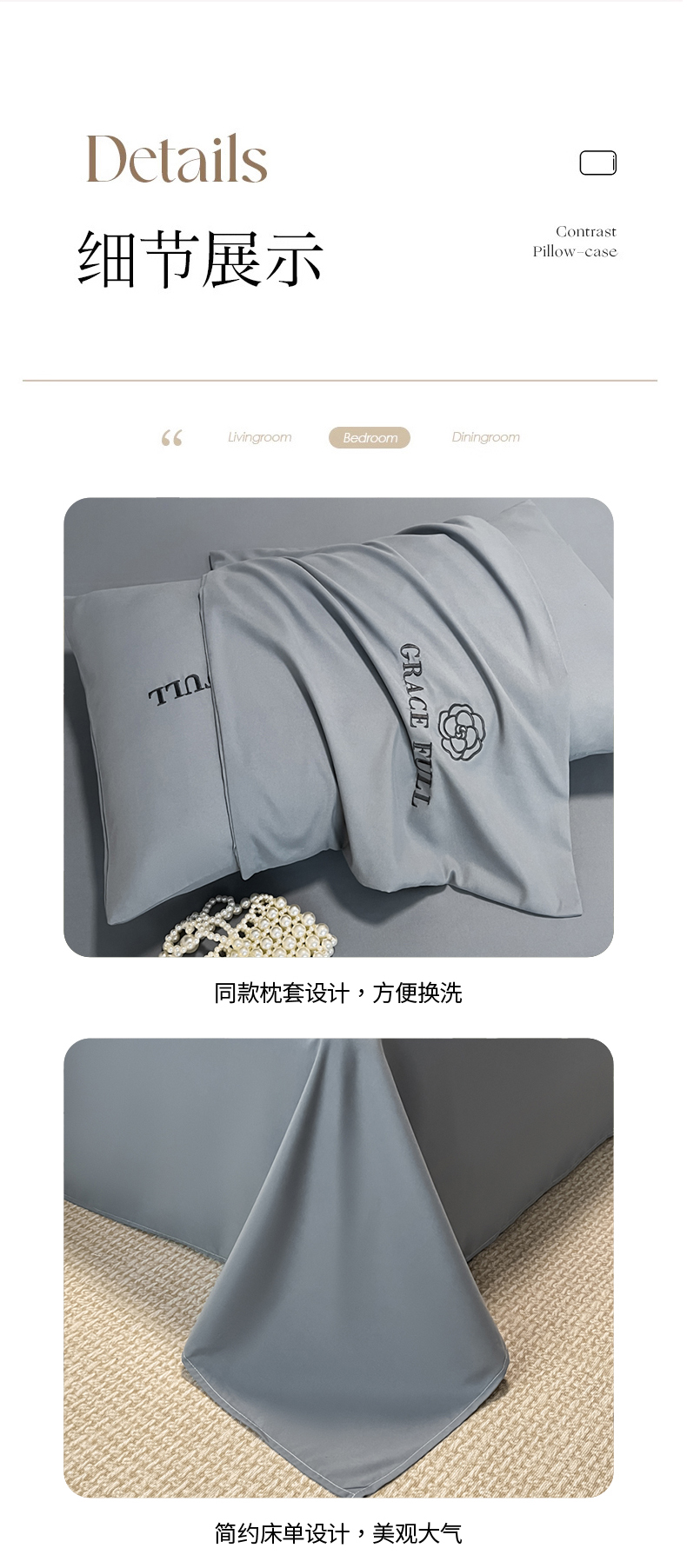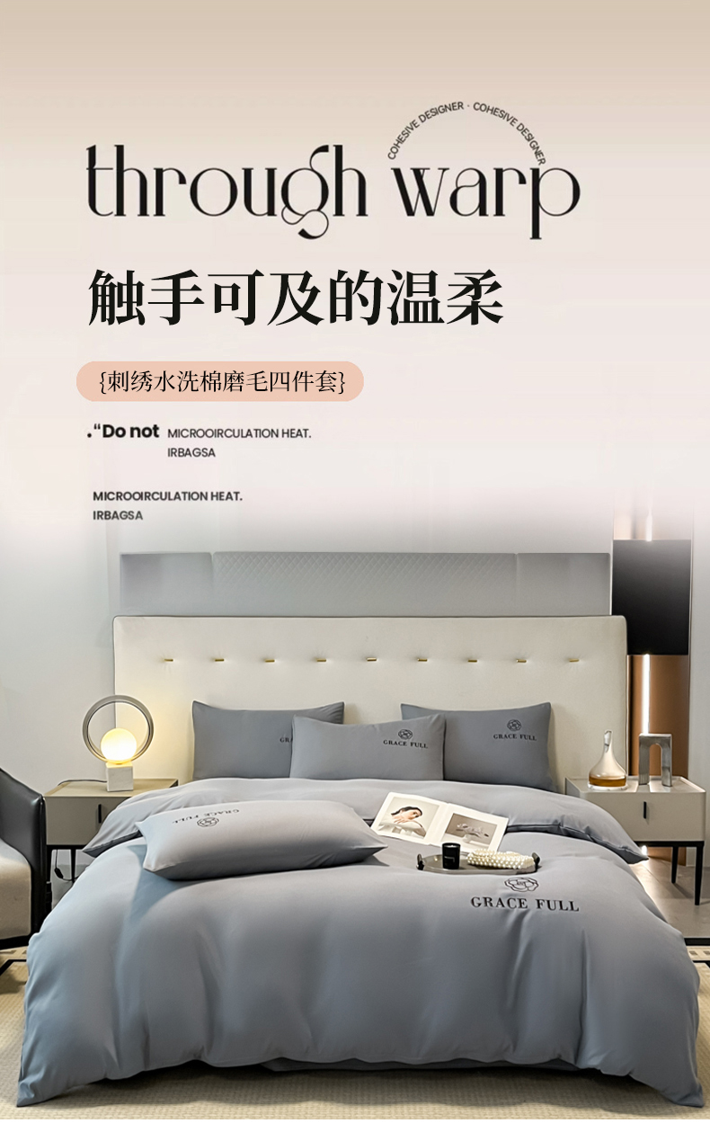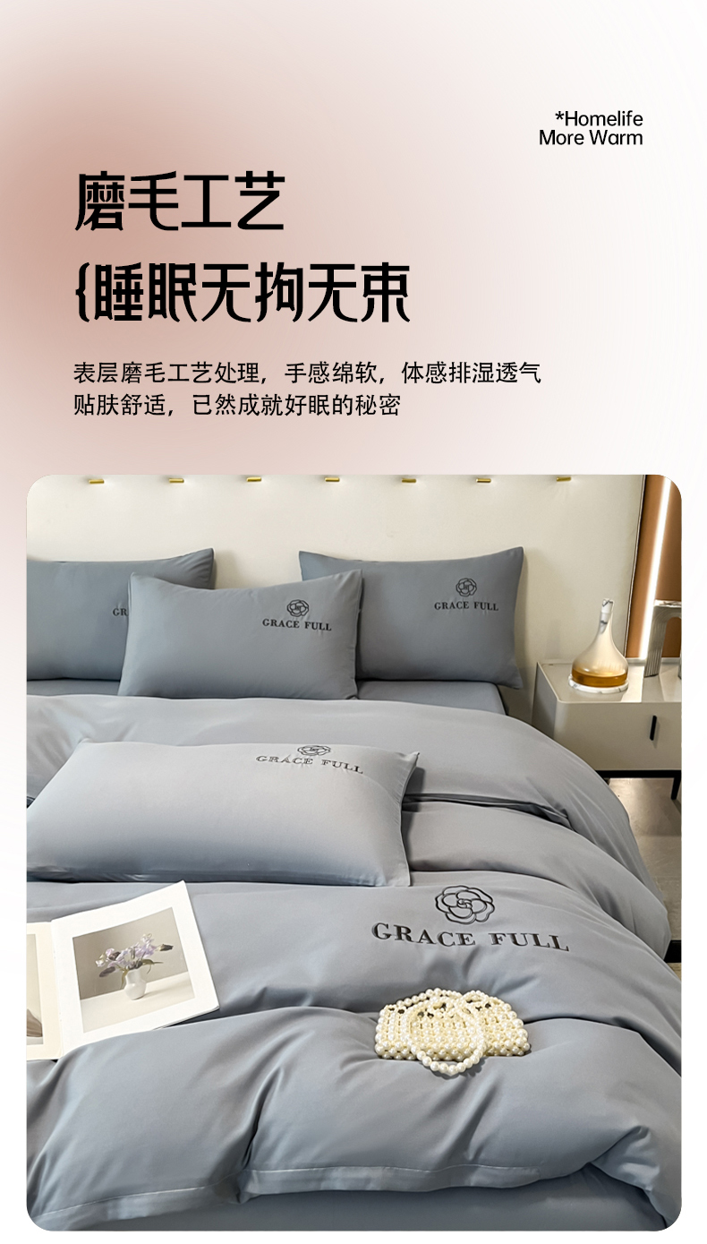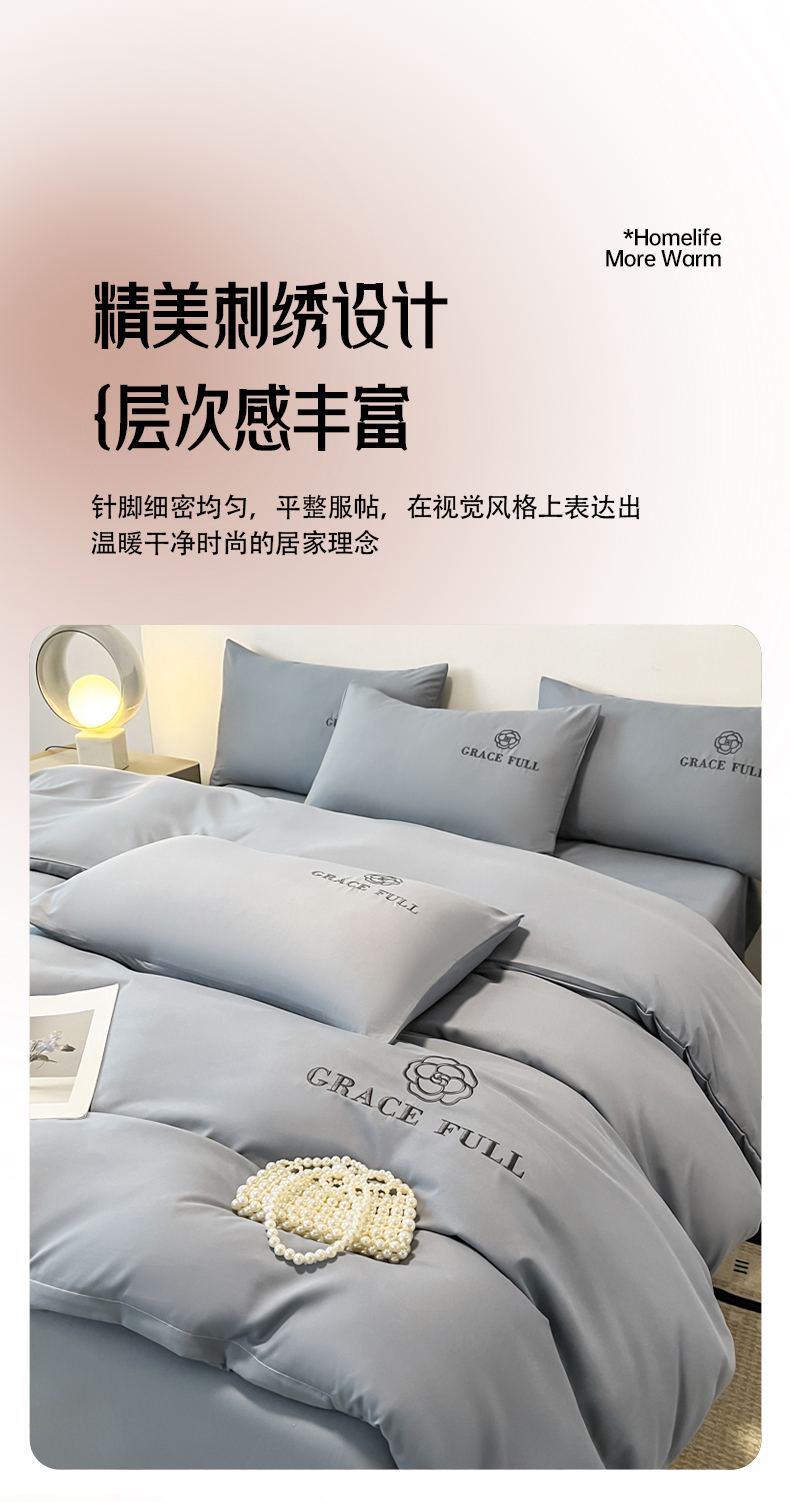 当前位置: 91家纺网 > 商品网购 > 床品套件 > 四件套 > 普通磨毛四件套 > 伊梵居 2025新款梵克系列刺绣水洗棉磨毛四件套 梵花-山灰色